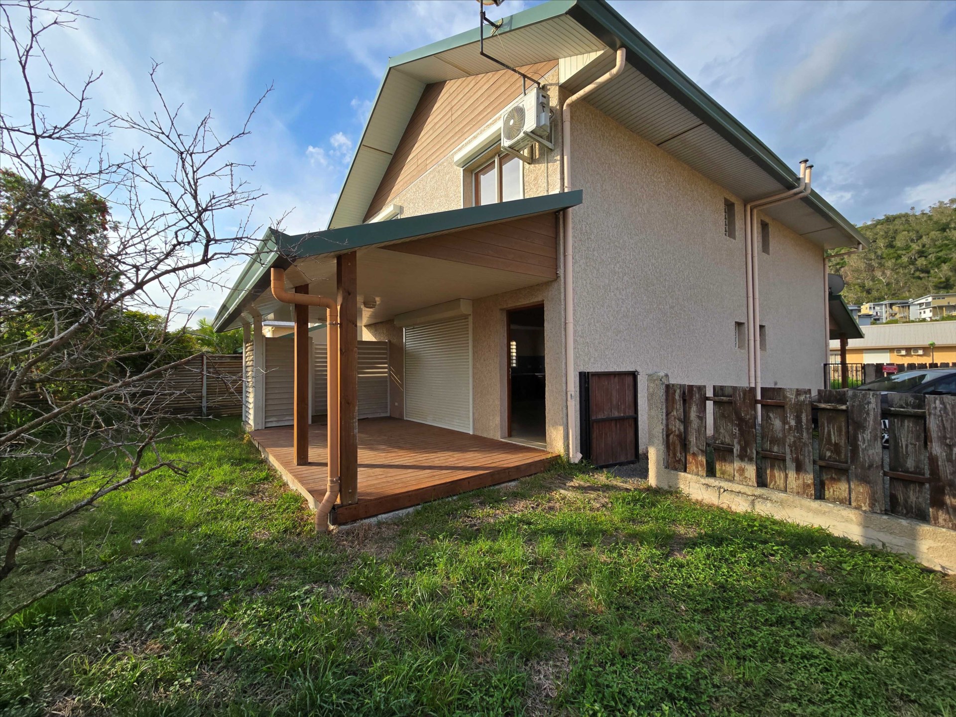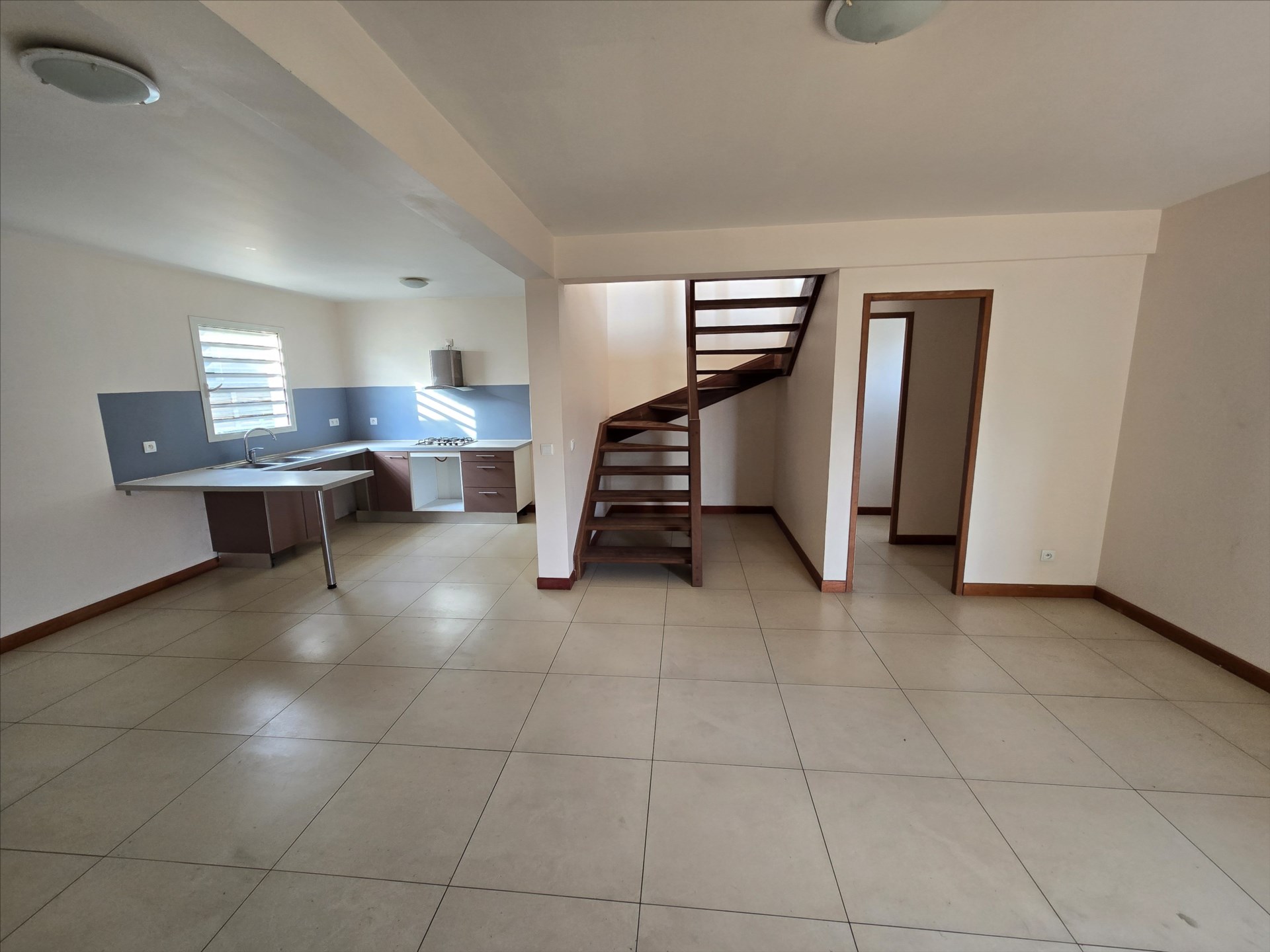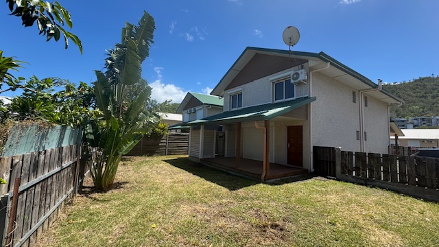 Villa Jumelée par l'arrière, F4 en duplex de 96m², terrasse couverte, buanderie. Rdc : grand séjour/cuisine, wc, Etage : 3 chambres climatisées, salle d'eau/wc. jardin, 2 parkings, rue en boucle, allée J. Naturel. Aucun travaux à prévoir. A saisir.