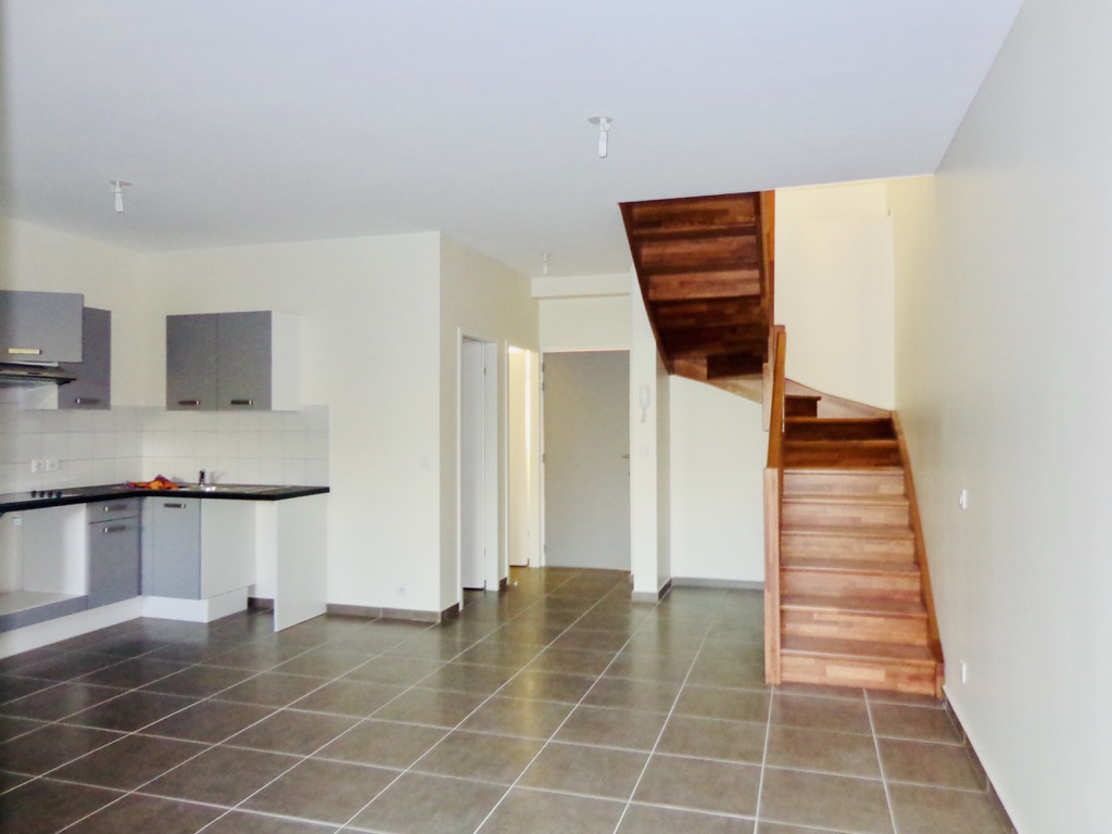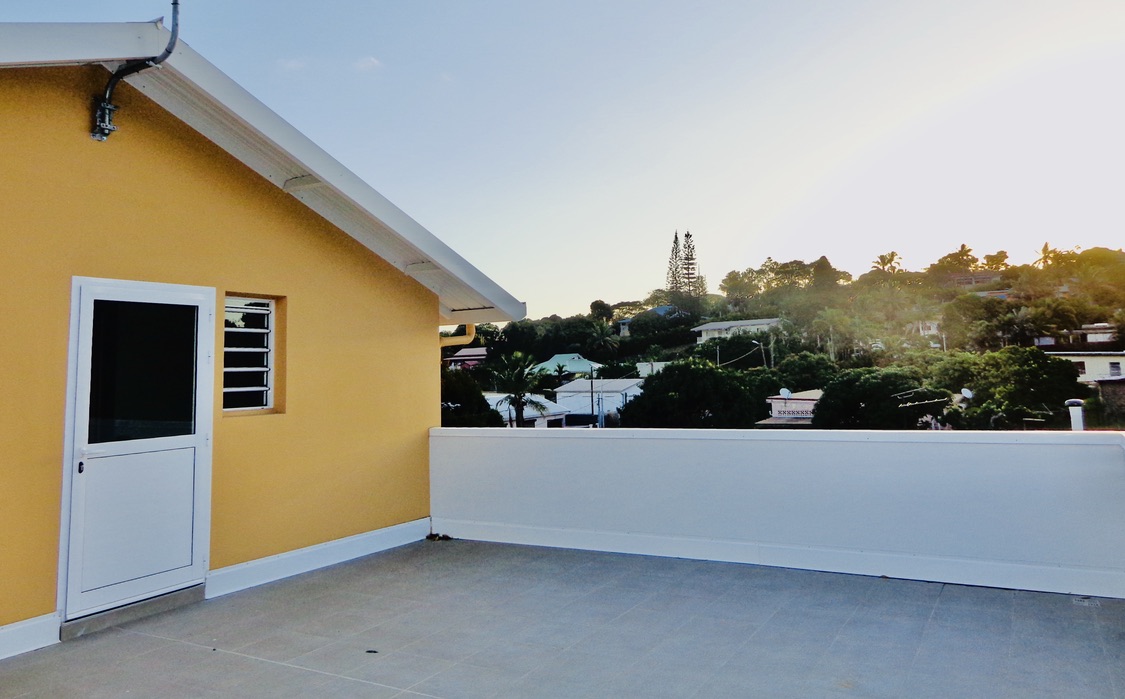 !! IDEAL INVESTISSEUR !! Appartement F3 en duplex, au centre de Yahoué, avec une vue sur les montagnes dans une petite résidence sécurisée comprenant au rez-de-chaussée : un séjour avec coin cuisine aménagée, une buanderie, un wc, terrasse de 30 m2. A l'étage : un dégagement, 2 chambres climatisées avec placard et volets roulants manuels, une salle d'eau, un wc. Deux emplacements de parking et un cellier complètent ce bien.