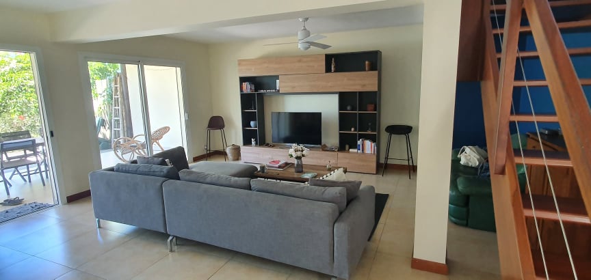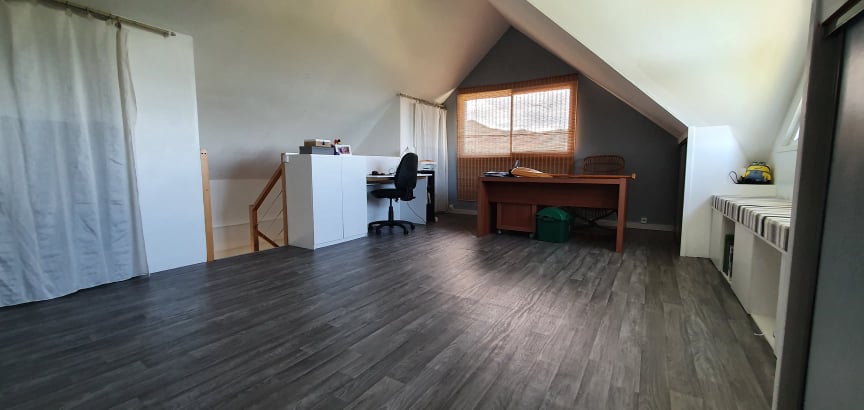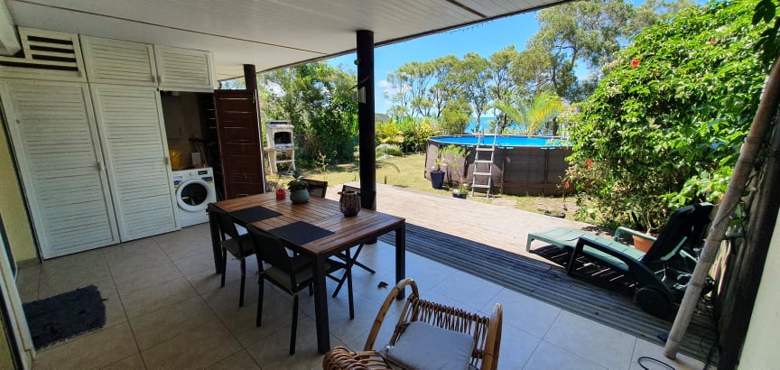 Au calme en situation dominante avec vue mer, villa jumelée en triplex de 118 m² habitable comprenant une cuisine équipée ouverte sur séjour, une SDE, une chambre, un WC. A l'étage, 2 chambres avec placards, un dégagement, un WC, une SDE, ainsi que les combles de 30 m² aménagées en chambre. Une terrasse couverte et un jardin clôturé et arboré avec piscine hors sol.