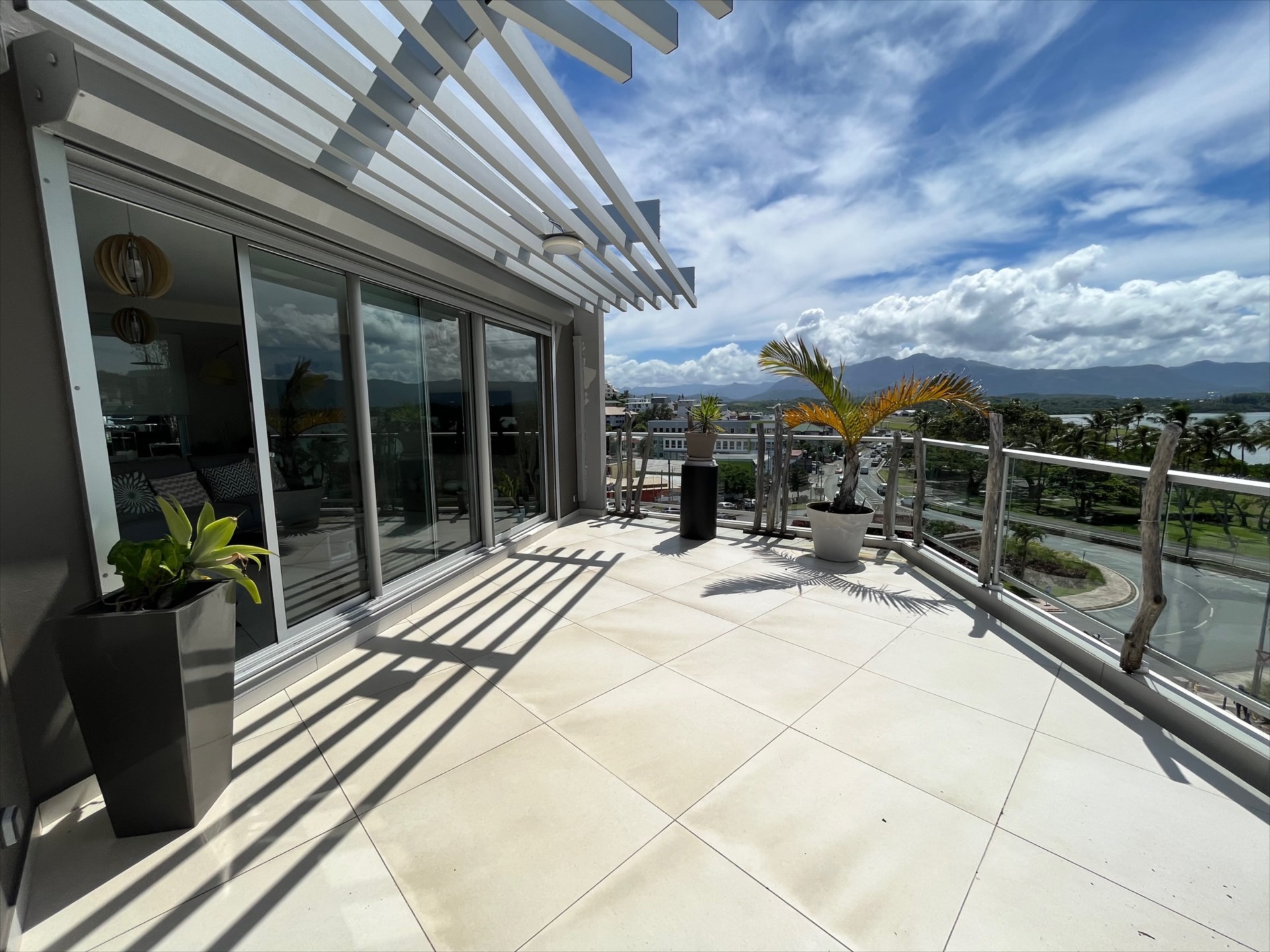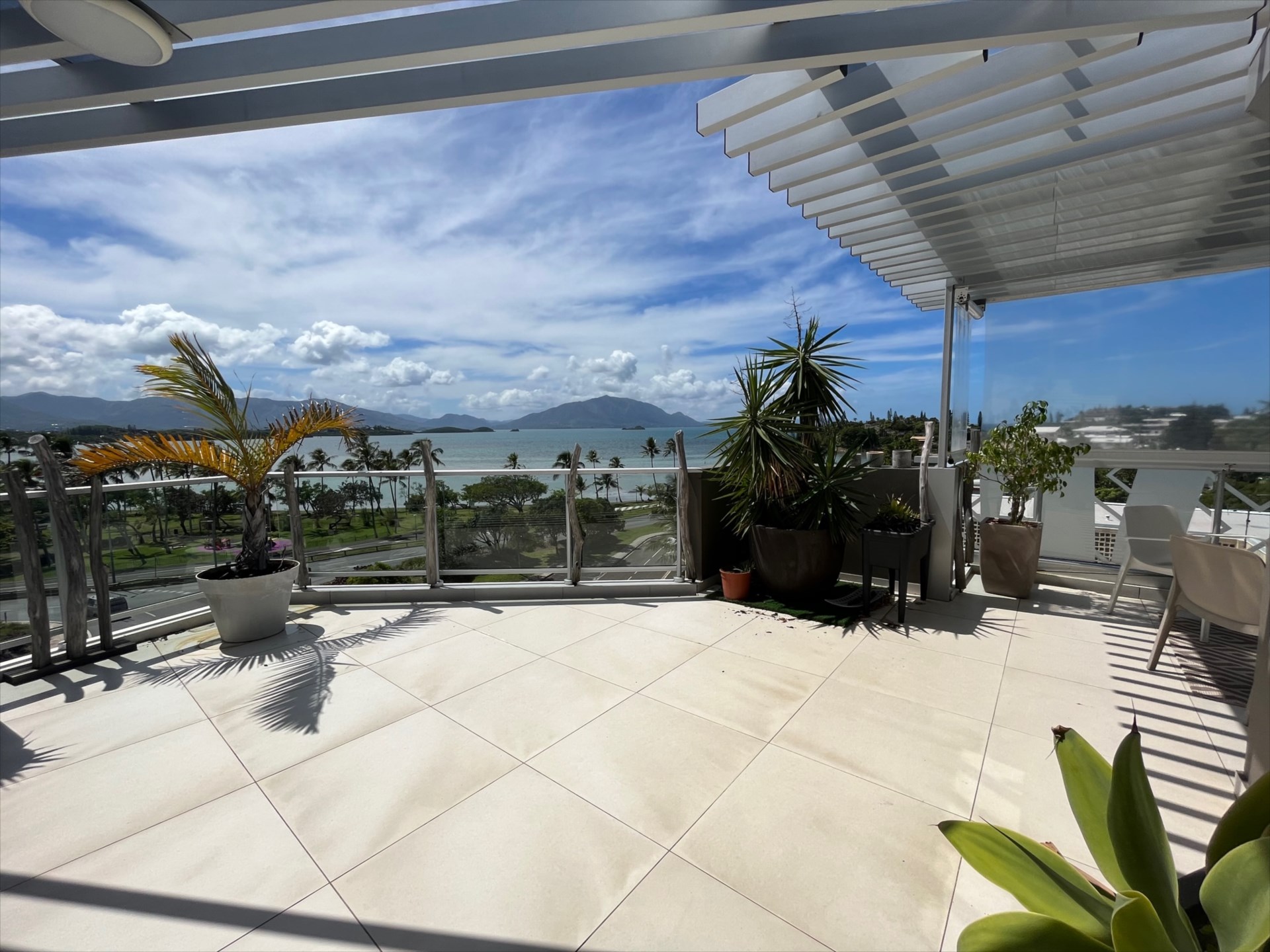 Au total, 130m2 de terrasse sur deux niveaux dont un disposant de gazon sur plot, vue sur mer imprenable et absence de vis à vis.