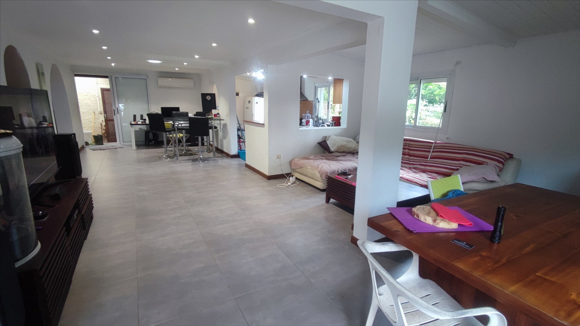 NOUVEAUTE !! LA TAMOA – Votre agence AG TRANSACTION vous propose à la vente cette villa de type F3 composée d'une entrée avec placard sur séjour double, une cuisine semi ouverte aménagée et équipée, un bureau. Un couloir dessert deux chambres climatisées avec placards, une salle d'eau avec baignoire + douche et un WC.