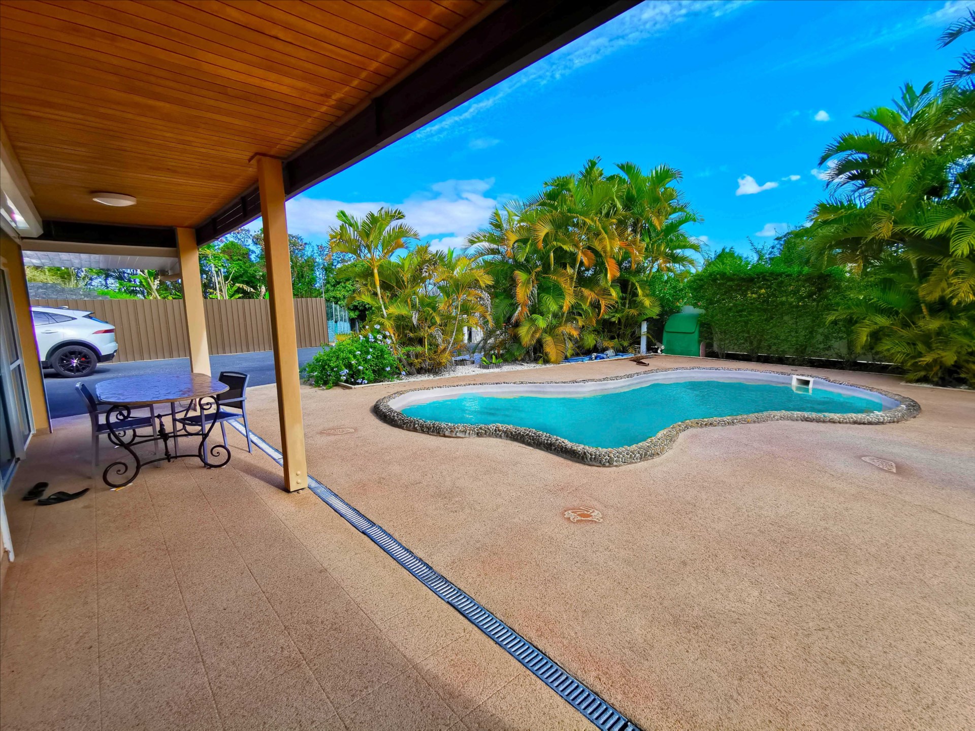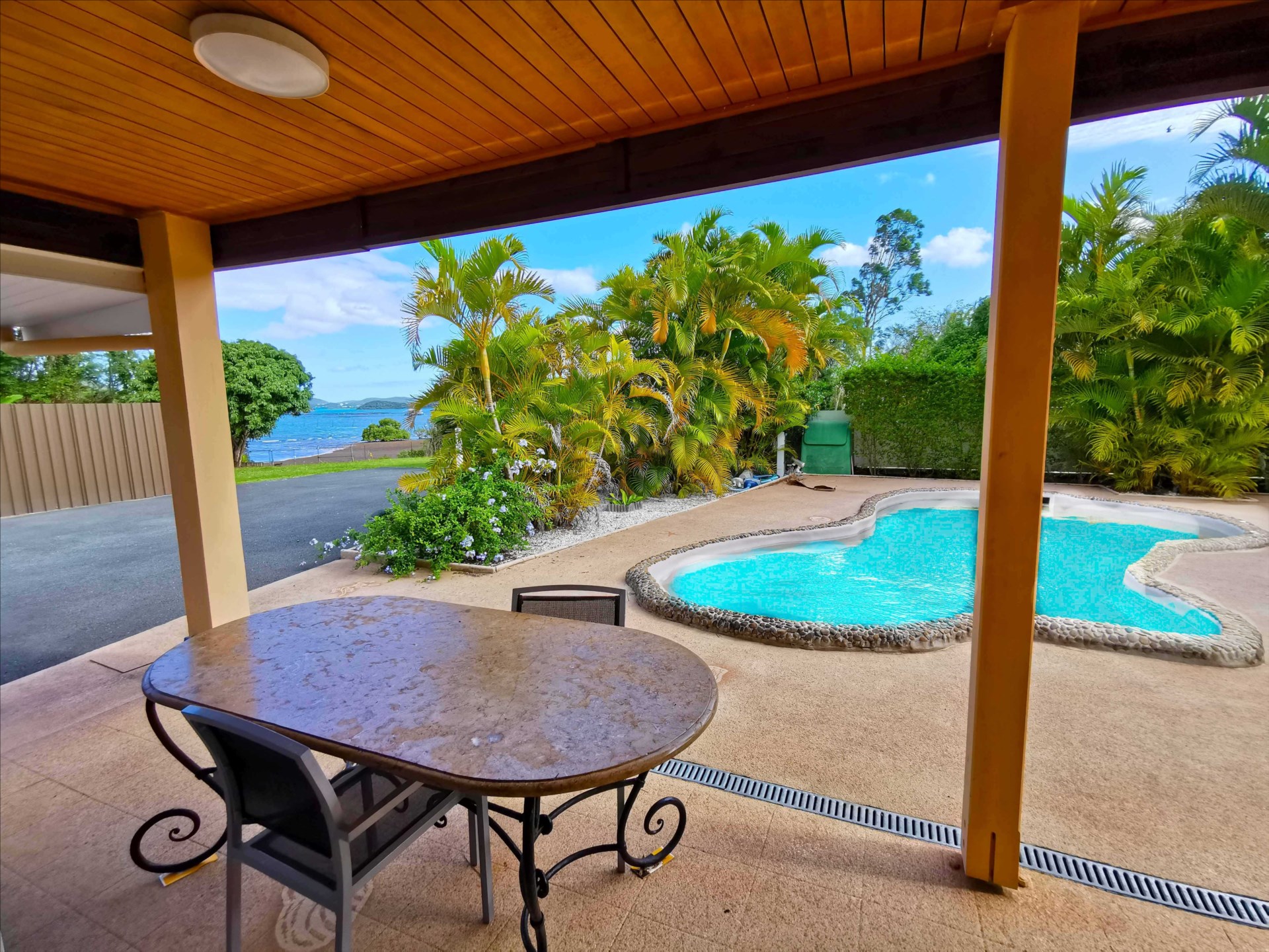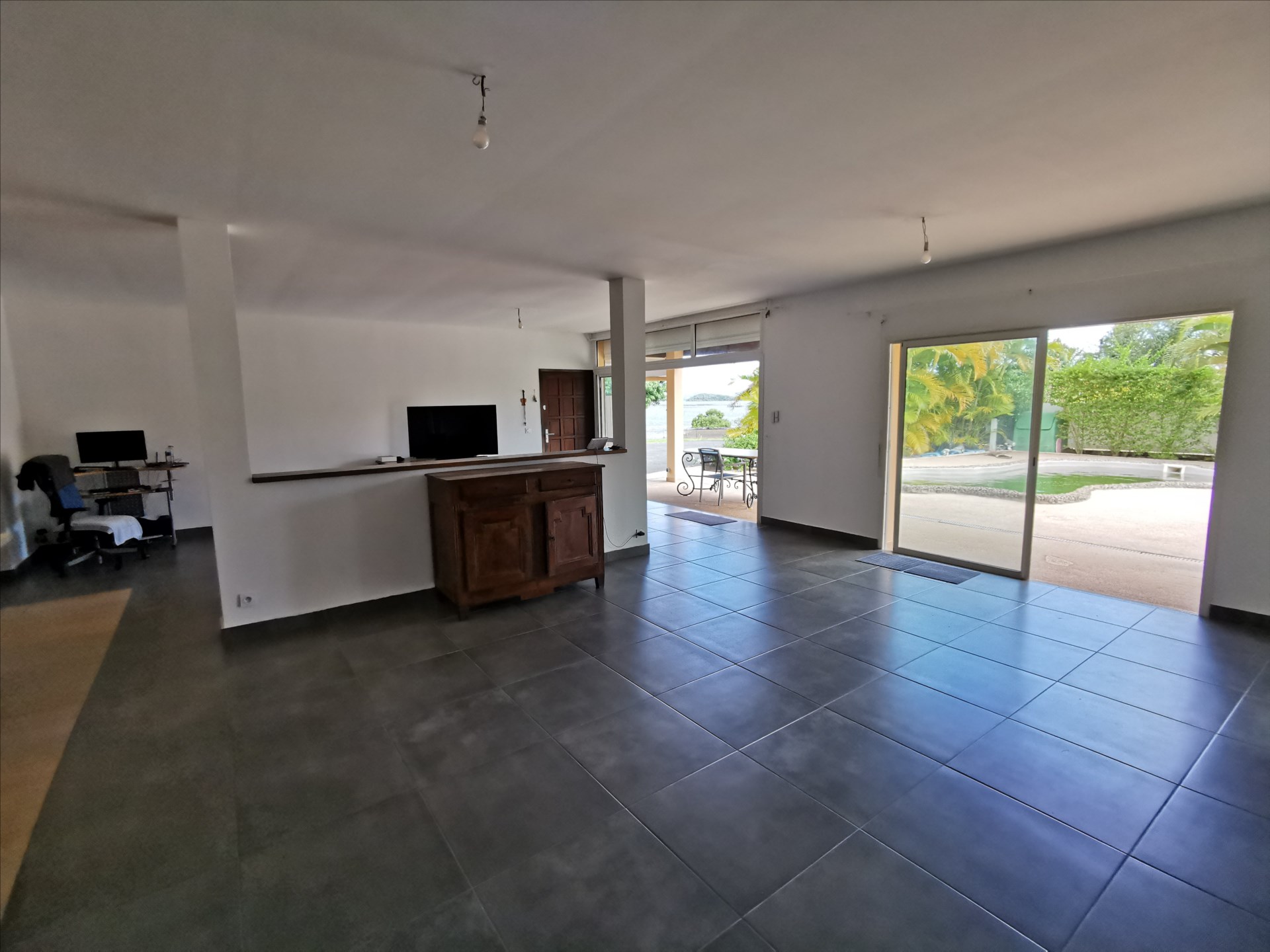 Un petit paradis en bord de mer, villa F5 172m² + terrasse de 100m² avec piscine, 4 chambres dont suite parentale. Cadre unique avec vue sur le lagon, en impasse. Zone maritime pieds dans l'eau (12 000 F/an), carport, atelier, sur 10,77a + zm