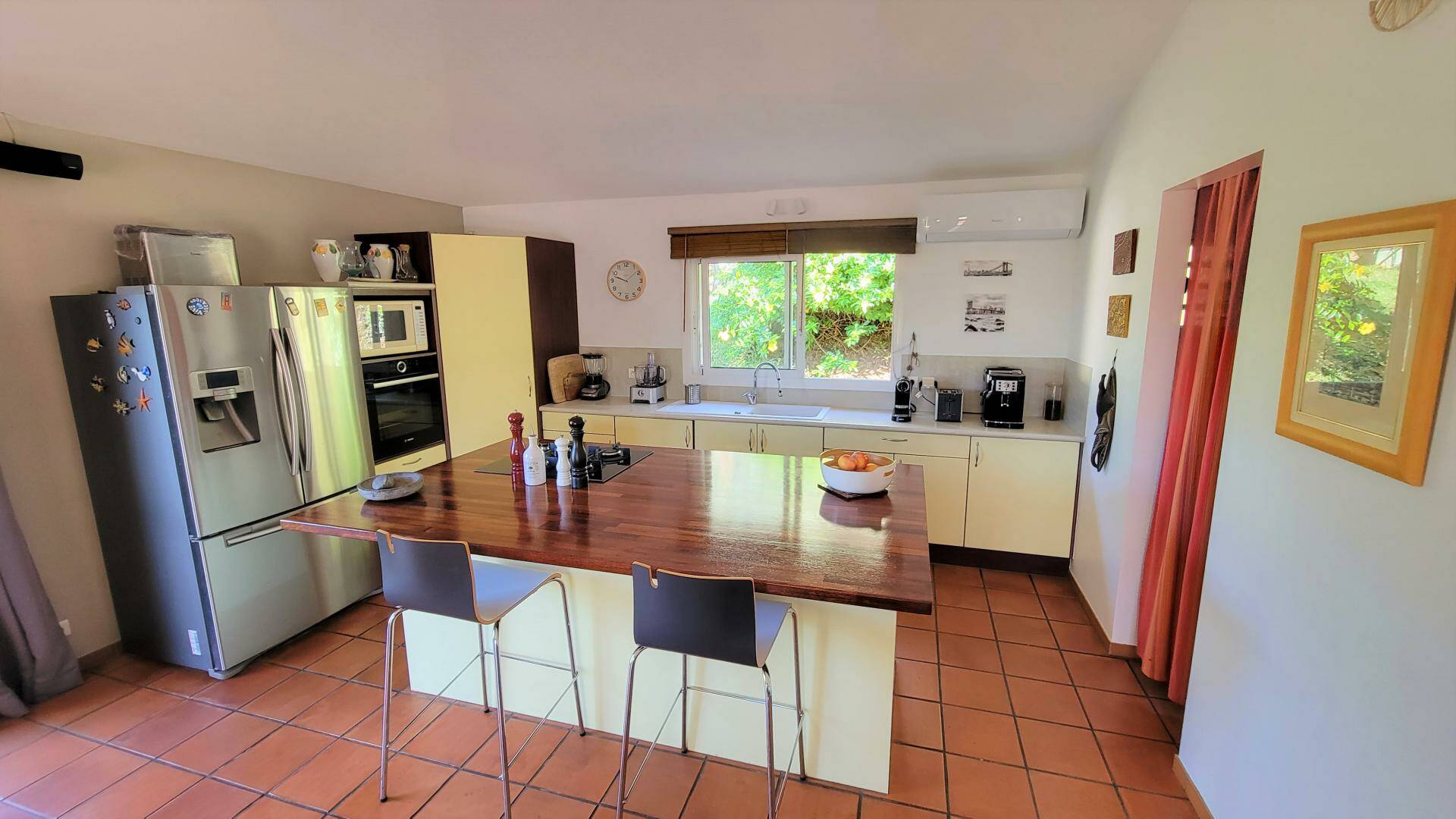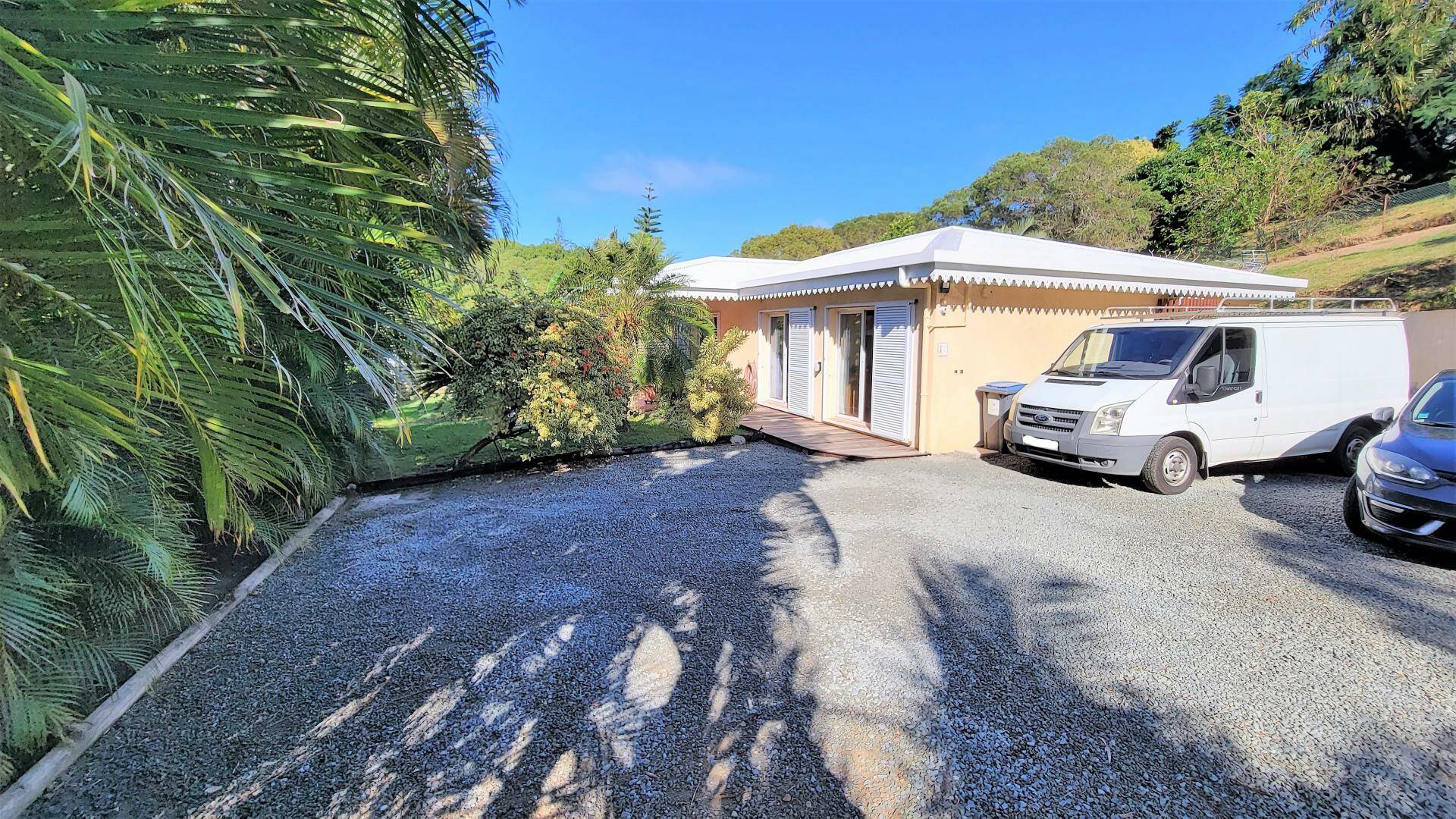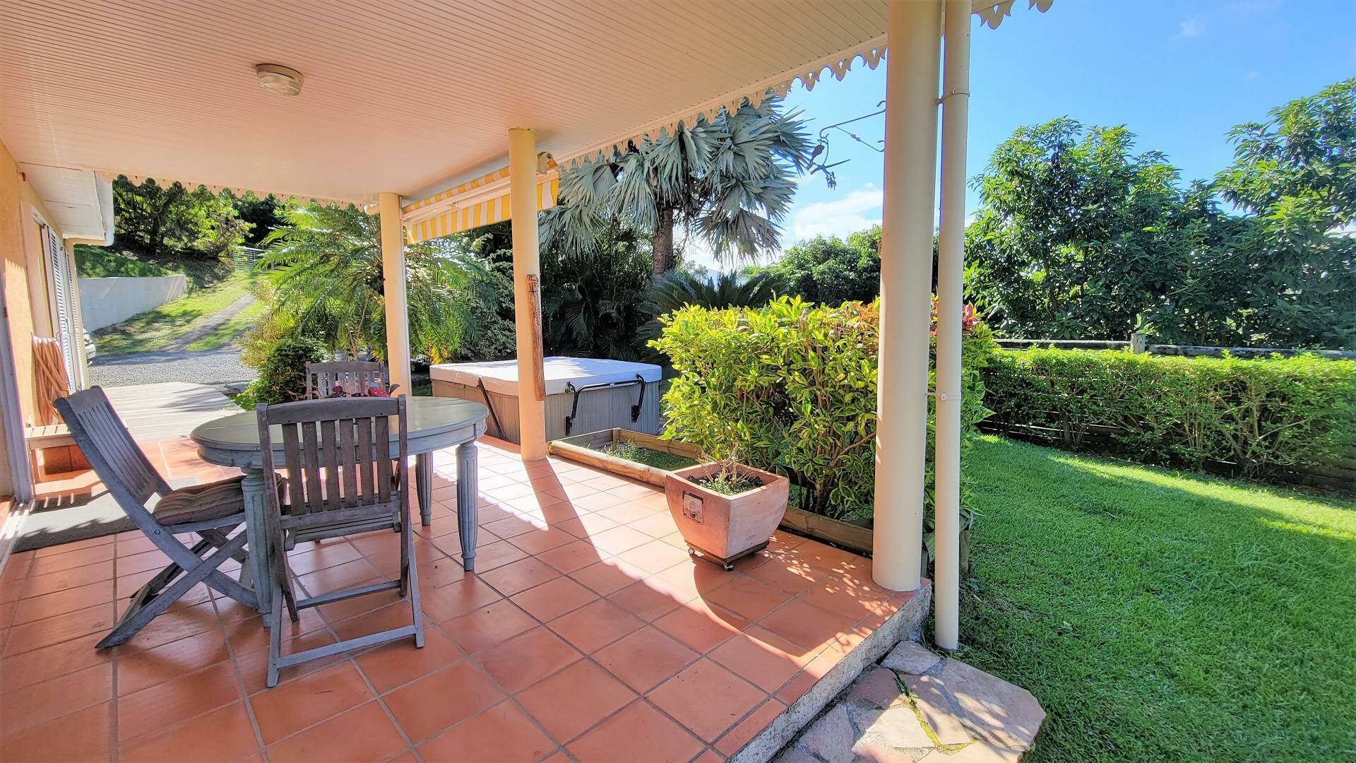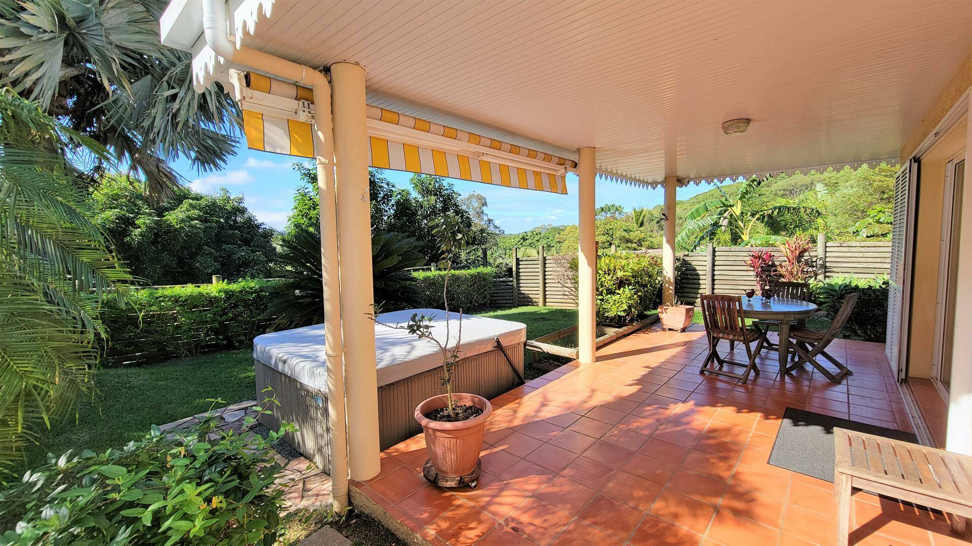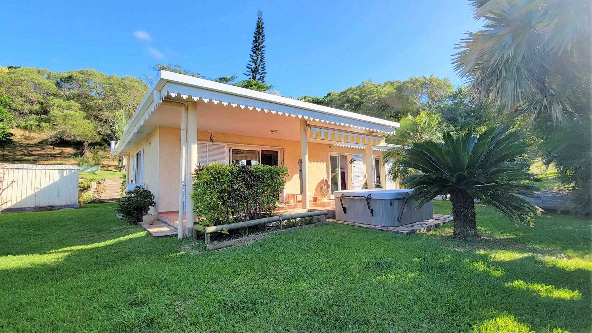 Dans environnement calme et verdoyant, en position dominante, villa F4 en maçonnerie traditionnelle comportant une cuisine équipée ouverte sur séjour avec belles hauteurs sous plafond, 3 chambres climatisées avec placard, une salle d'eau, un wc indépendant, une buanderie – Une terrasse couverte donne accès au spa pool et au jardin, arboré et végétalisé – Abri de jardin – Zone de stationnement pour 4 véhicules – Le tout sur une parcelle entièrement clôturée de 15 ares (Zone Non Inondable)