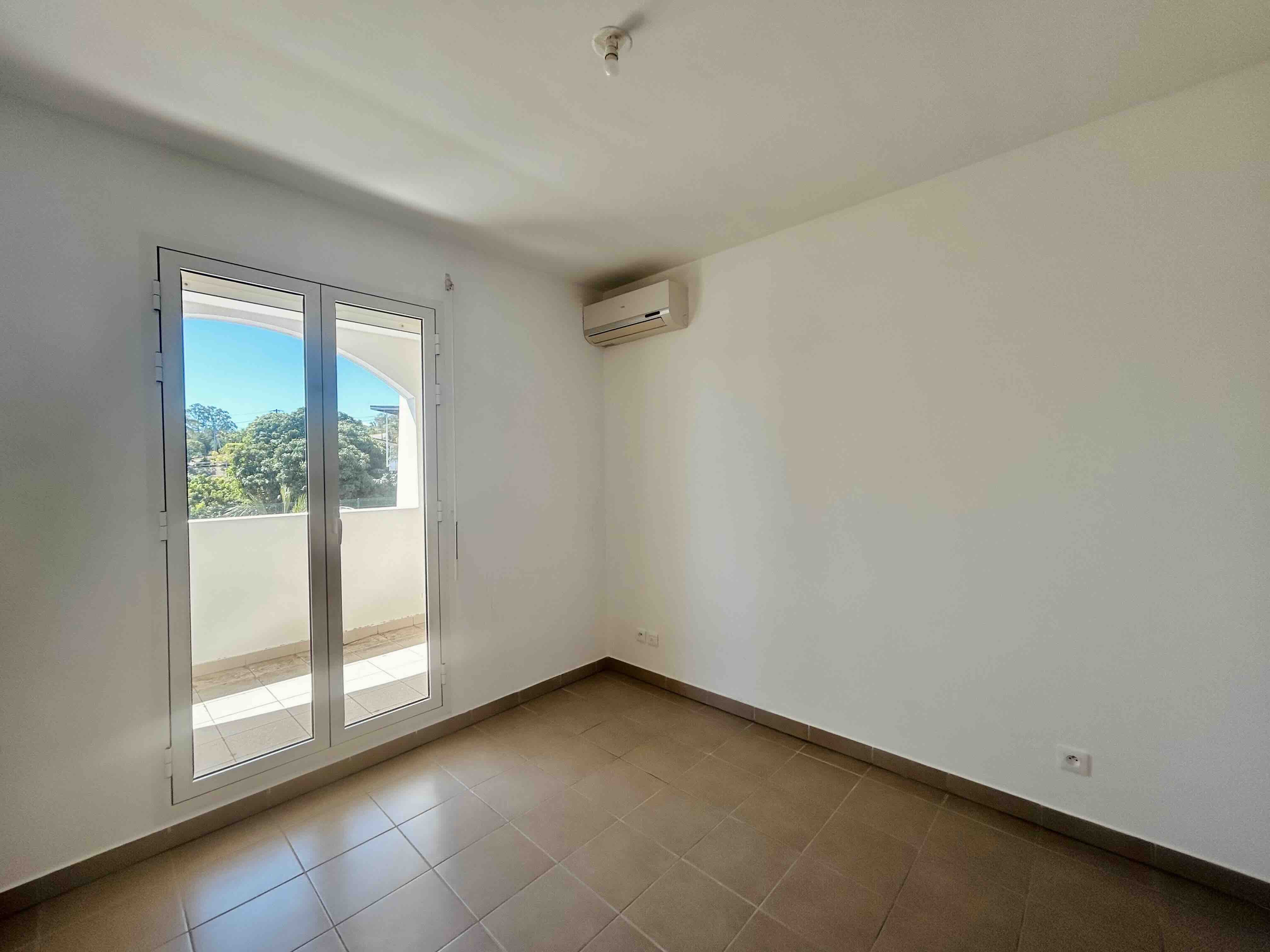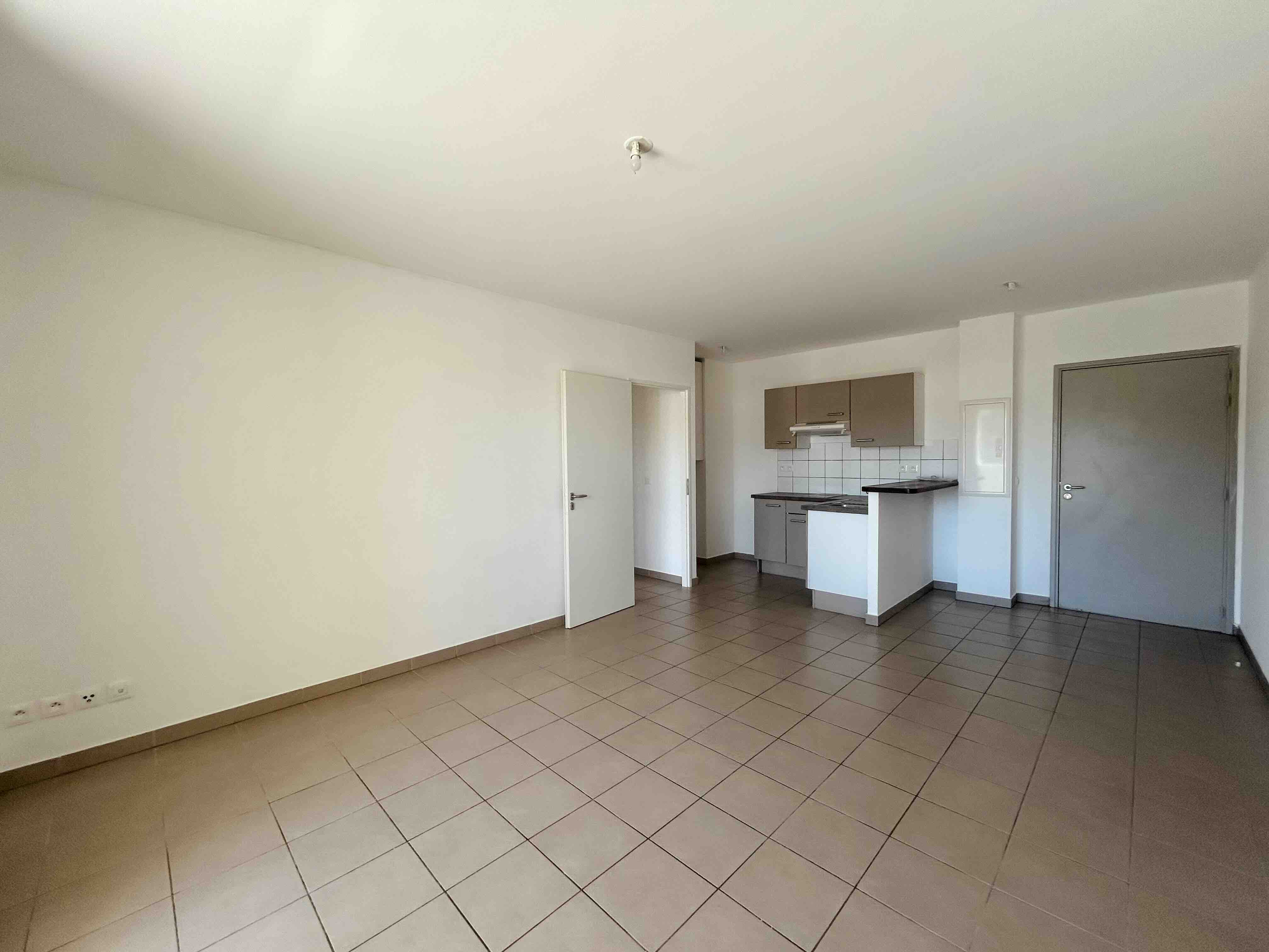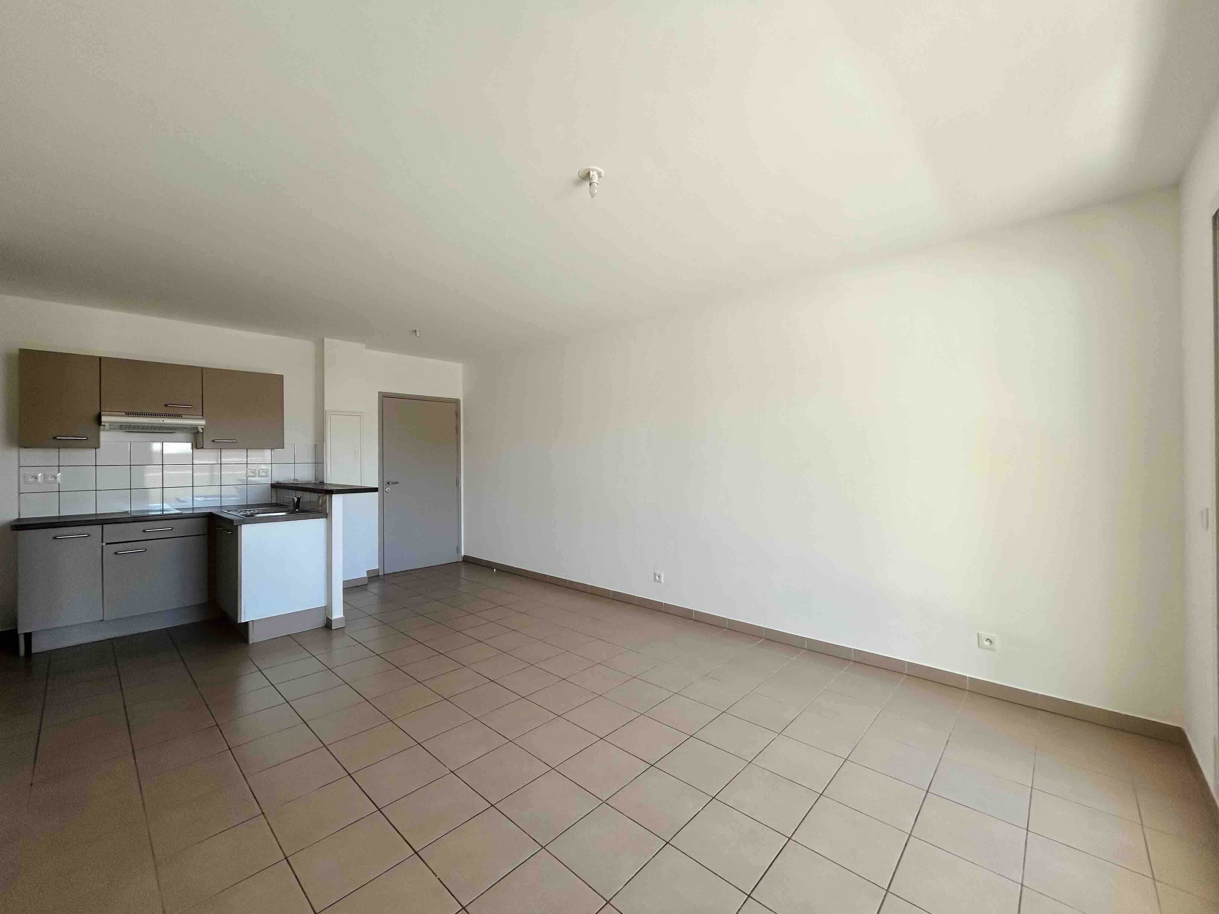 Appartement de type F2, au niveau R-1 dans la Résidence Tiaré, d'une surface de 40m2 et comprenant une salle de séjour avec coin cuisine, un dégagement, une chambre avec placard, une salle d'eau avec wc, une terrasse couverte d'une superficie de 12m2 ainsi qu'un emplacement de stationnement.