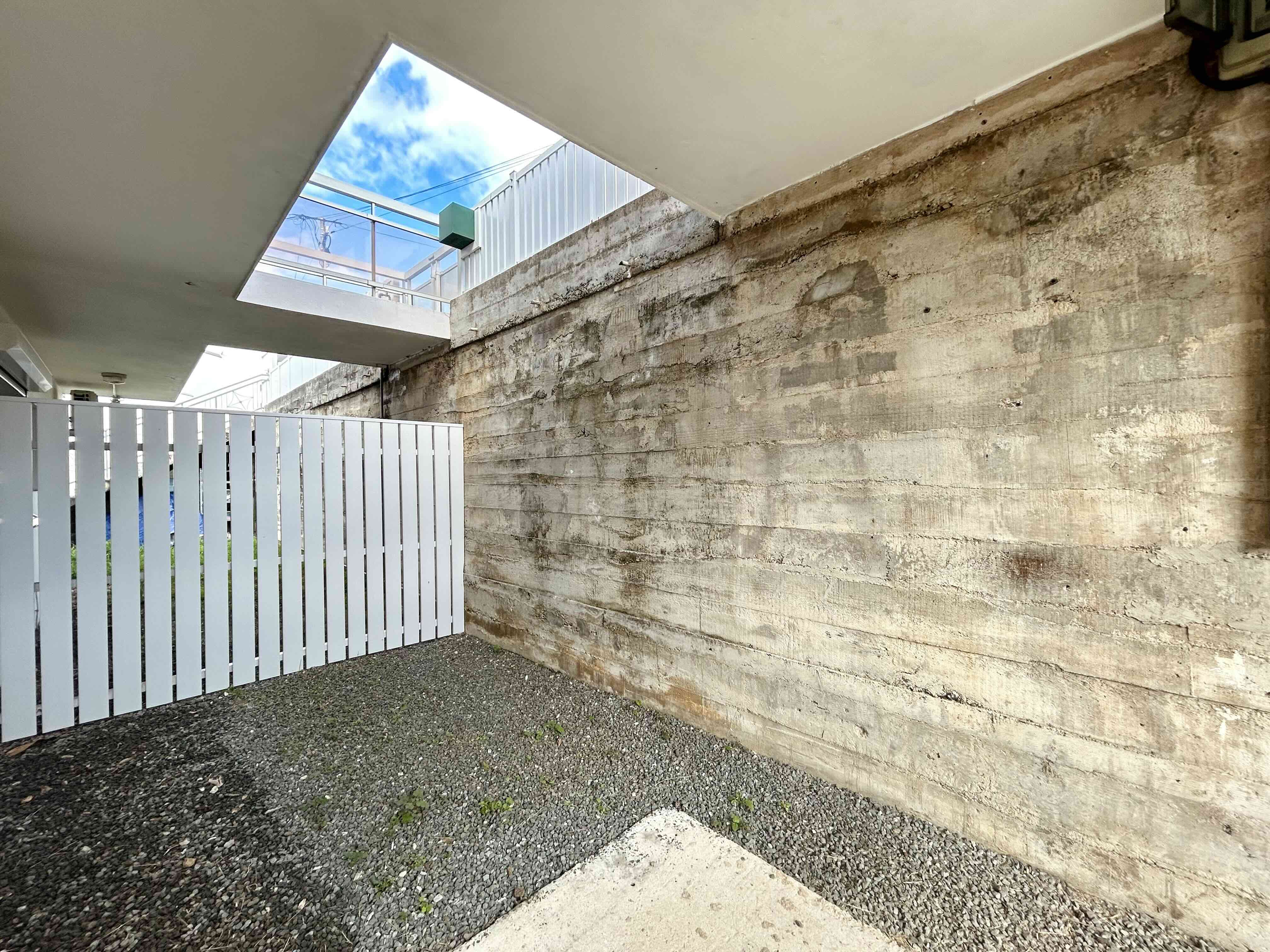 Vous aurez la jouissance d'un jardin (non cloturé) ainsi qu'un espace extérieur couvert.
