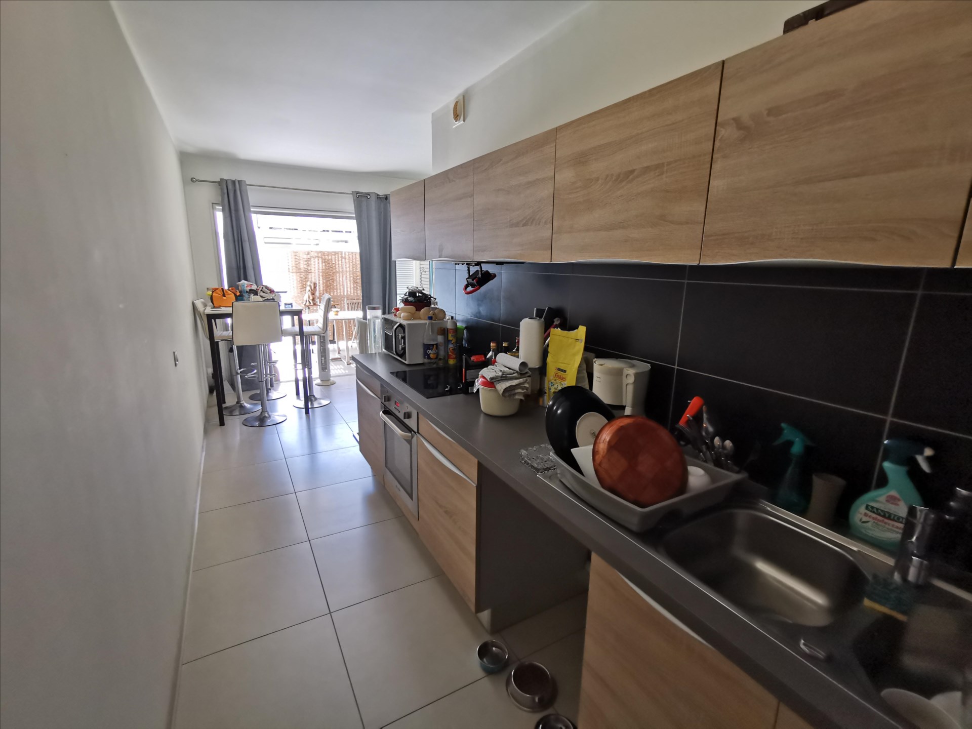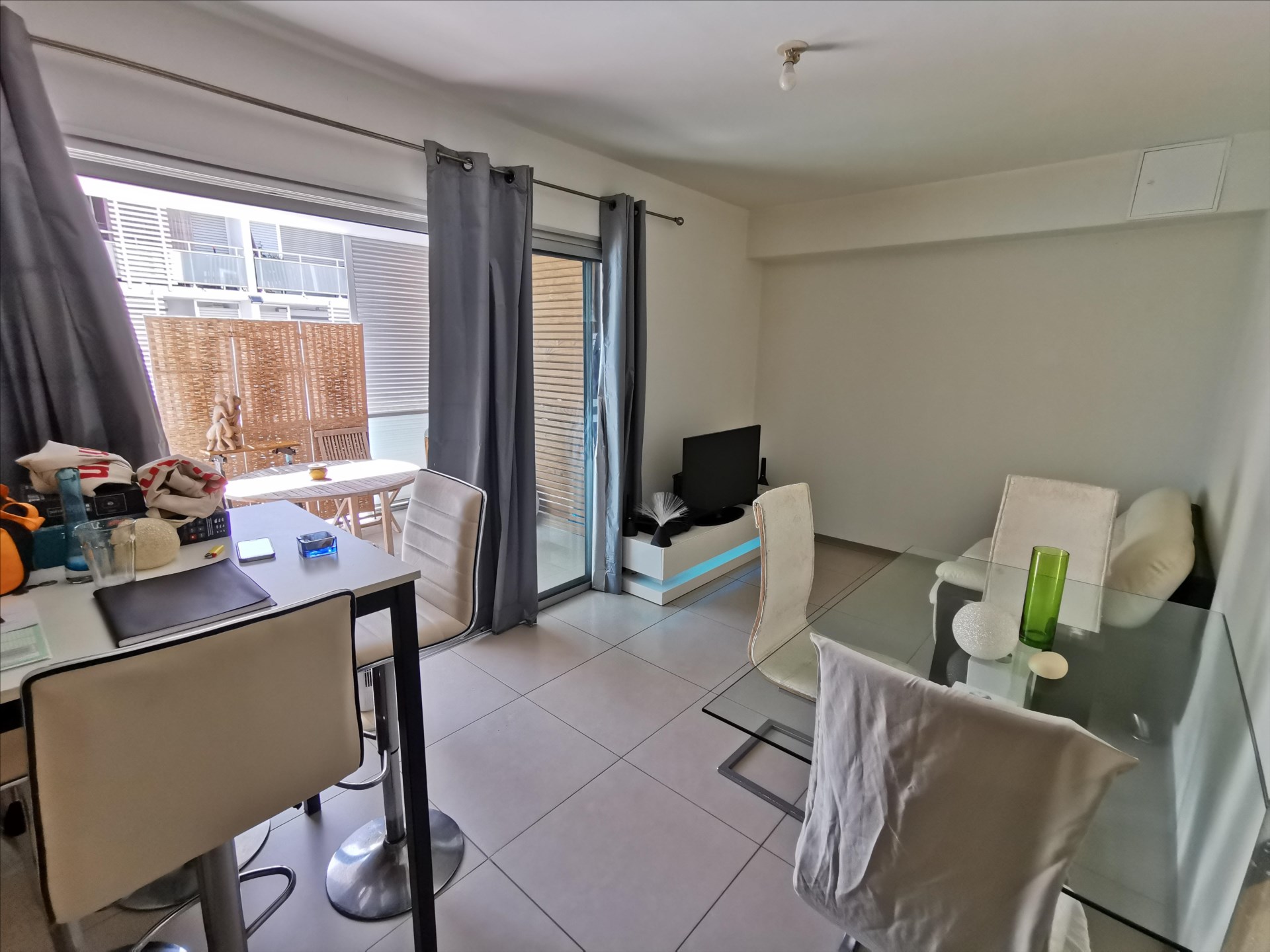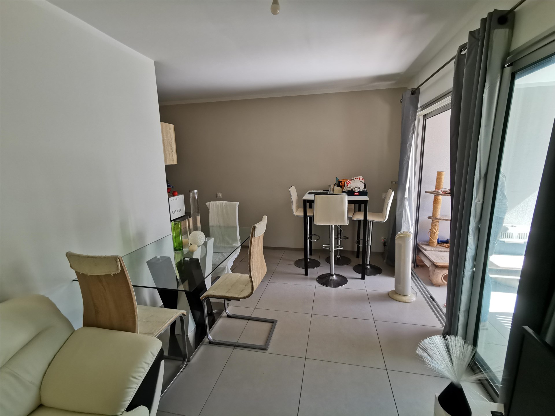 F2 récent env. 36m², cuisine équipée, salon, chambre climatisée avec placards, salle d'eau/wc, belle terrasse de 12,94m² avec buanderie, vue mer, 1 cellier et 1 parking souterrain, en bout d'impasse, à 2 pas de la clinique. Loué 75 000F.