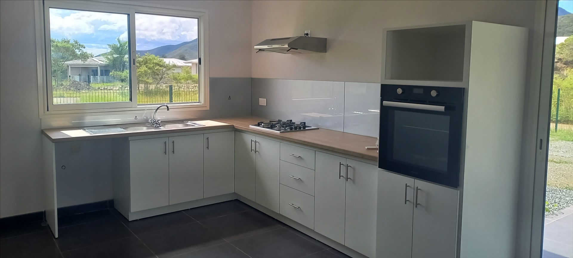 Située dans le lotissement trés calme de Green Valley à Voh, cette charmante villa F3, neuve, dispose de 2 chambres avec placards, climatiseurs et moustiquaires, d'une cuisine équipée (four plaque et hotte) donnant sur un grand séjour climatisé avec moustiquaires également. Une salle de bain à l'italienne, un water closet indépendant, une buanderie et une terrasse couverte, Le tout sur un lot entièrement clôturé avec un portail électrique.