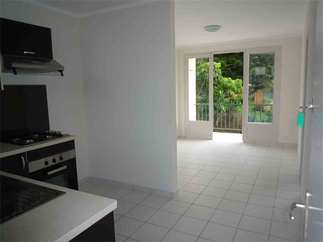 Cet appartement de 45 m² comprend un séjour, une cuisine équipée, une chambre climatisée avec placard, une salle d'eau avec WC attenant et un balcon.