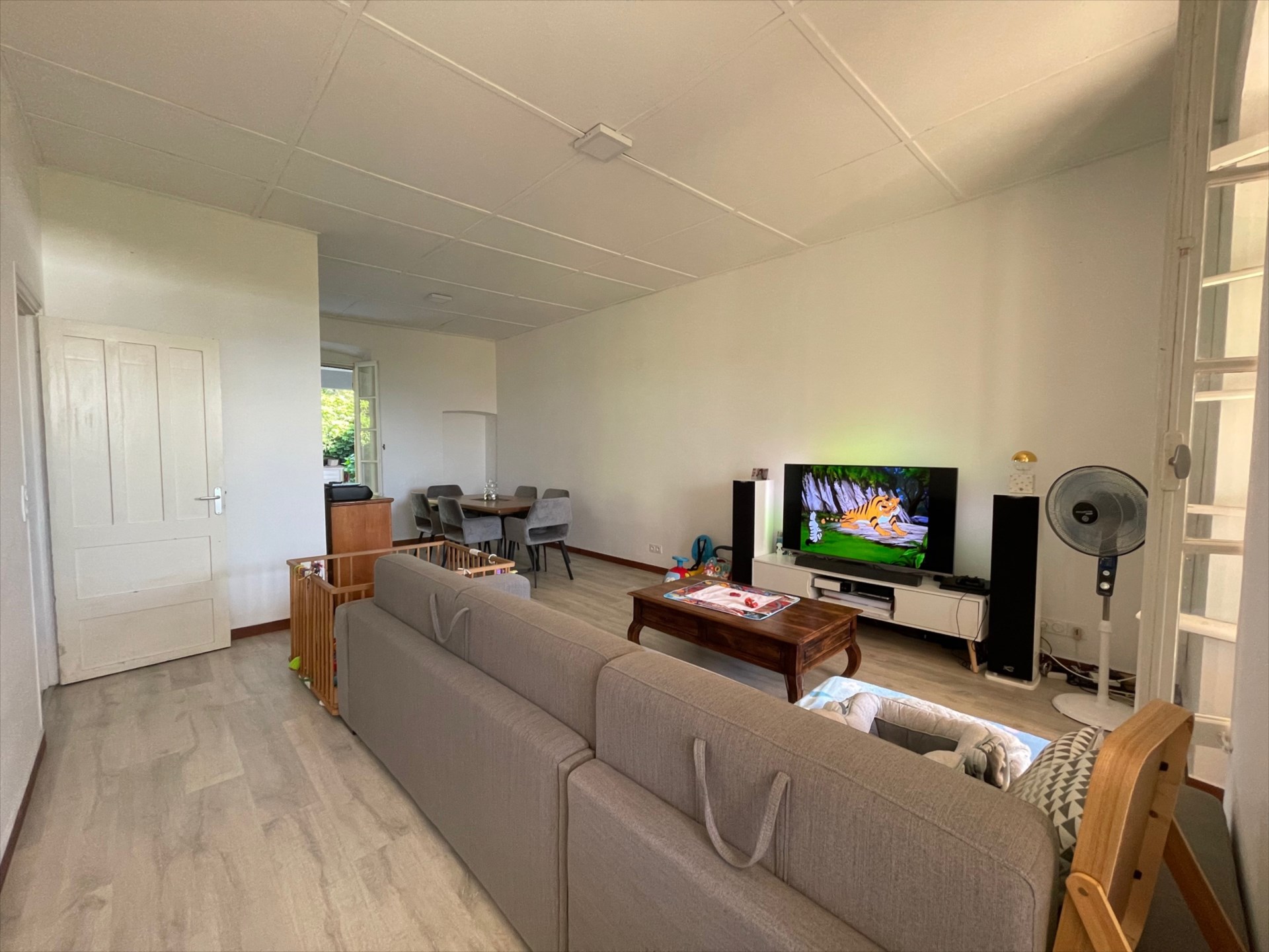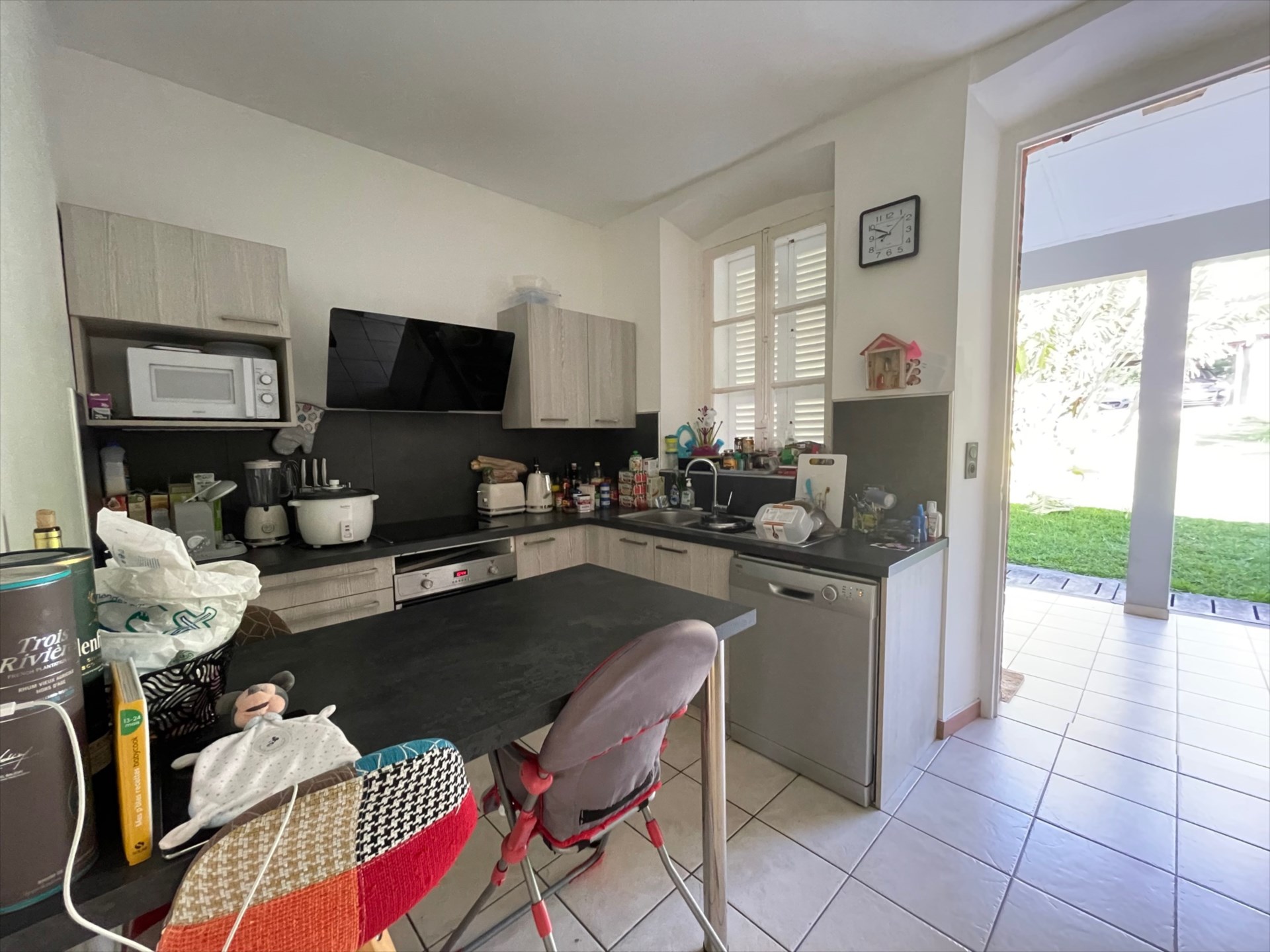 Elle se compose comme suit : une entrée par cuisine moderne, nombreux rangements, semie-meublée et équipée, un vaste séjour lumineux, 2 chambres avec volet, placard et clim, une salle d'eau (douche à l'italienne), wc indépendant.