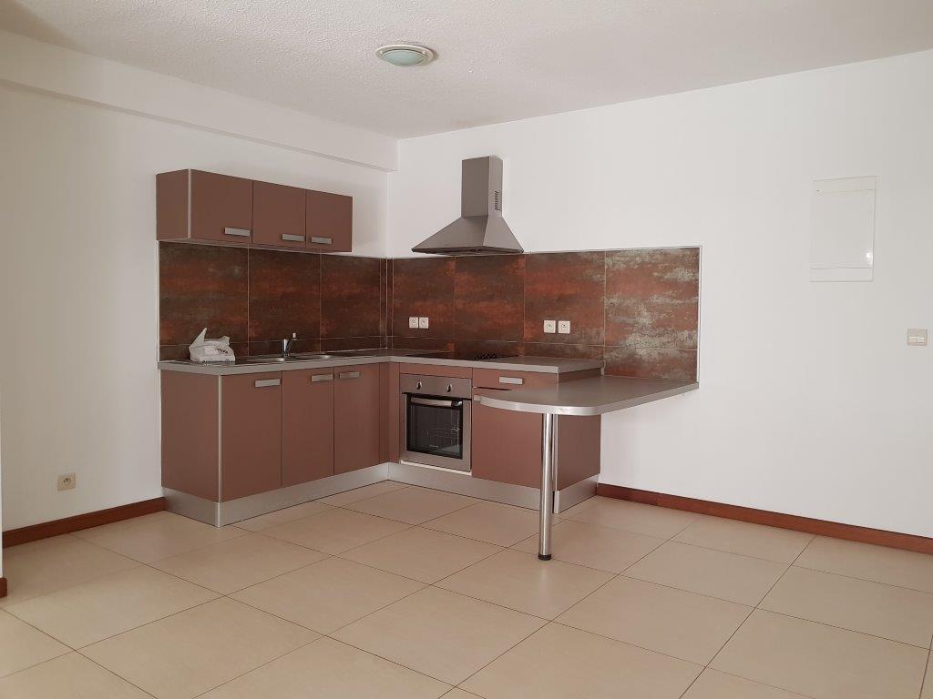 En entrant, vous découvrirez un séjour, ainsi qu'une cuisine bien agencée et semi-équipée, comprenant une plaque vitrocéramique, un four et une hotte.