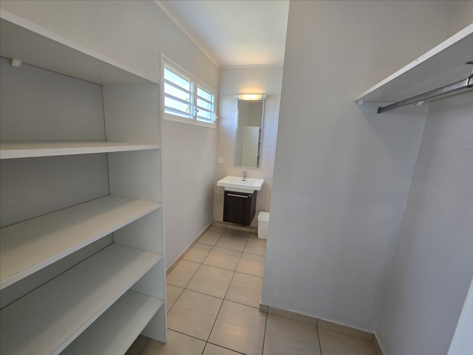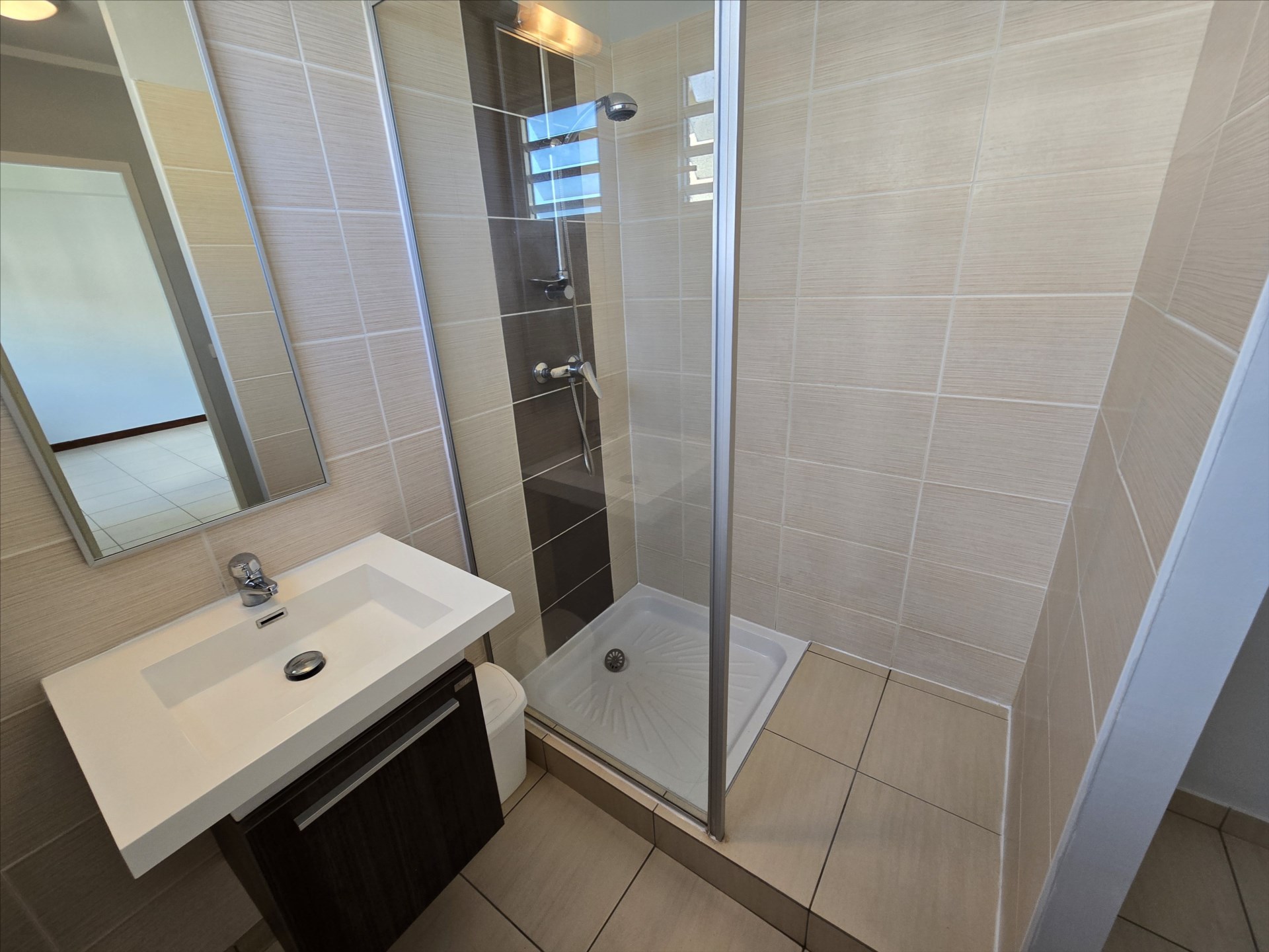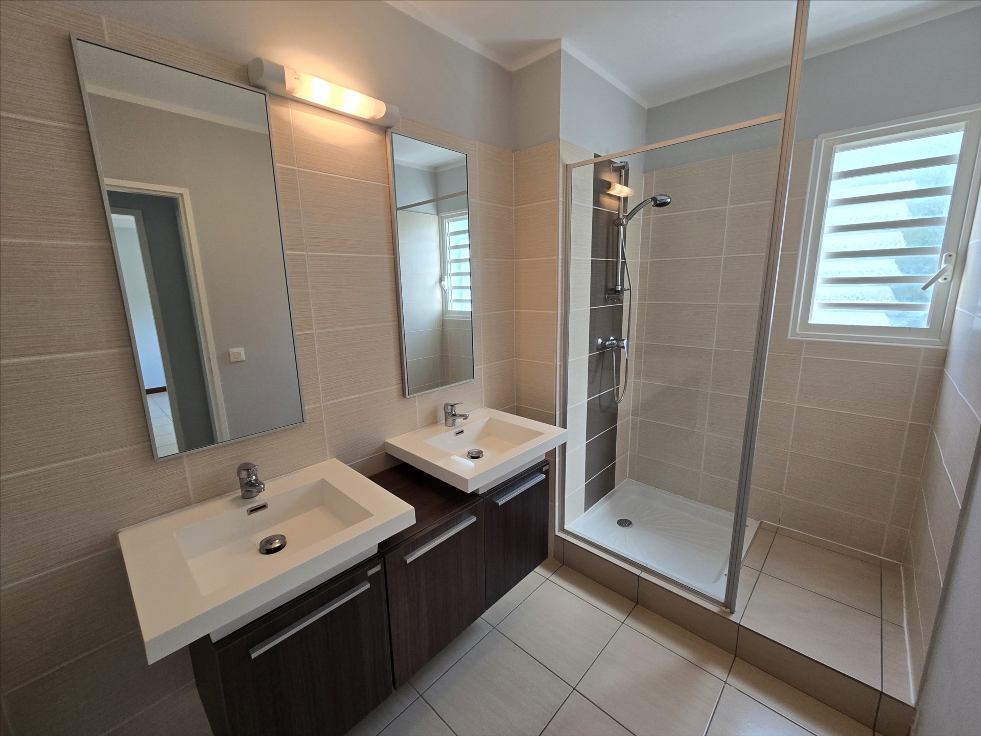 Domaine de Nouré : spacieux F4 de 91m², traversant, grand séjour, cuisine équipée, 3 chambres climatisées dont une suite parentale avec dressing et salle d'eau, wc, salle d'eau, grande buanderie, terrasse, 2 parkings. Libre!