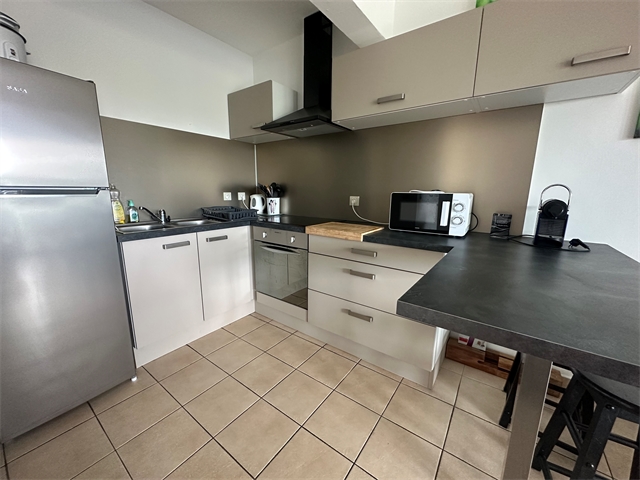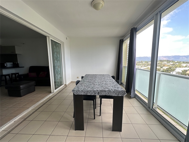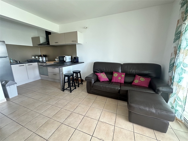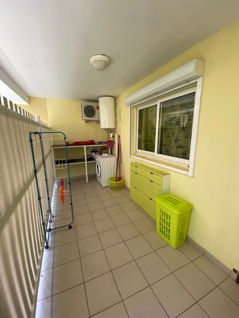 Comprenant un séjour avec cuisine américaine neuve, une terrasse fermée de 14 m2 avec une belle vue dégagée, une grande chambre climatisée avec volet roulant et placard, une salle d’eau avec wc ainsi qu’une grande buanderie.