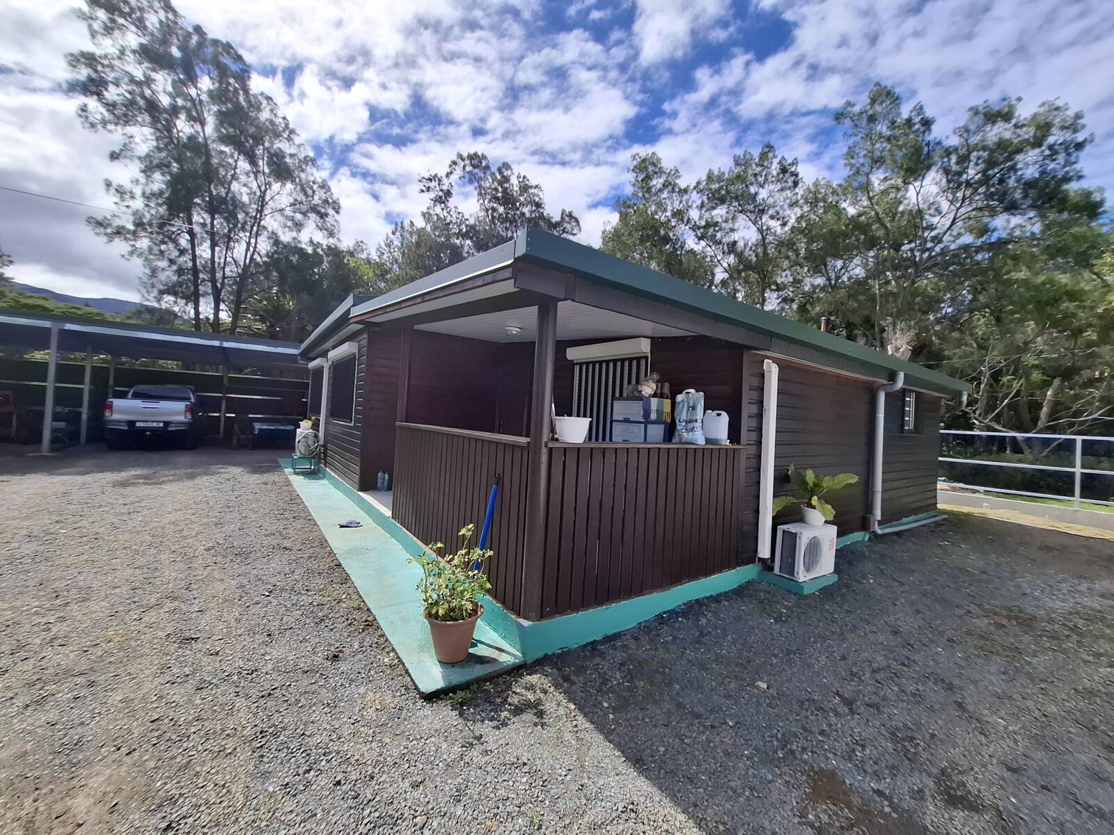 Paita – Tamoa, villa F3 en bois de 95 m² et son faré avec cuisine extérieure, ses 2 docks dont un en structure métallique couvert et non fermé de 72 m², un second dock de 36 m² en « tôles » fermé avec volet roulant, le tout sur un terrain de 86 ares viabilisé et entièrement clôturé donnant accès à la rivière.