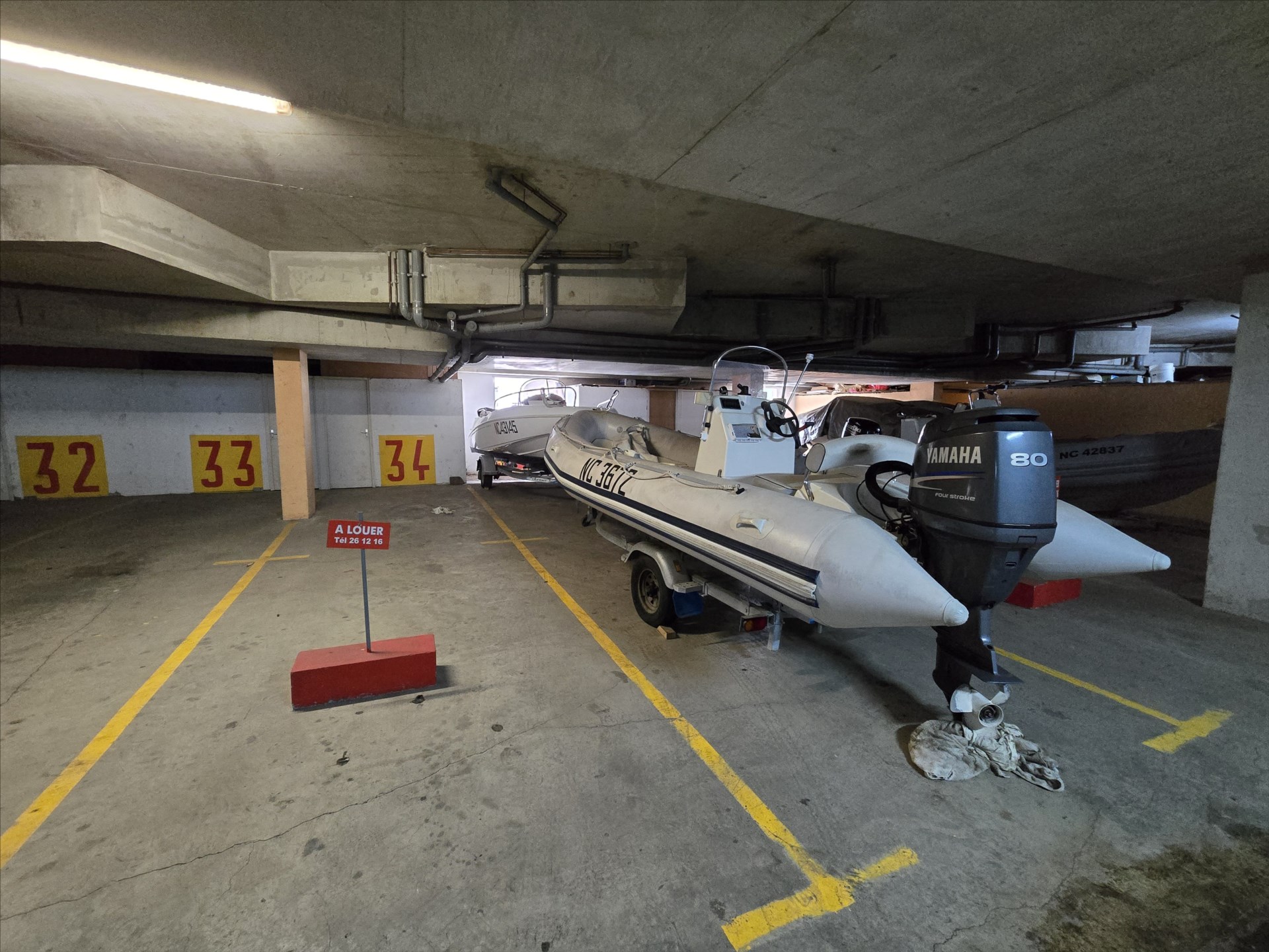 Parking double couverts et sécurisés, à louer au mois, idéal remorque, bateau, jet, véhicule, libre.