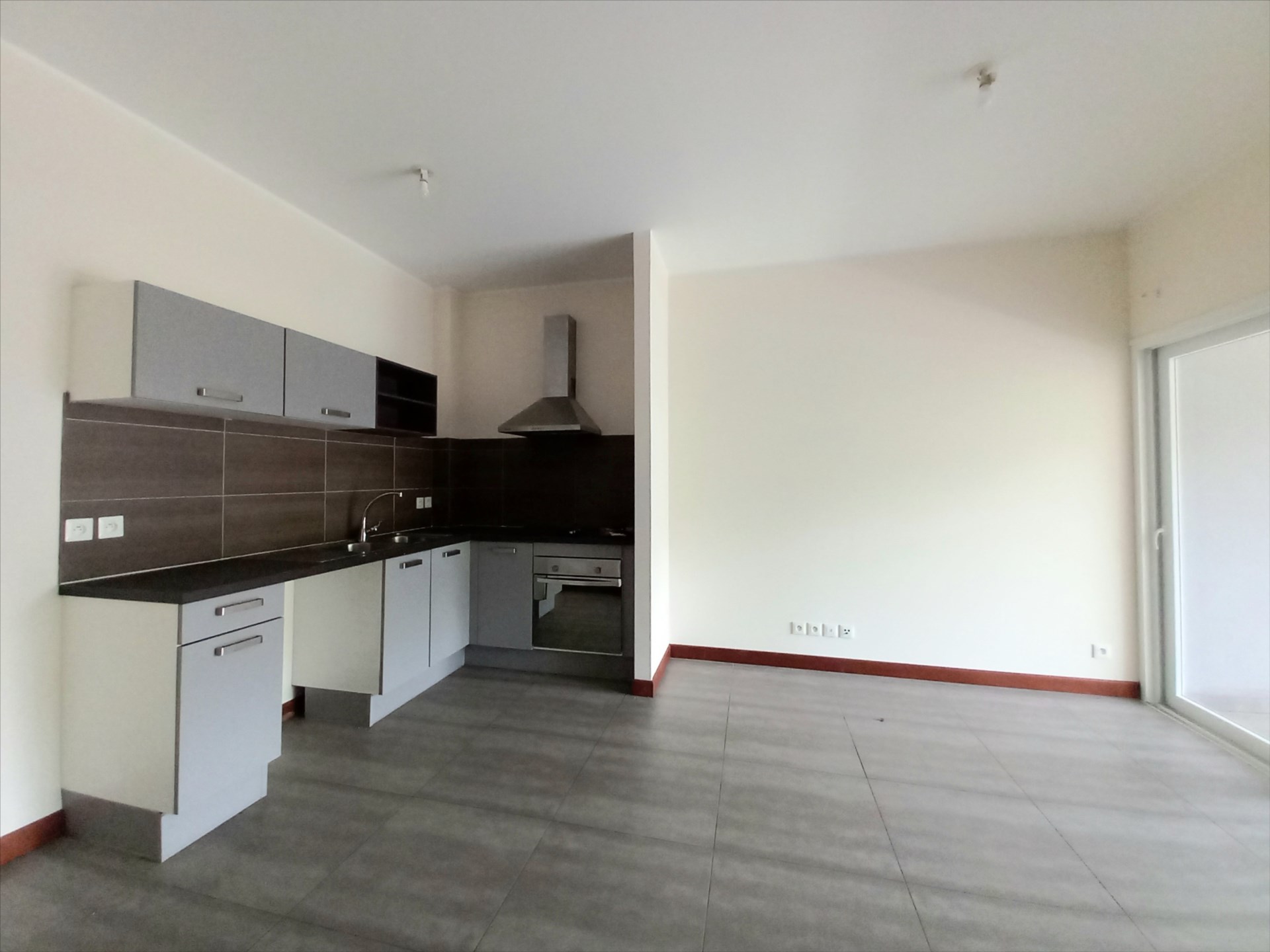 ✅ Cuisine équipée (plaque, four, hotte) avec meubles de rangement.