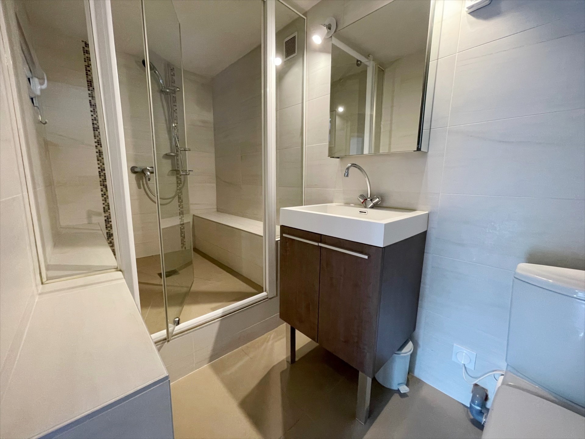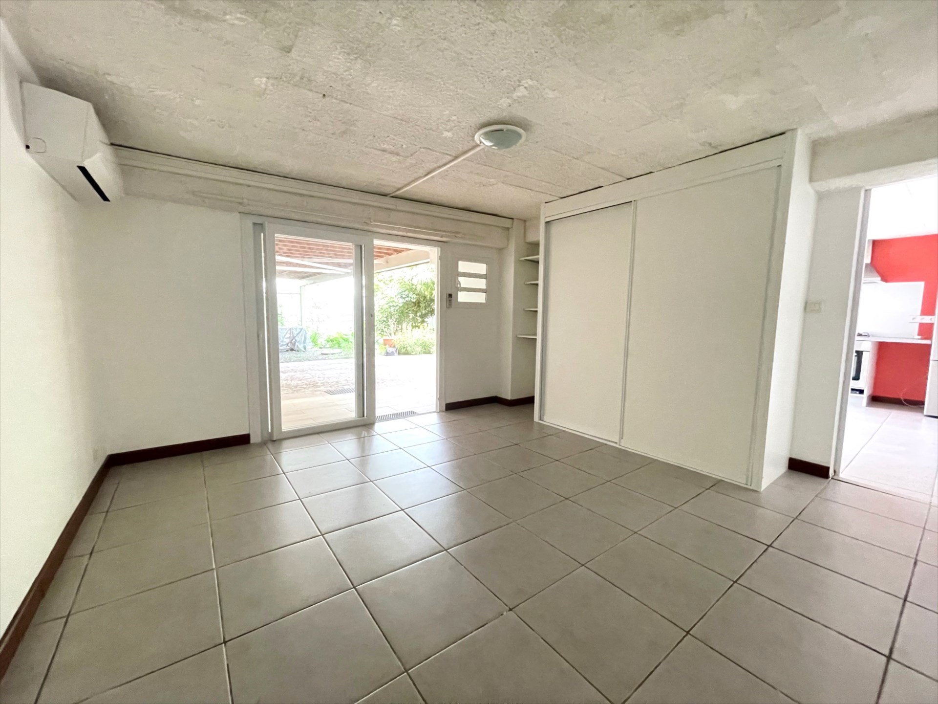 d'une cuisine équipée et aménagée ouvert sur pièce à vivre, d'une chambre climatisée avec placard, et d'une salle d'eau avec wc.
