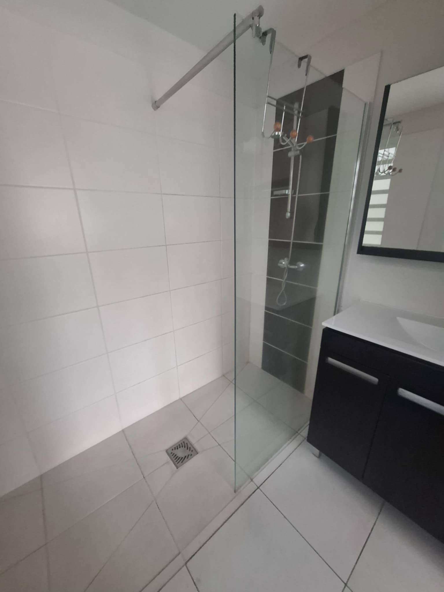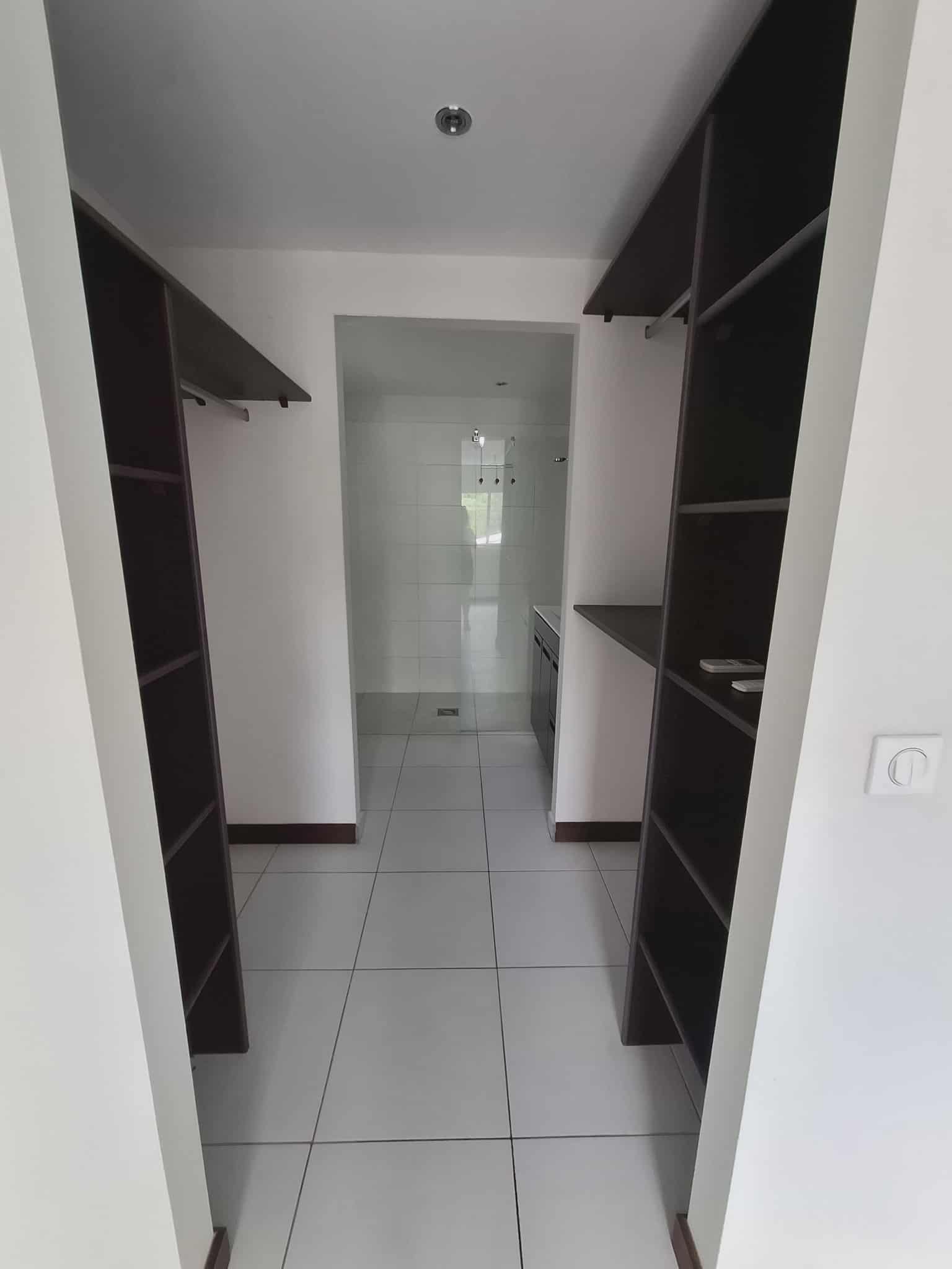 Appartement de type F2 situé au 1er étage d'une résidence calme et sécurisée, une cuisine équipée ouverte sur séjour, une terrasse couverte de + de 12 m² avec volet roulant, un dégagement, une chambre climatisée avec dressing et volet roulant, une salle d'eau, un WC indépendant avec espace buanderie.