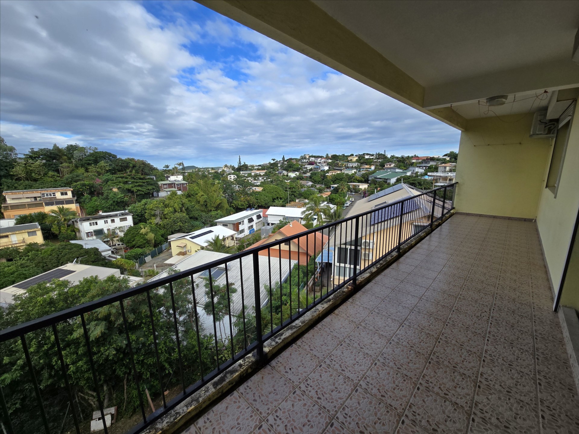 F3 de 70m² traversant, 3ième étage sans ascenseur, salon, cuisine semi-aménagée, salle de bains, wc séparé, 2 chambres climatisées avec placards, 2 terrasses, proximité commerces, parking sécurisé. Eau dans les charges. Libre de suite!