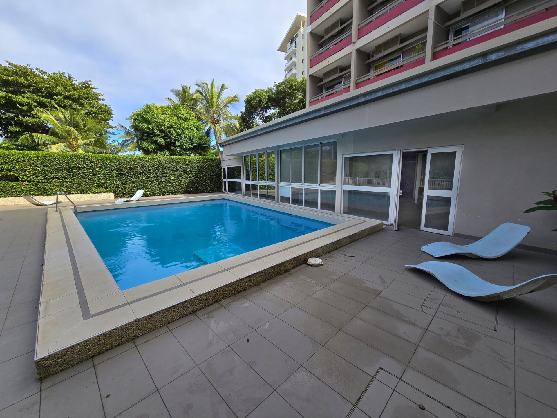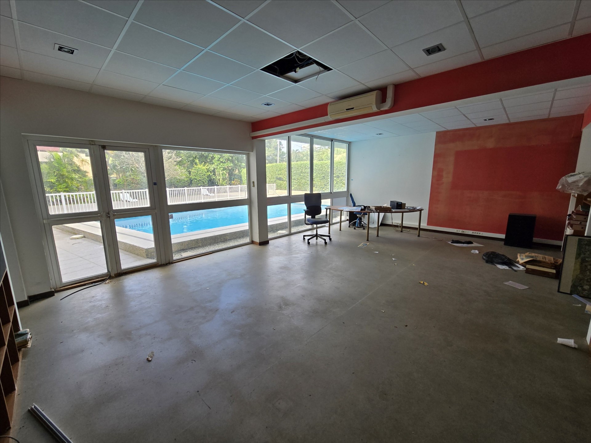 Suite liquidation judicière : Résidence Isle de France, local professionnel, commercial ou de service de 107,74m² en rez de chaussée, entrée, bureaux, local archives et une grande salle donnant sur la piscine, modulable facilement, sanitaires communs, pas de point d'eau, travaux à prévoir.