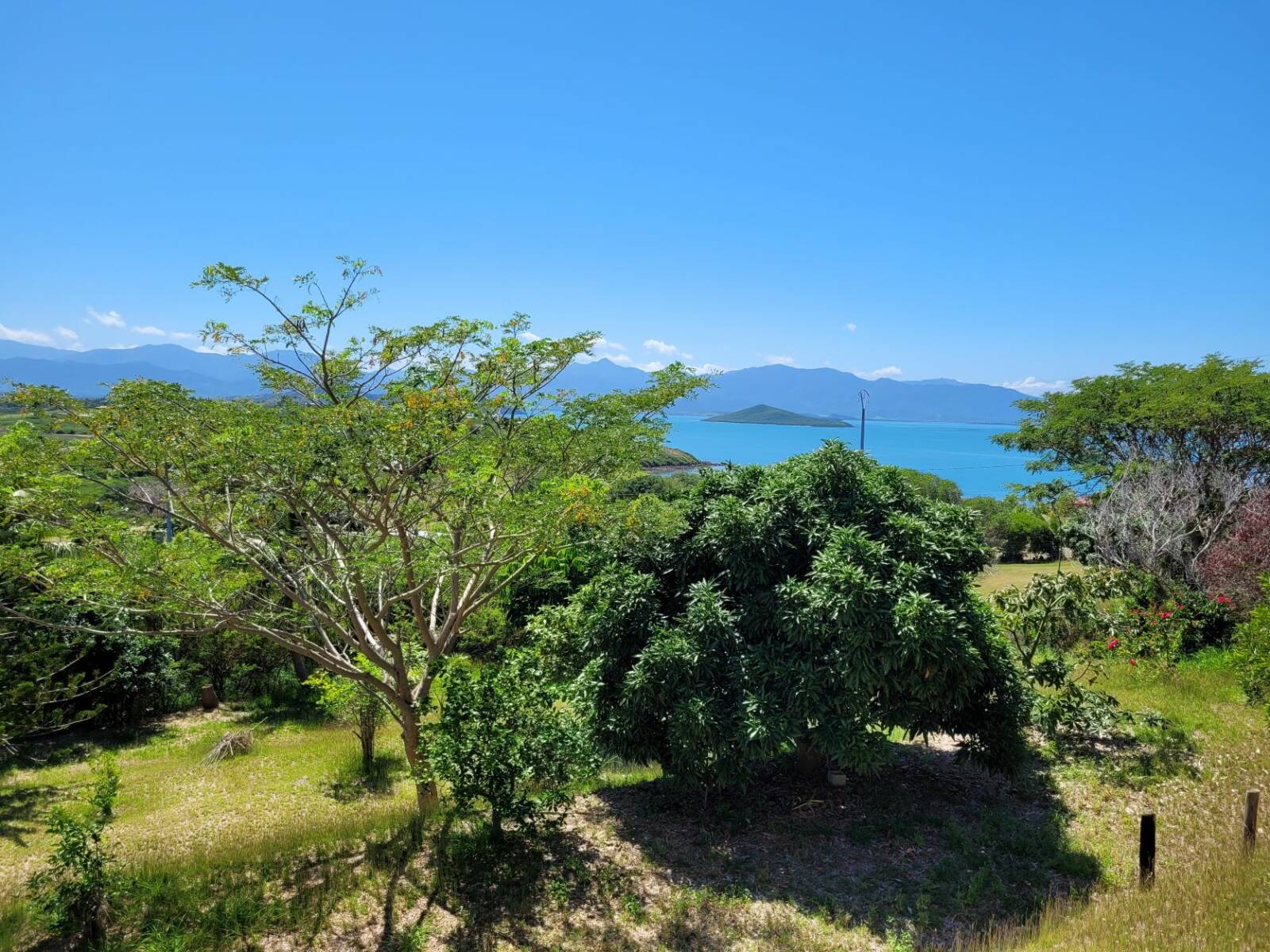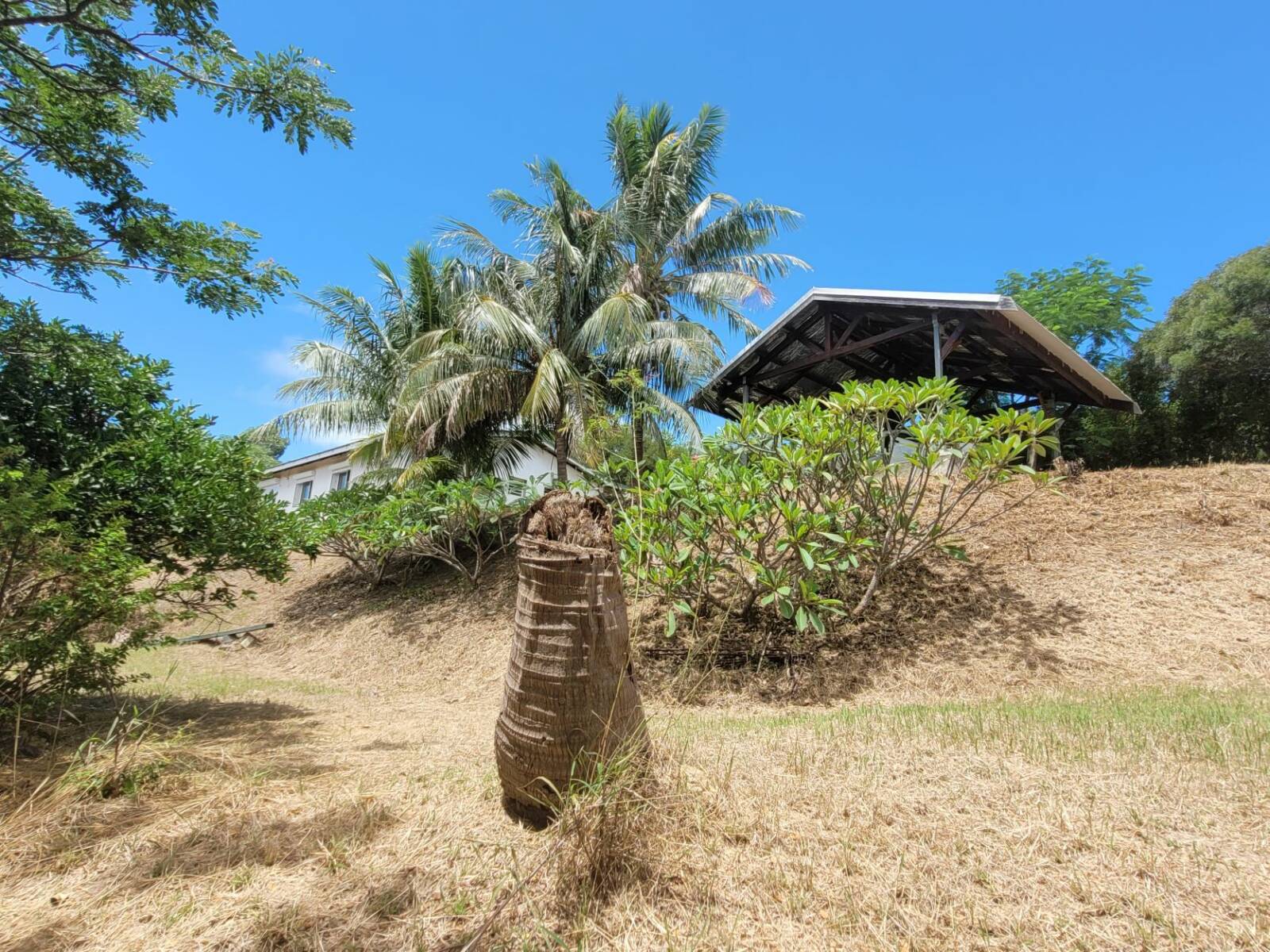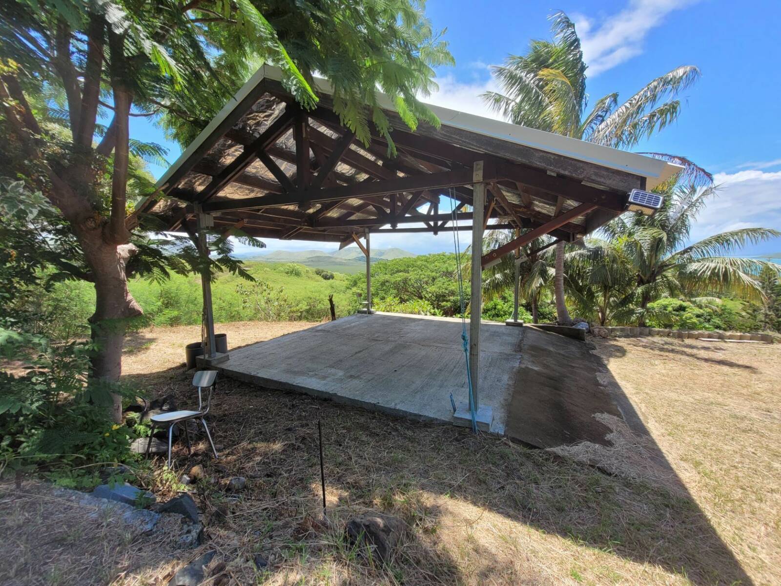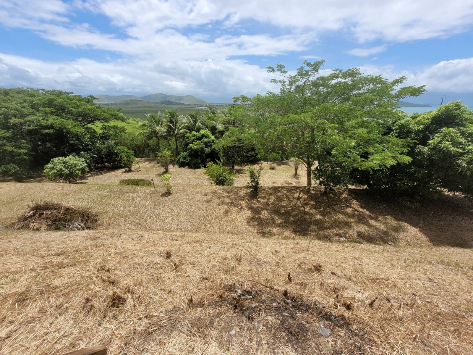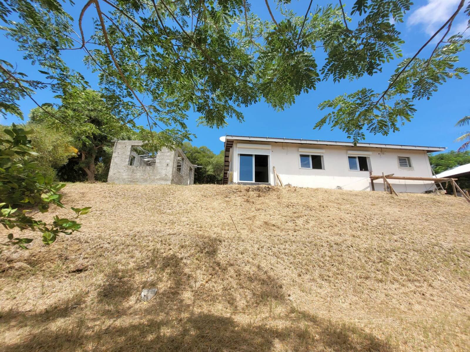 Bouraké, jolie vue mer et montagne pour ce terrain de 25 ares viabilisé, sur laquelle des constructions débutées en 2008, non achevées, ont été édifiées ;