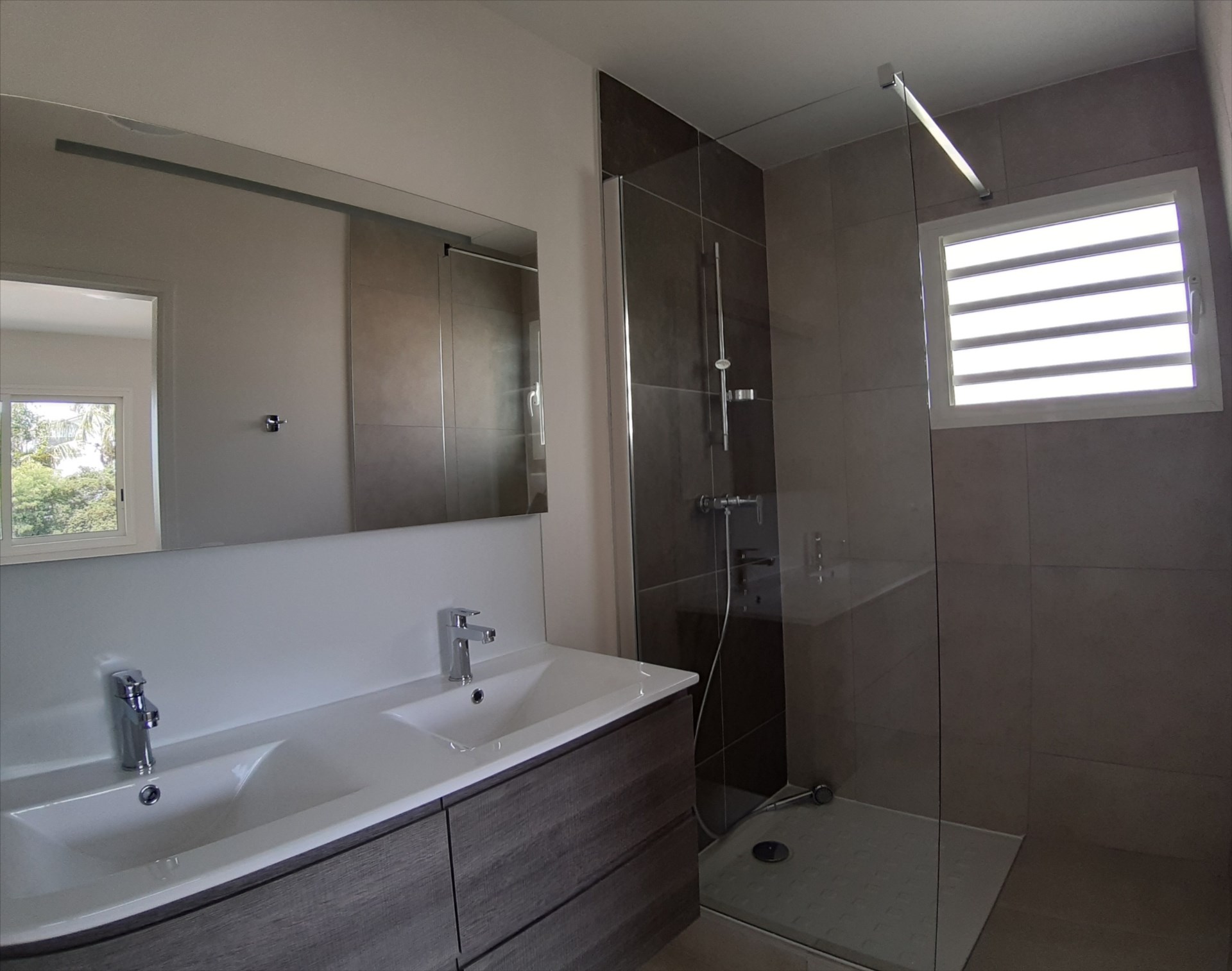 Dans la partie nuit, vous trouverez deux chambres climatisées avec rangements, chacune disposant de sa salle d’eau privative, ainsi qu’une buanderie et un WC indépendant.