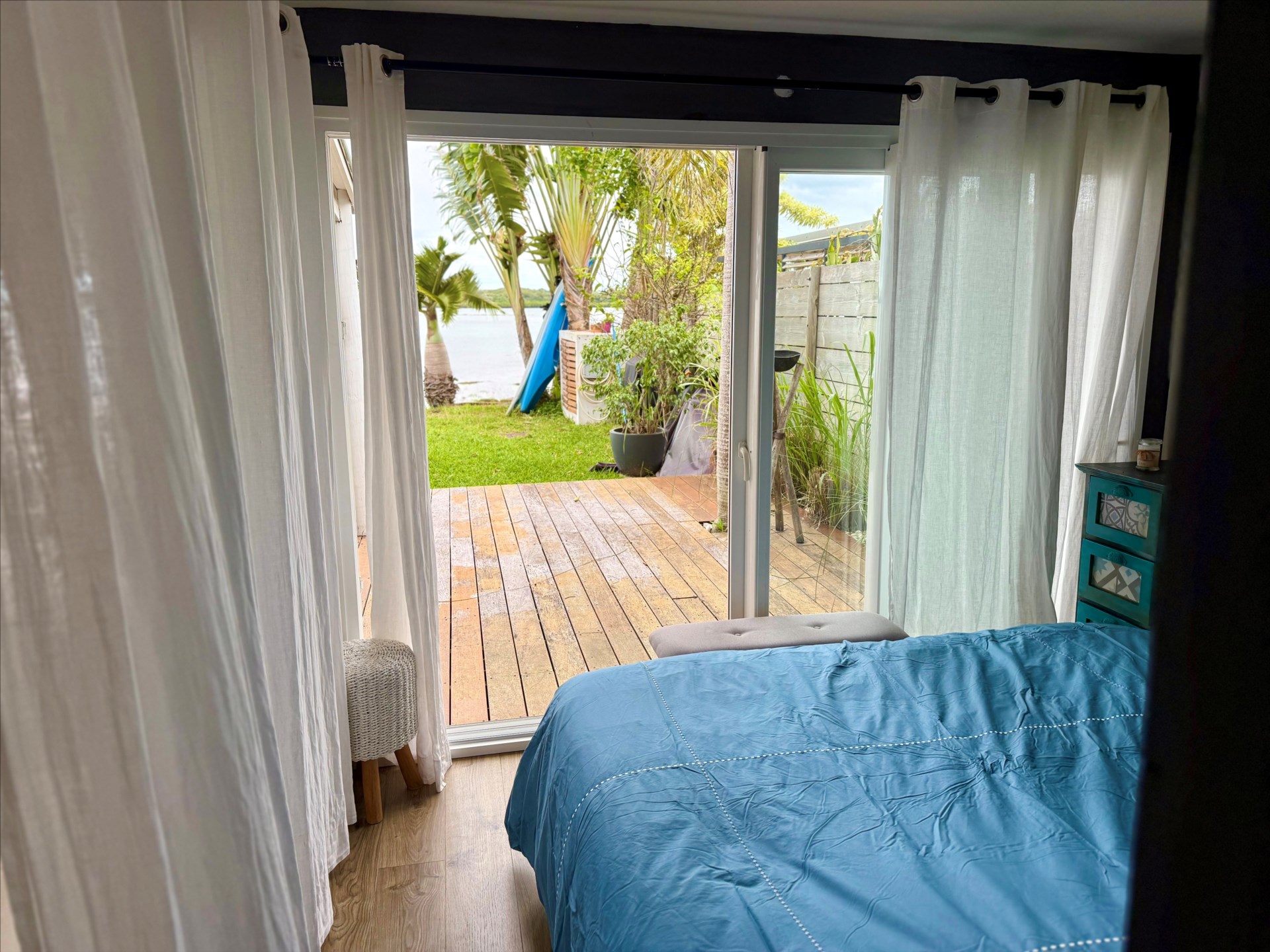 Piscine, jardinet, salon extérieur, espace repas, deck en bois et accès direct à la mer vous attendent pour des moments inoubliables, que ce soit pour une baignade au lever du soleil ou une sortie en canoë au coucher du jour.