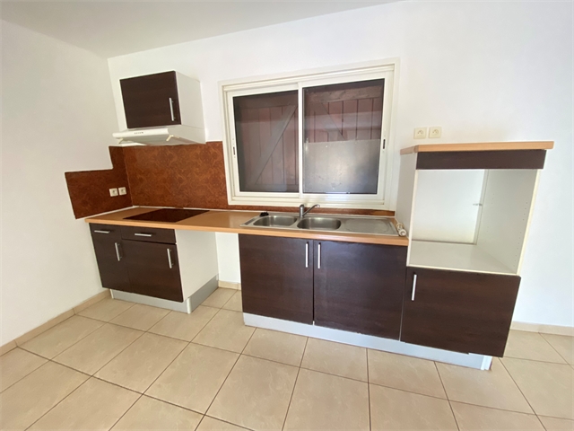 Cette maison est composée en rez de chaussée d'une chambre avec placard, une salle d'eau avec wc, un ebuanderie, un salon-séjour avec coin cuisine équipée, un escalier, une terrasse couverte.