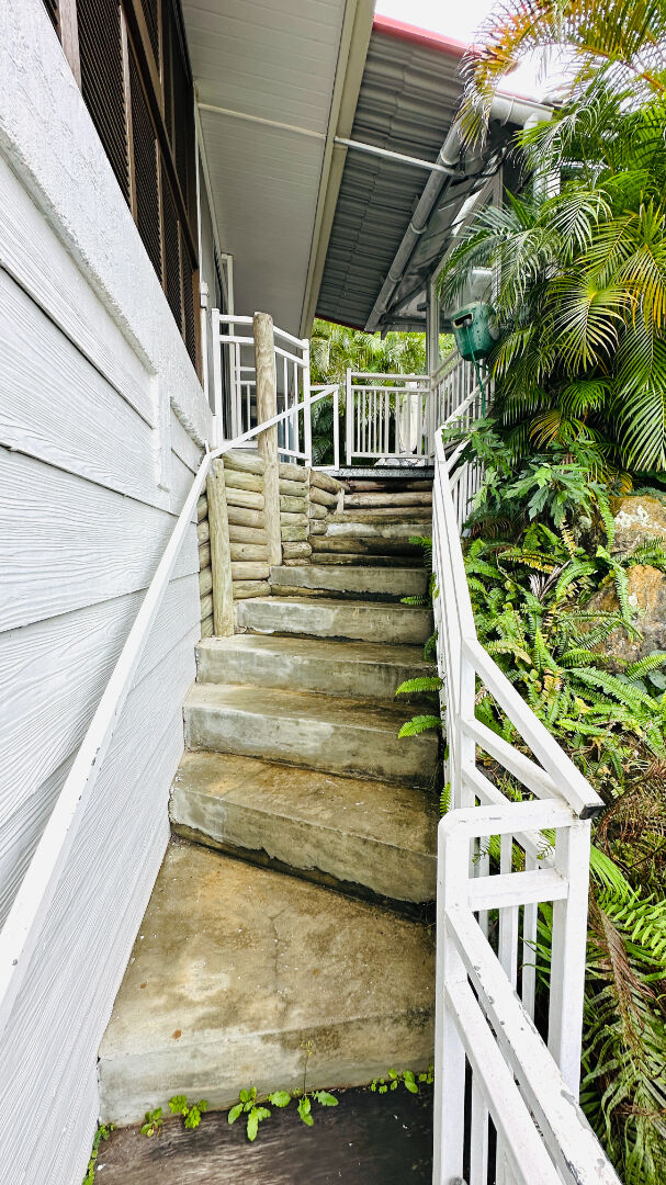 Il comprend : un salon qui donne sur la terrasse, un couloir avec des placards de rangements, deux chambres avec climatisation, placards et baies vitrées donnant sur la terrasse fermée d'environ 42 m2, une salle d'eau, des toilettes séparées, une seconde salle d'eau avec WC à l'extérieur, une autre terrasse non couverte en deck avec une cuisine d'été et un jardin privé.