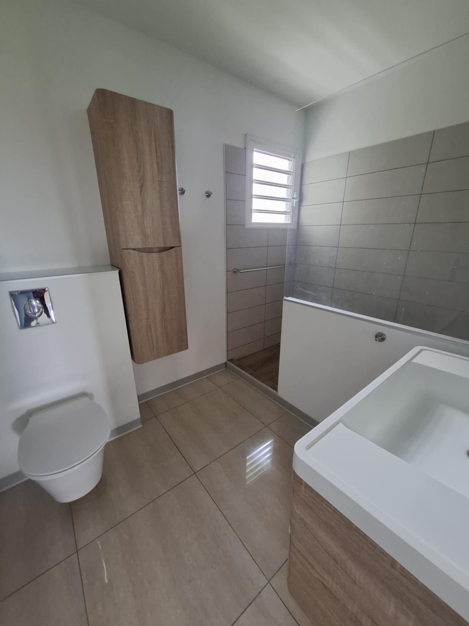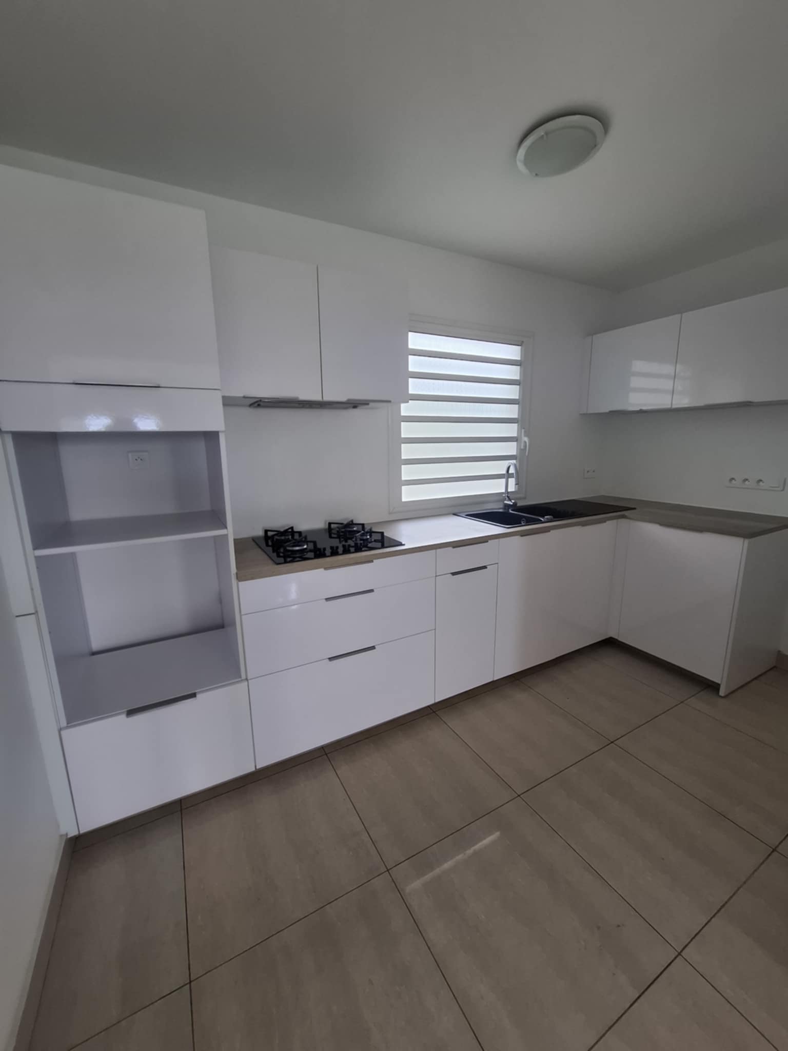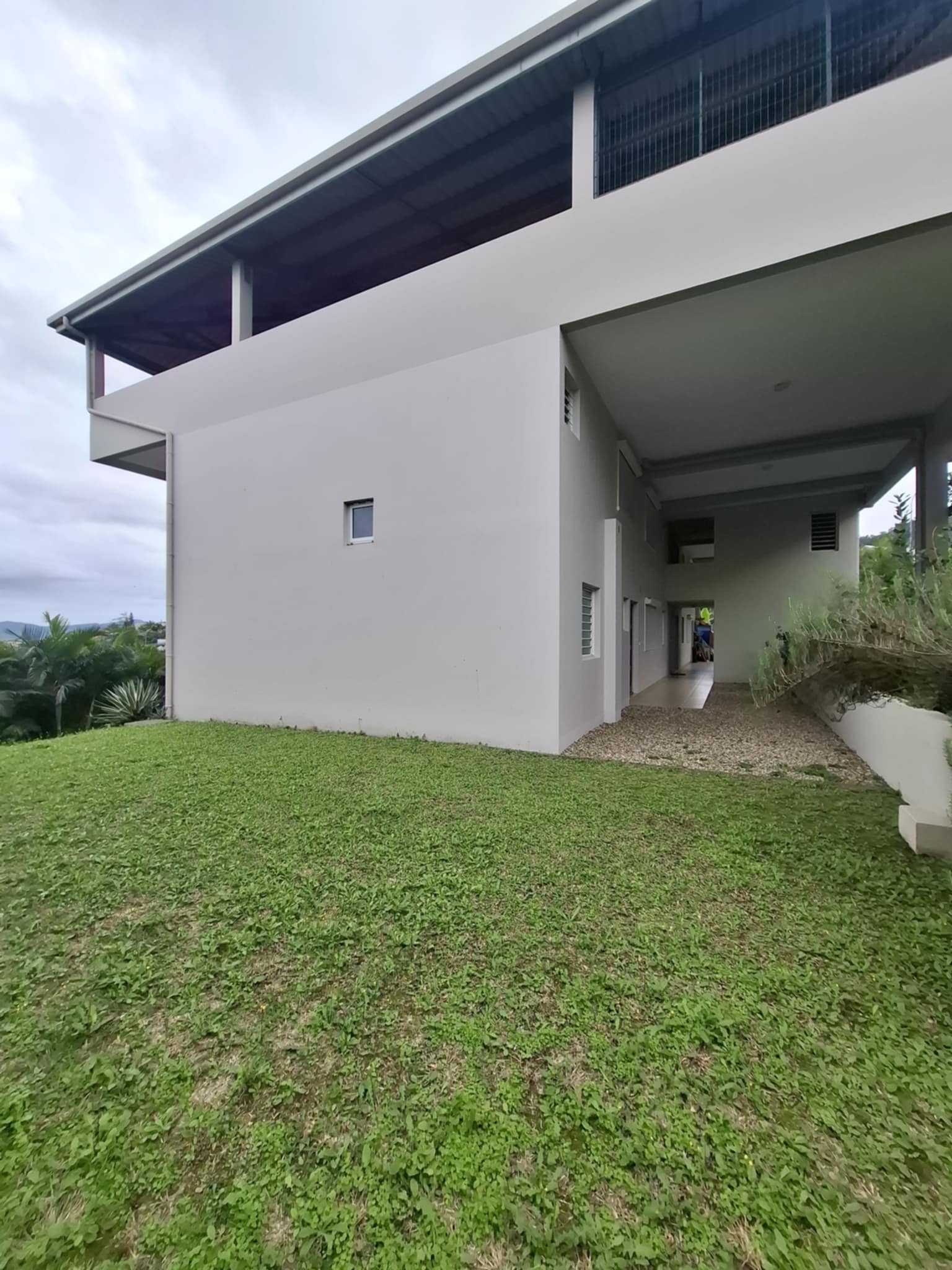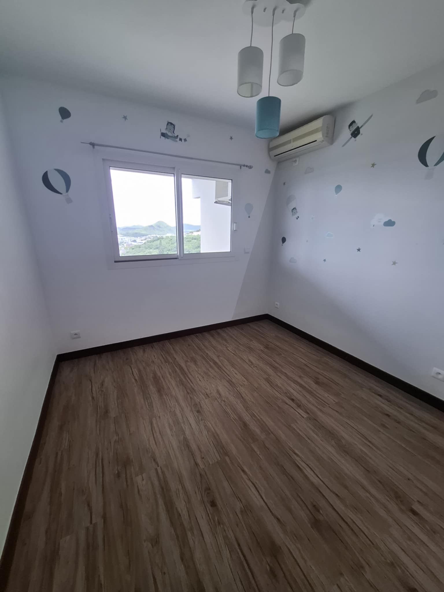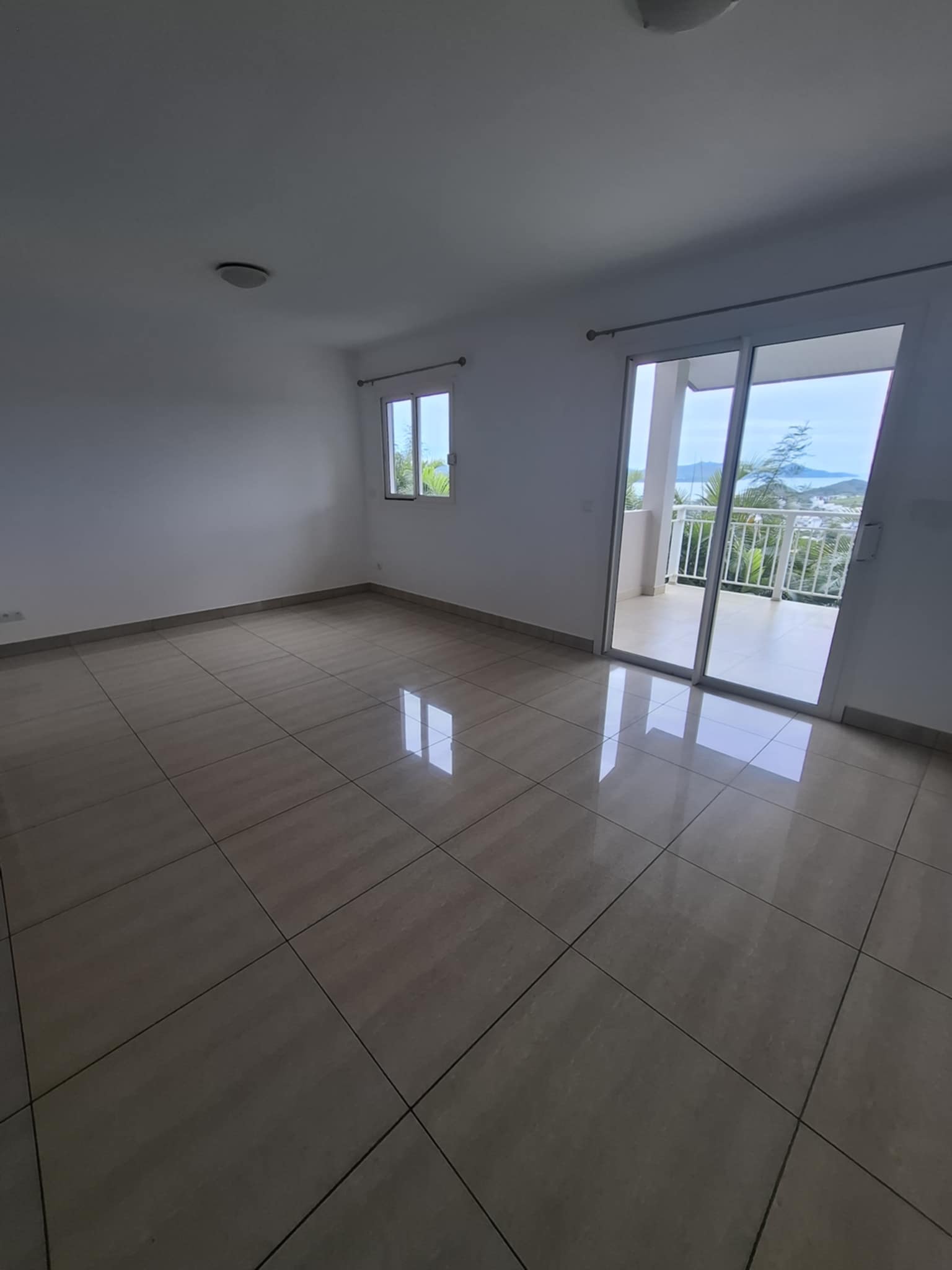 Sur les hauteurs de Koutio, dans une résidence calme et sécurisée appartement de type F4 en R-2 comprenant une cuisine neuve et équipée ouverte sur un spacieux séjour, un dégagement, un WC indépendant, une terrasse avec vue mer dégagée.