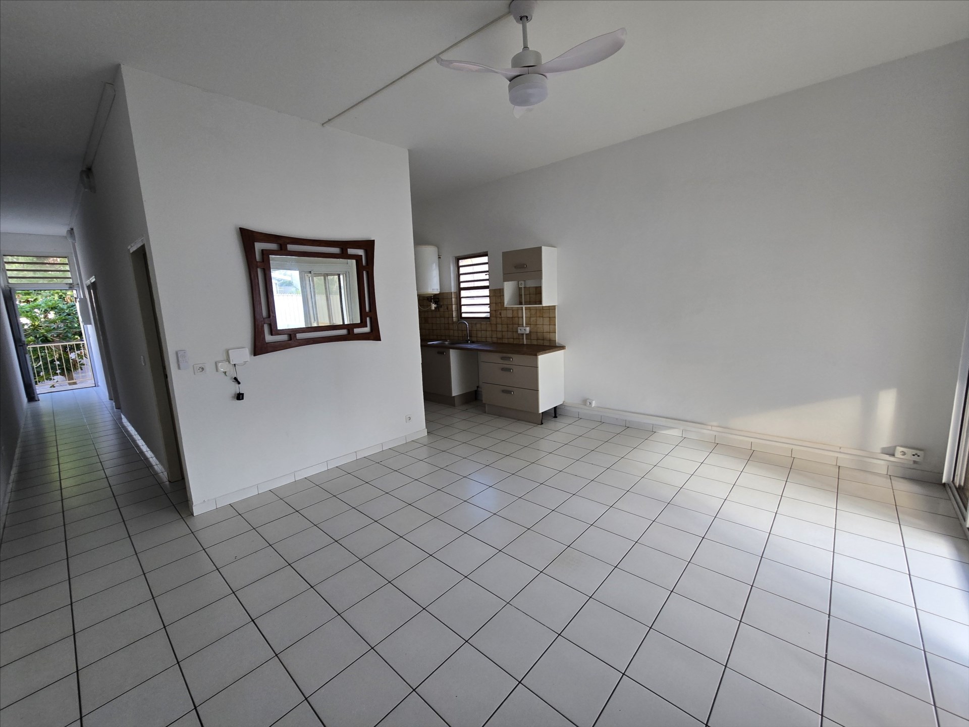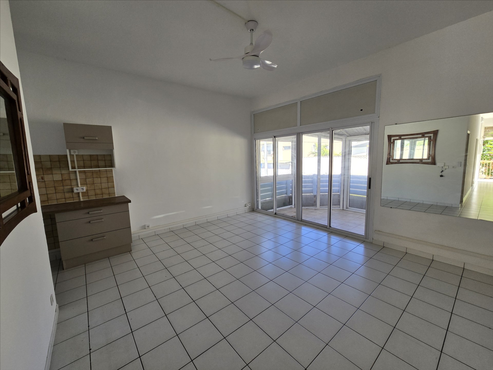 F3 de 69m², séjour avec coin cuisine équipée, deux chambres climatisées avec placards, salle d'eau/wc, terrasse fermée, rue Mercier. Libre!