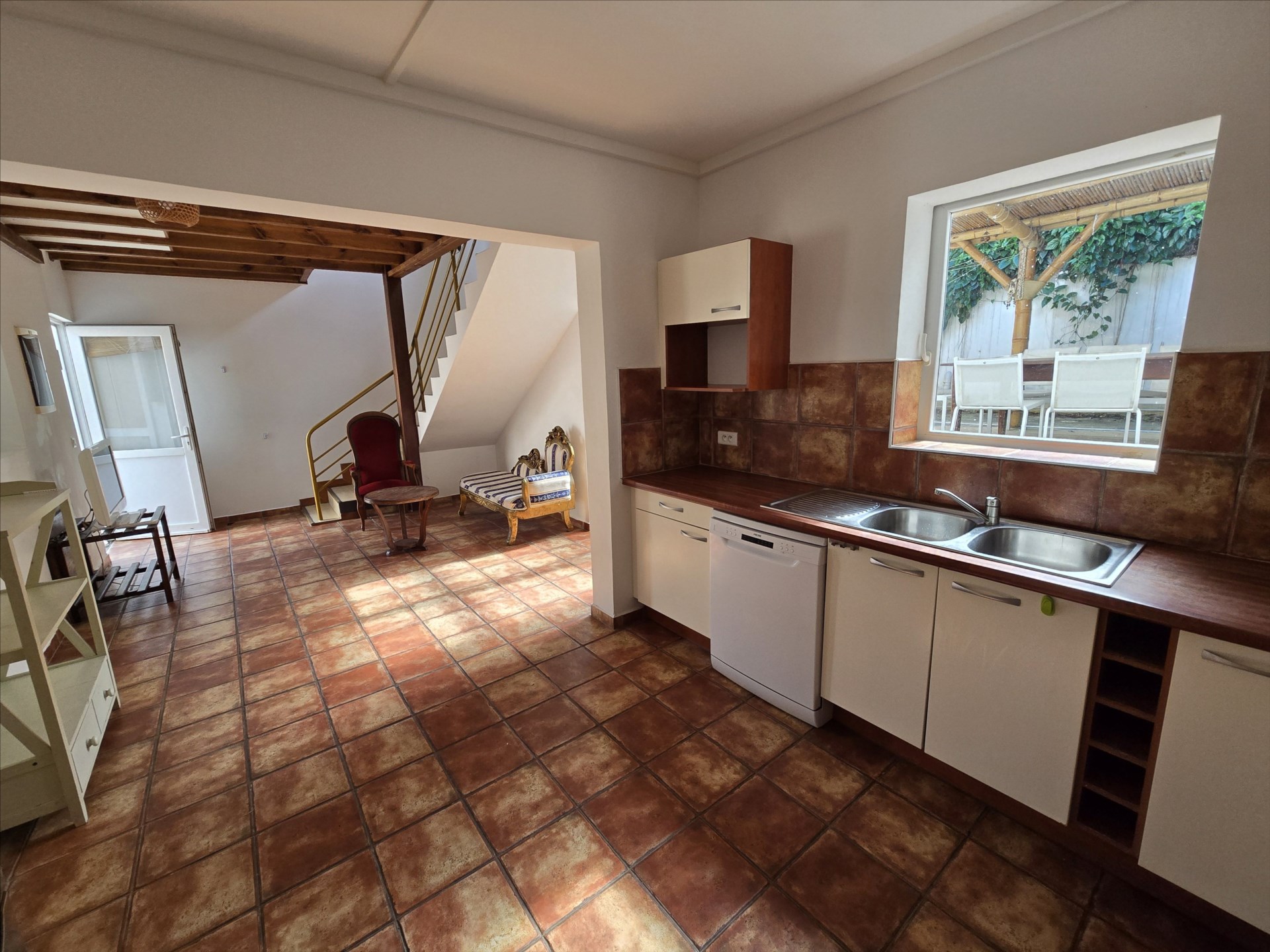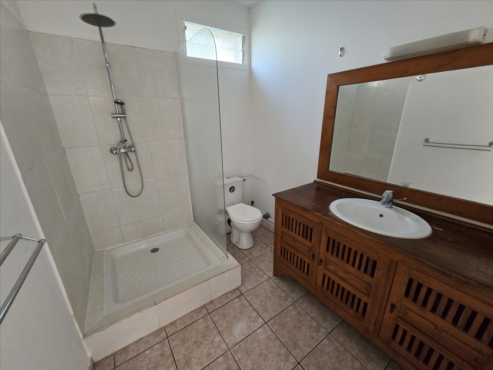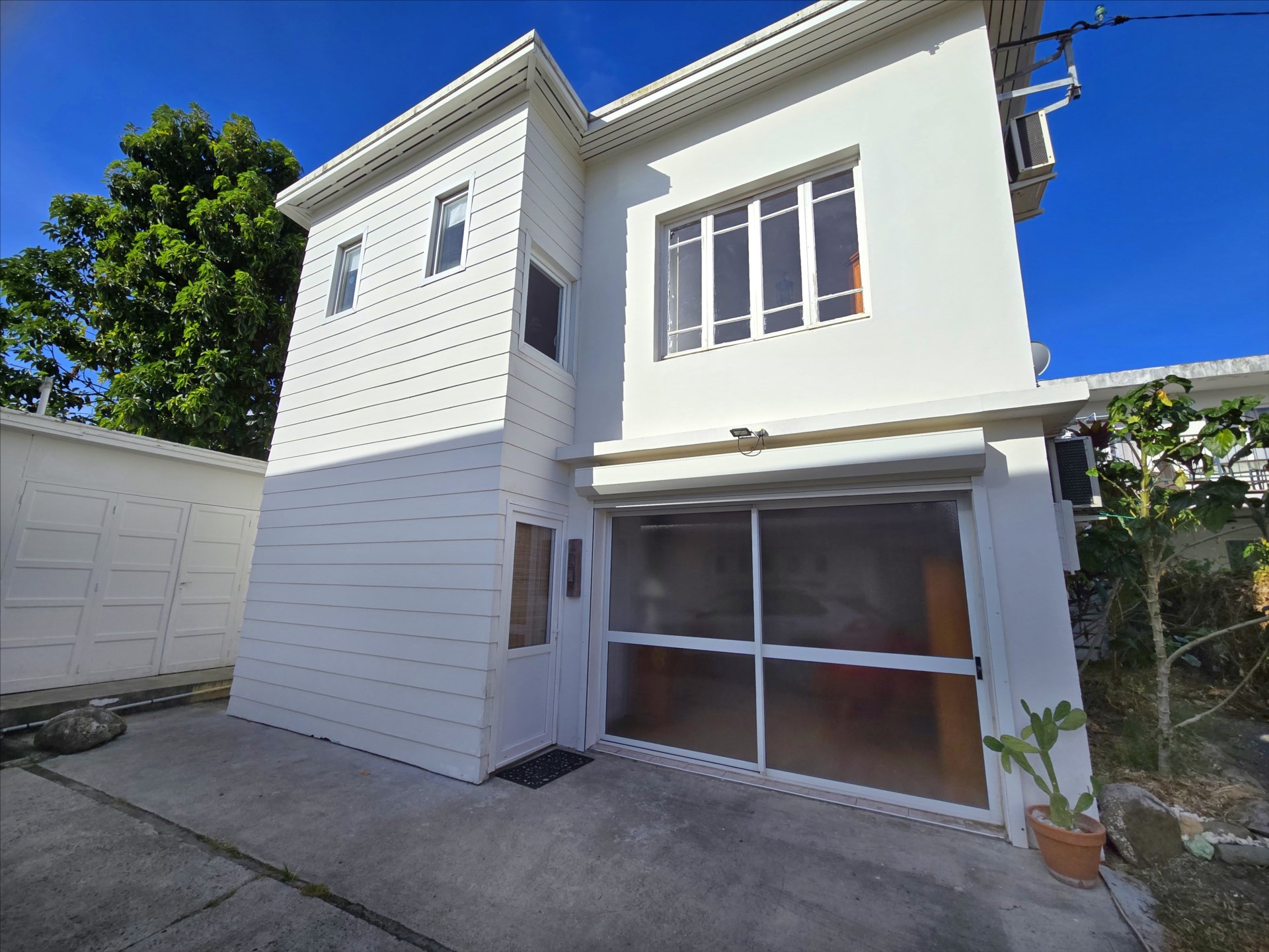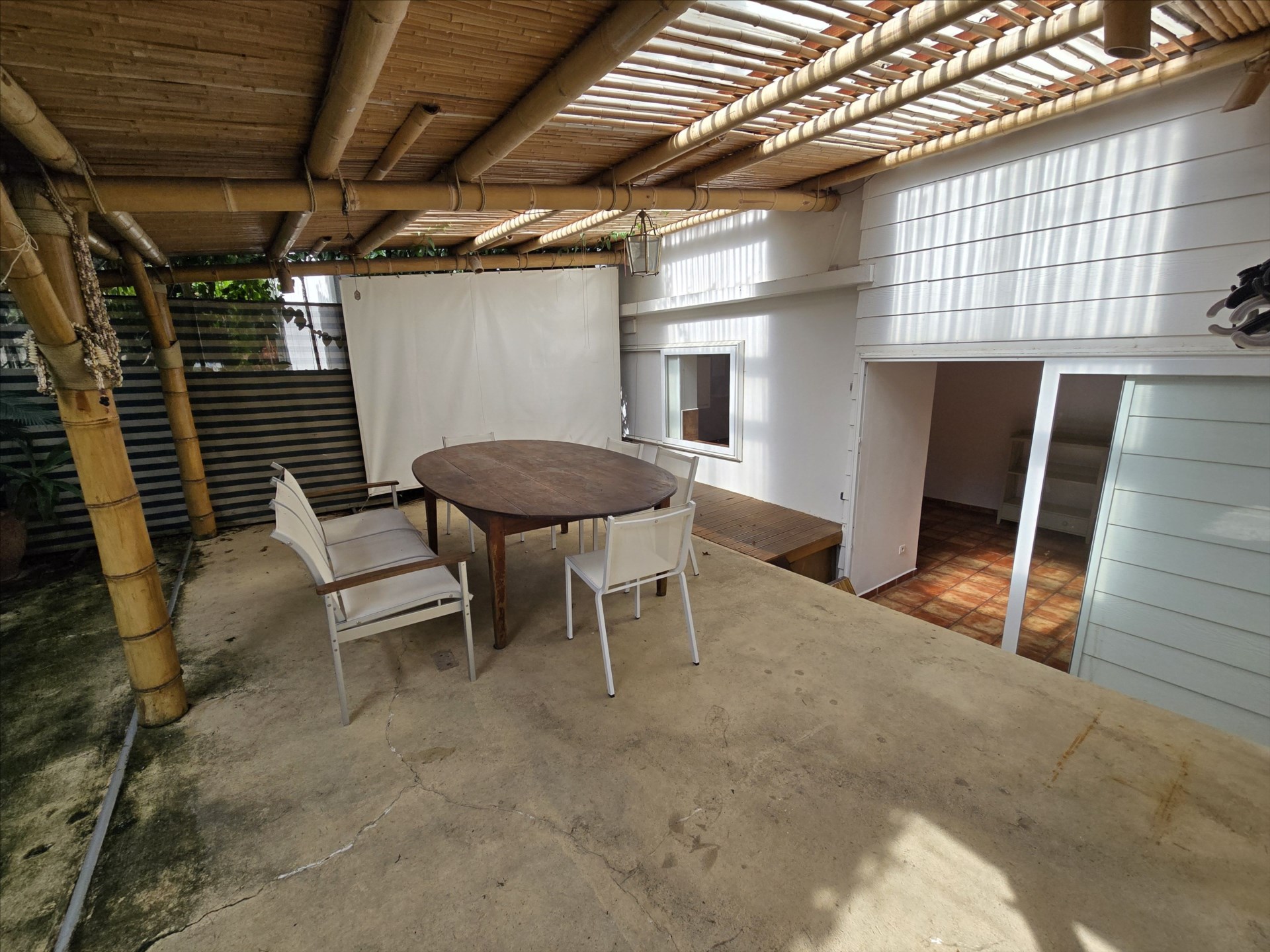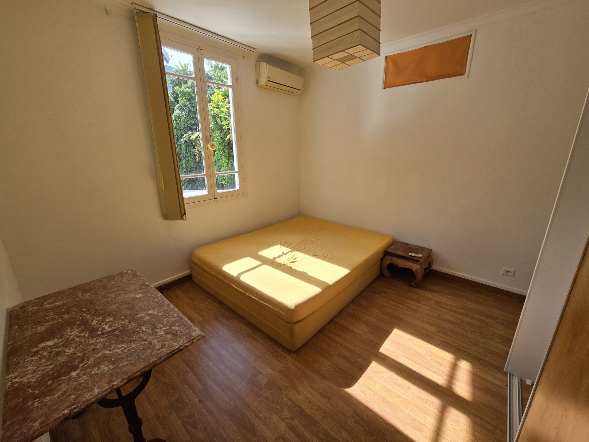 Dans un petit ensemble, villa F4 de charme semi équipée, en duplex, grande terrasse couverte de 40m², salon, cuisine équipée, 3 chambres climatisées, 3 salles de bain, 3 wc, buanderie, calme, parkings, eau comprise, proximité commerces et écoles. 21, rue Charleroi. Bail de 6 mois minimum. Libre!