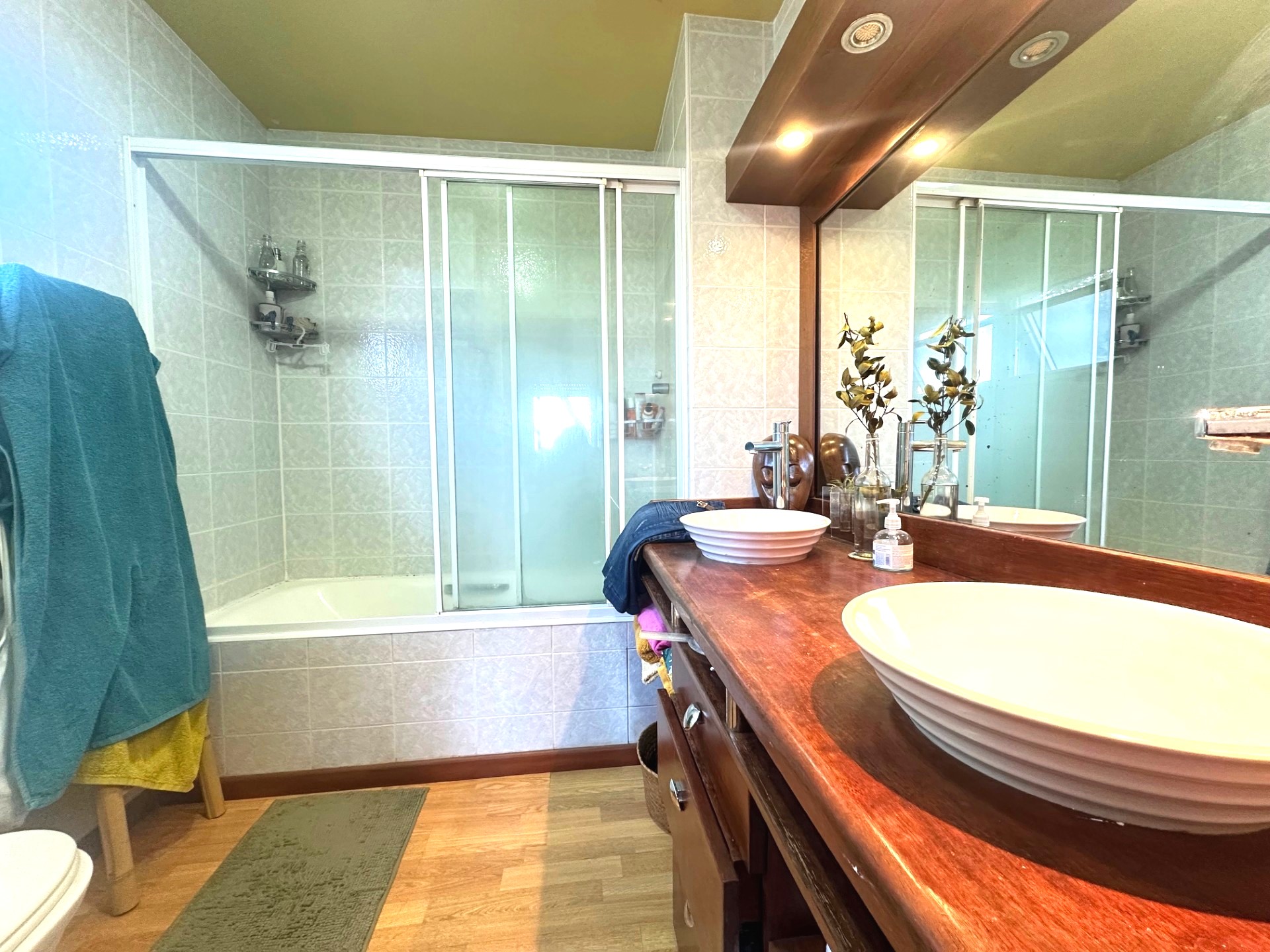 En partie nuit, il se compose de trois chambres climatisées avec placard dont une parentale avec salle de bain et WC, d'une salle d'eau supplémentaire et d'un WC indépendant.