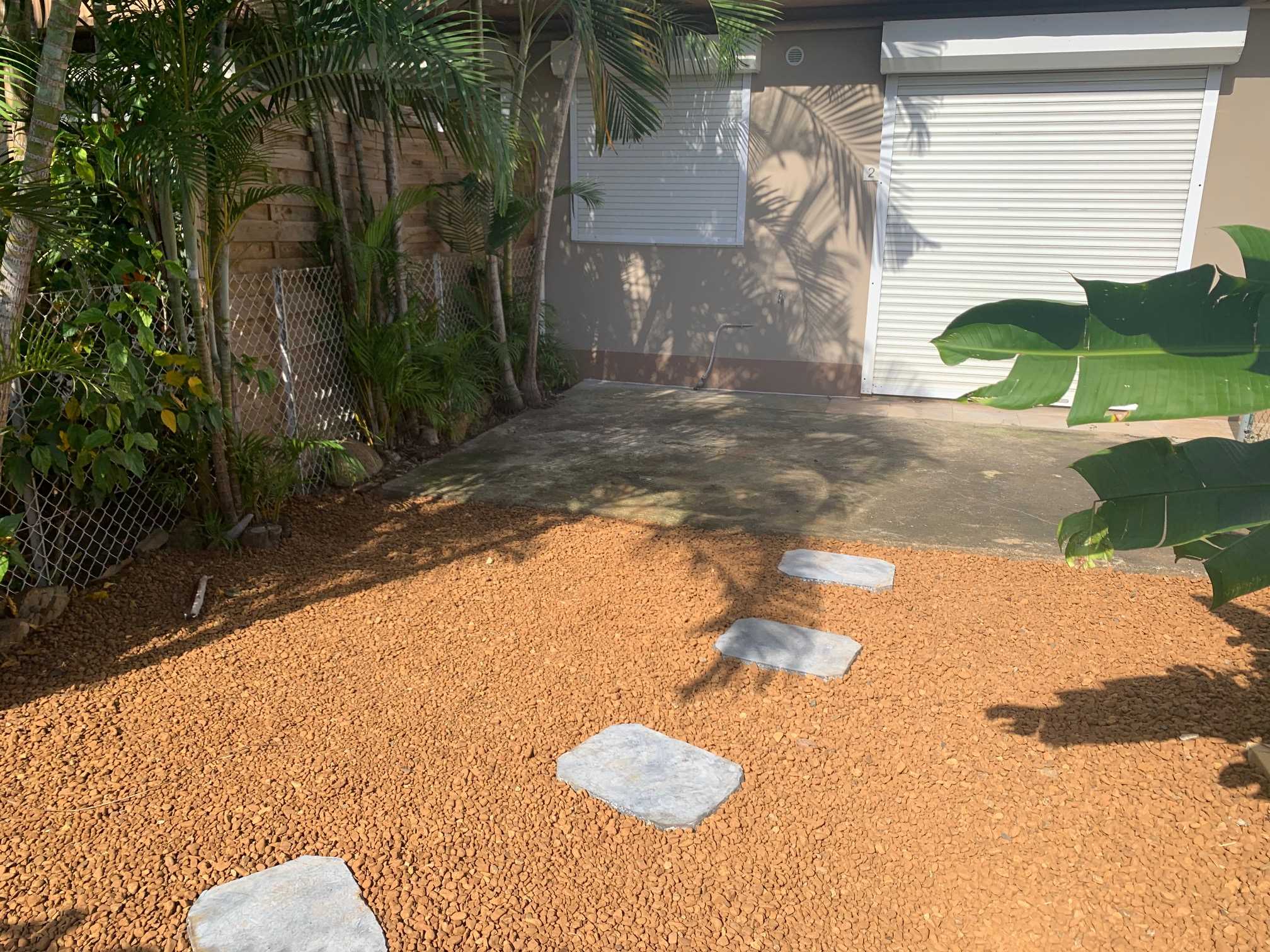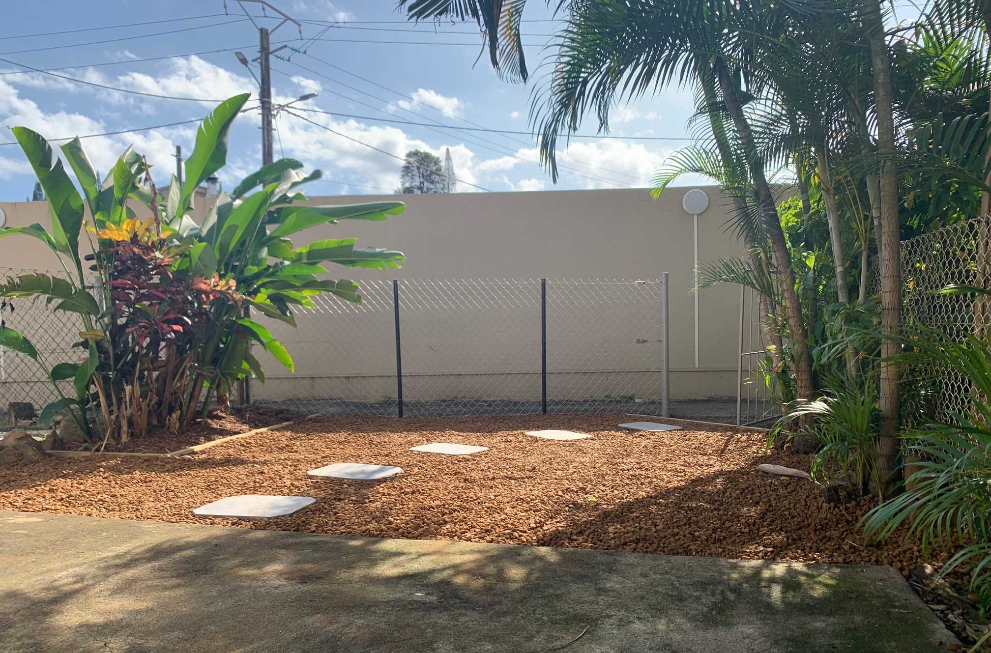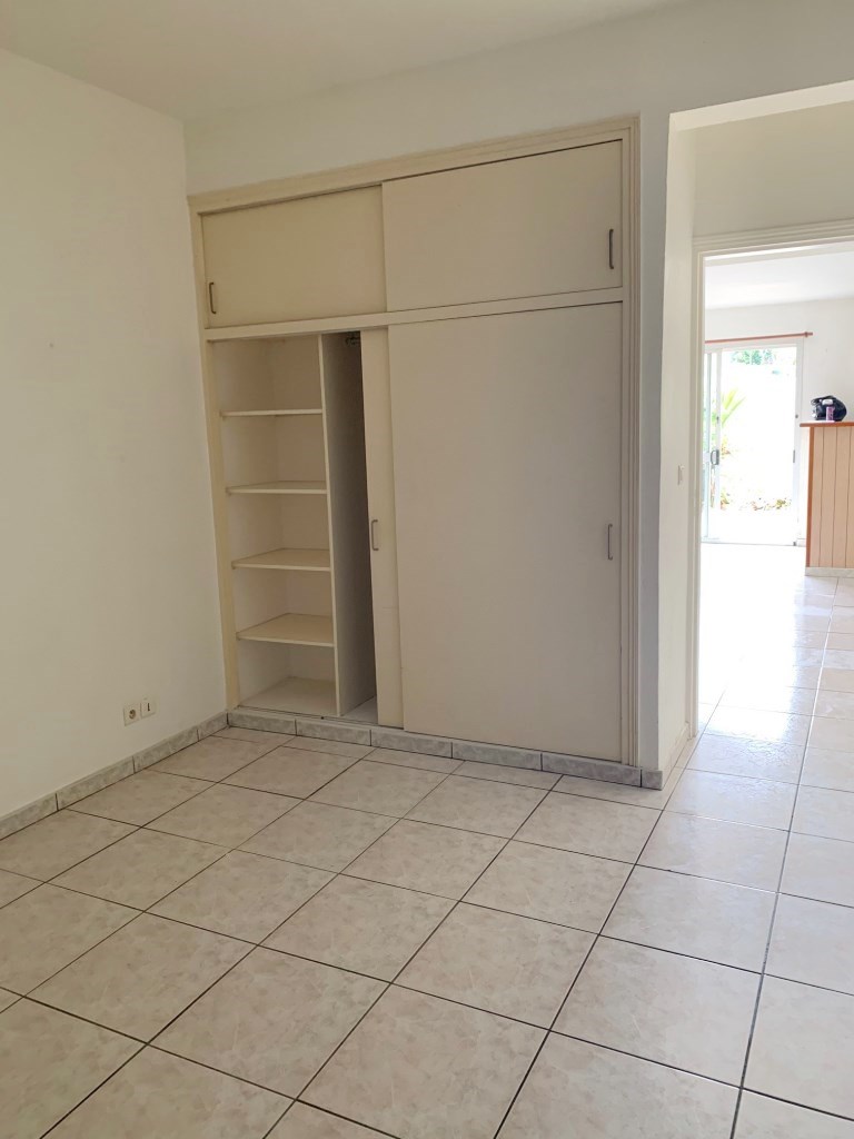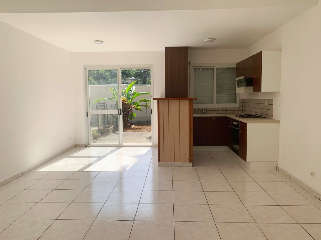 Yahoué, Grand F2 dans petite résidence sécurisée , en rez-de-jardin , beau séjour, cuisine américaine équipée (plaques, hotte, four), chambre avec placard, grande salle d'eau avec wc, 2 parkings, quartier calme.