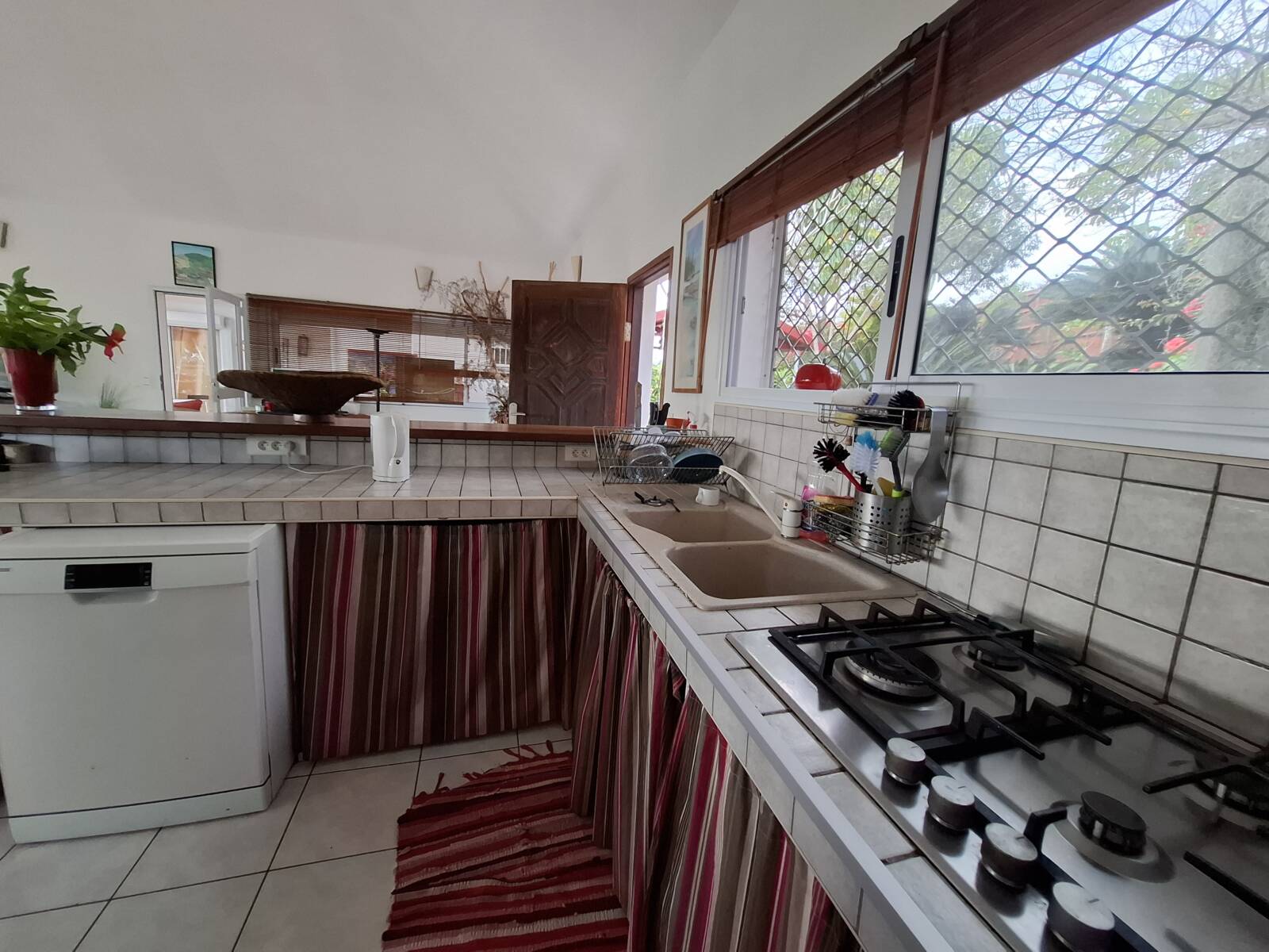 Villa équipée de climatiseurs dans chaque chambre, d’un chauffe-eau solaire de 300 litres, et de volets roulants à chaque baies vitrées.