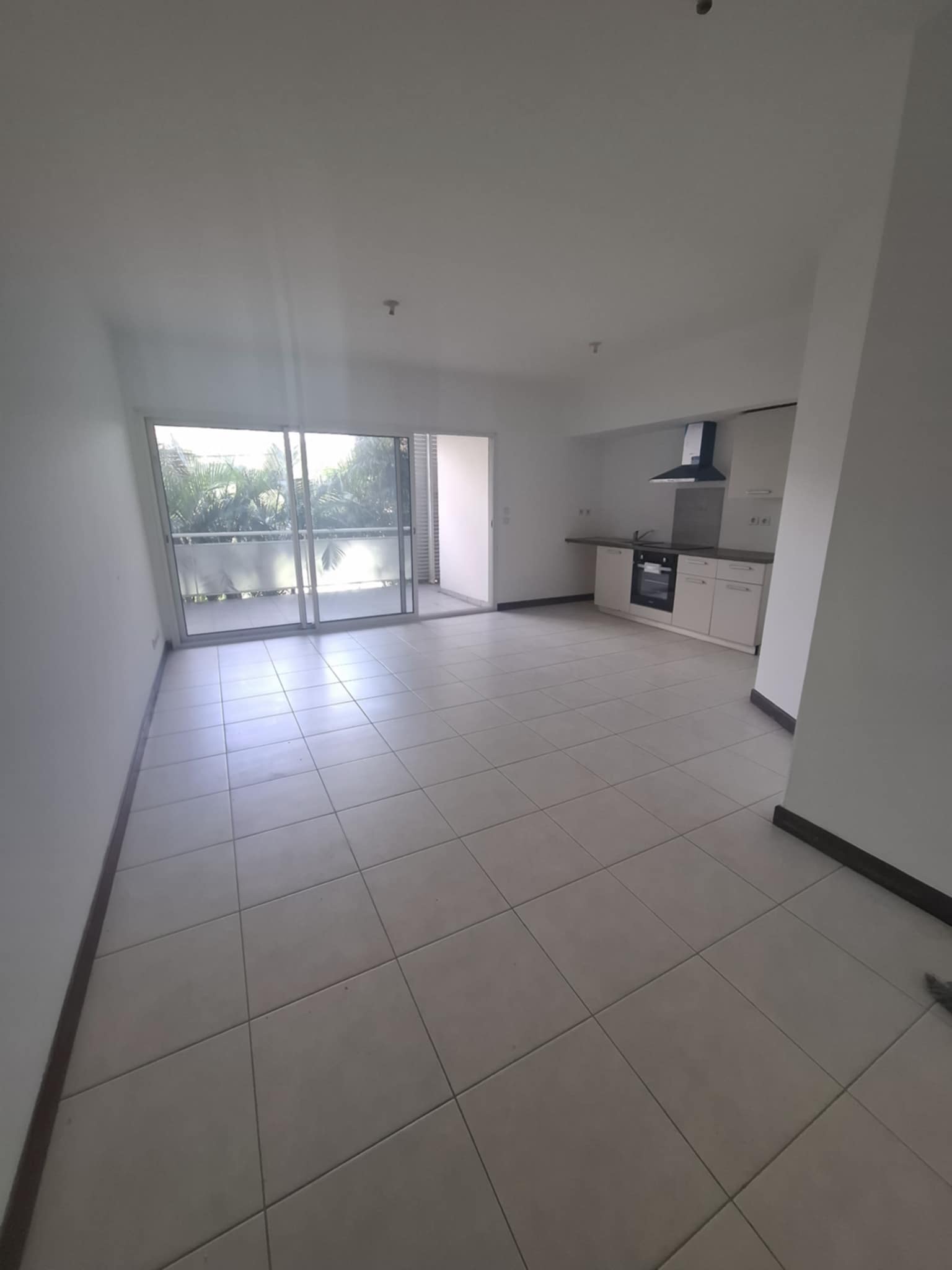 PK7, appartement de type F2 situé dans une résidence sécurisée avec ascenseur comprenant une cuisine équipée ouverte sur séjour, une chambre climatisée avec placards, SDE et WC, une buanderie et une terrasse.