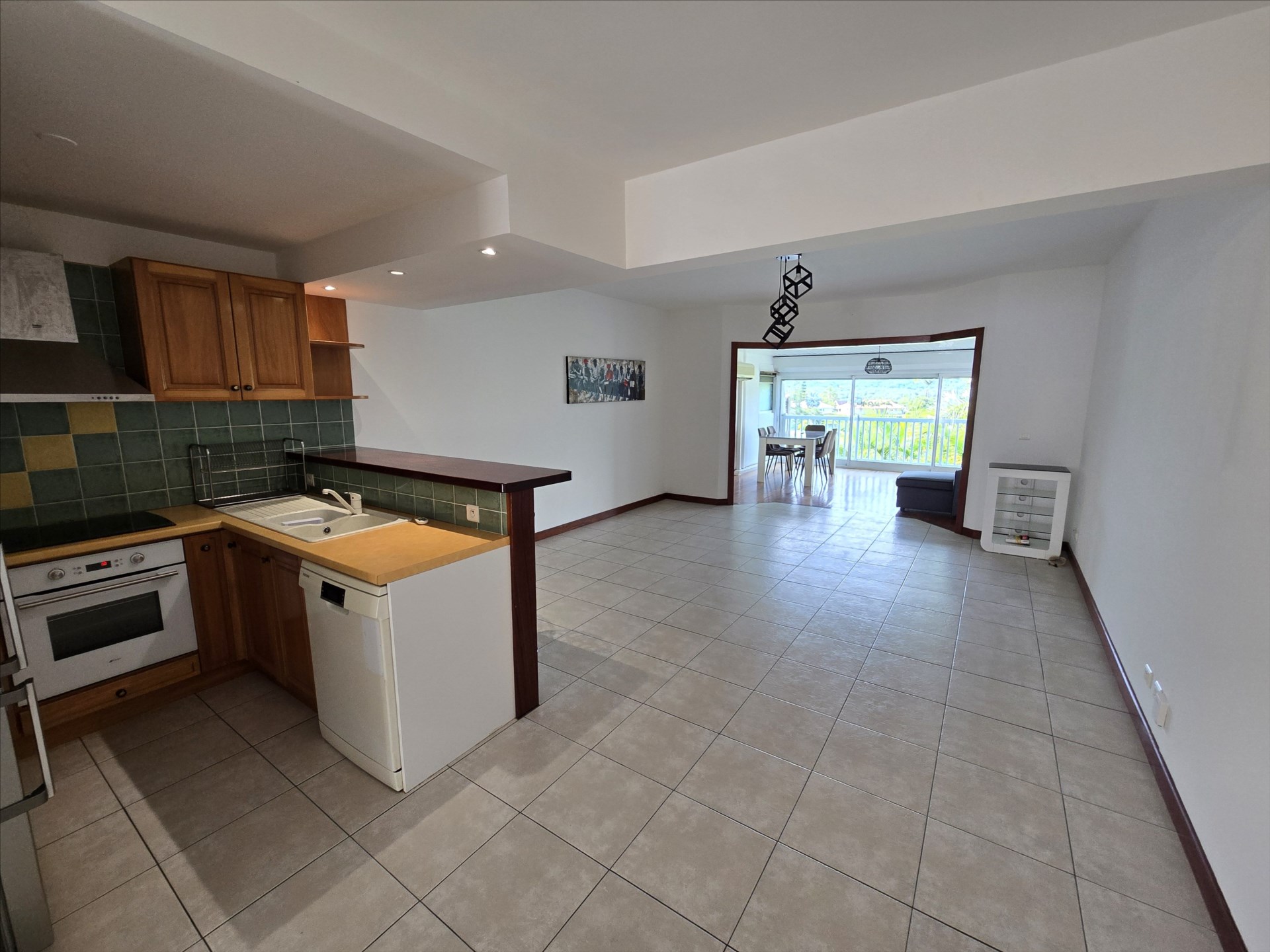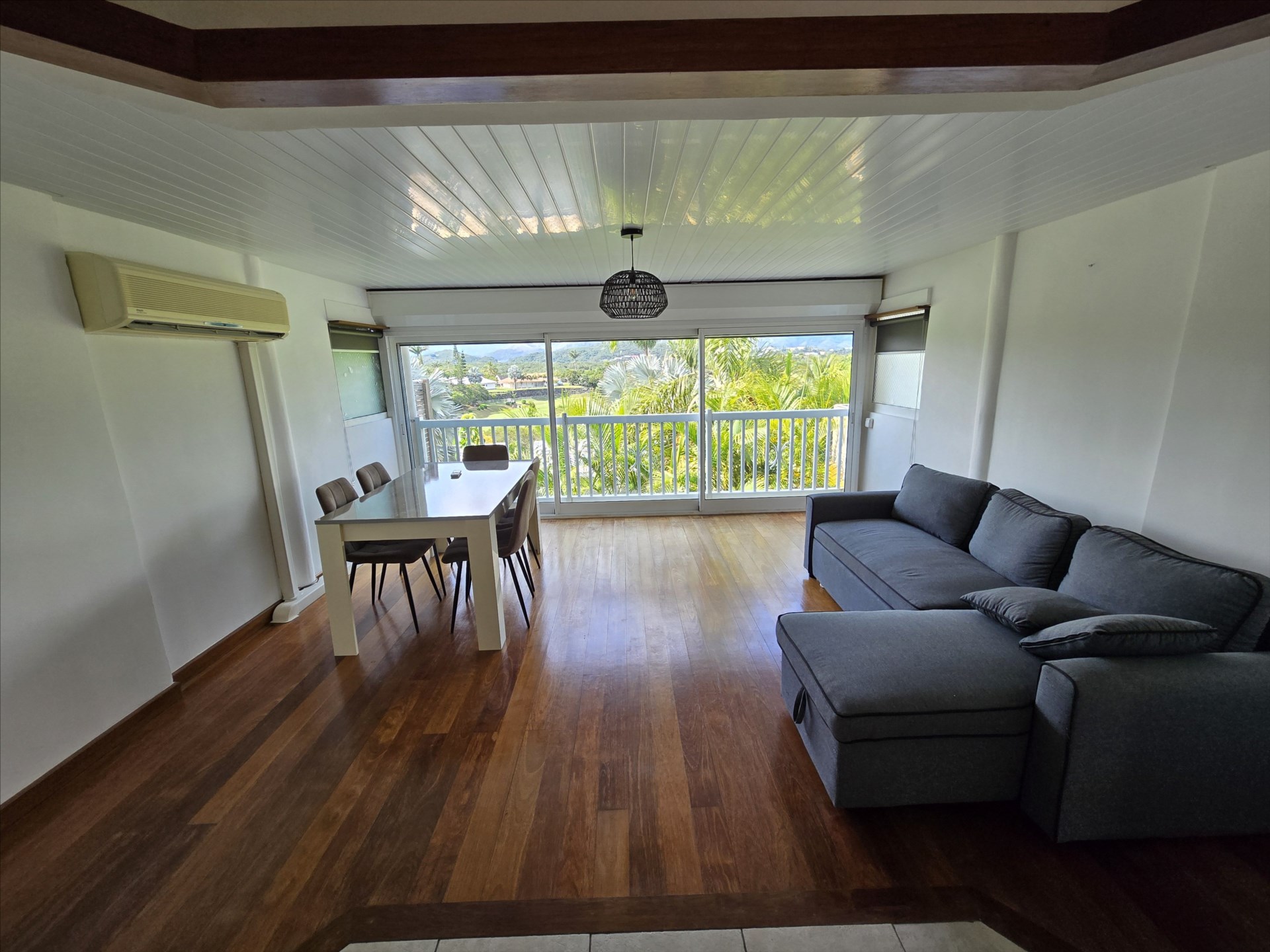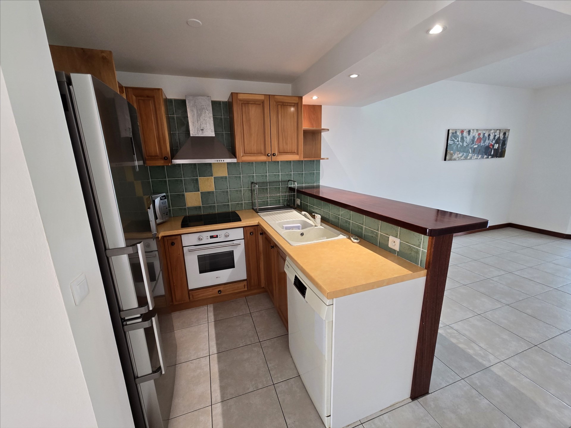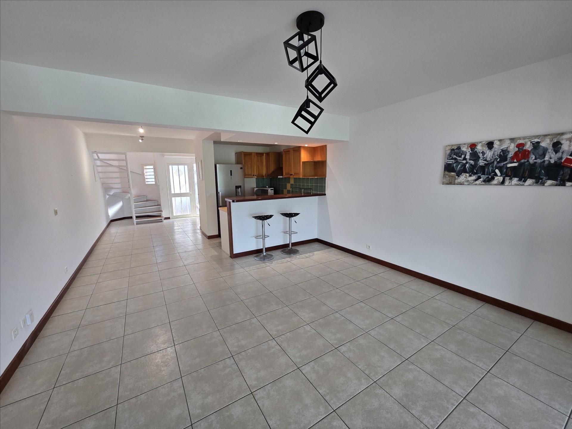 Les Terrasses du golf, au cœur de Tina golf, appt/villa F2 + bureau en triplex de 97m². RDC : entrée, wc, buanderie, cuisine équipée, immense séjour + terrasse fermée. 1er étage : 1 chambre, salle d'eau/wc. 2e étage : bureau ou chambre enfant. Carport 2 places, calme, vue dégagée. Libre