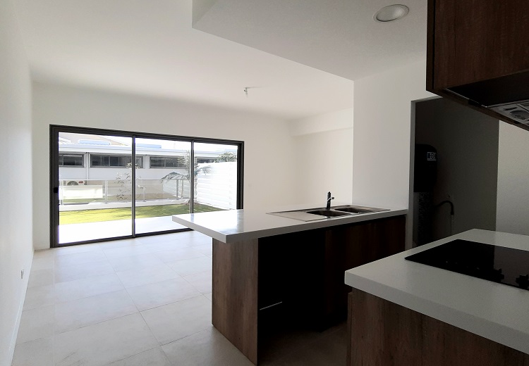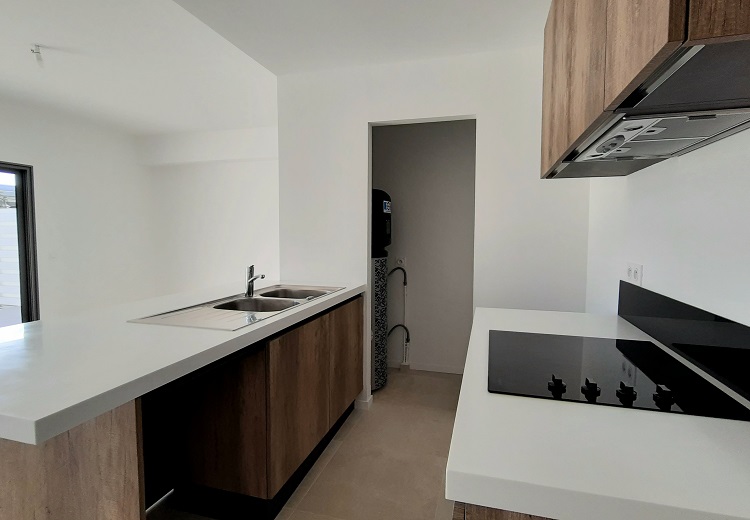 Neuf aux prestations modernes, il est composé d'un dégagement desservant un beau séjour climatisé, ainsi qu'une cuisine de type US, et buanderie attenante. Wc indépendant, chambre climatisée avec dressing ainsi que sa salle d'eau.