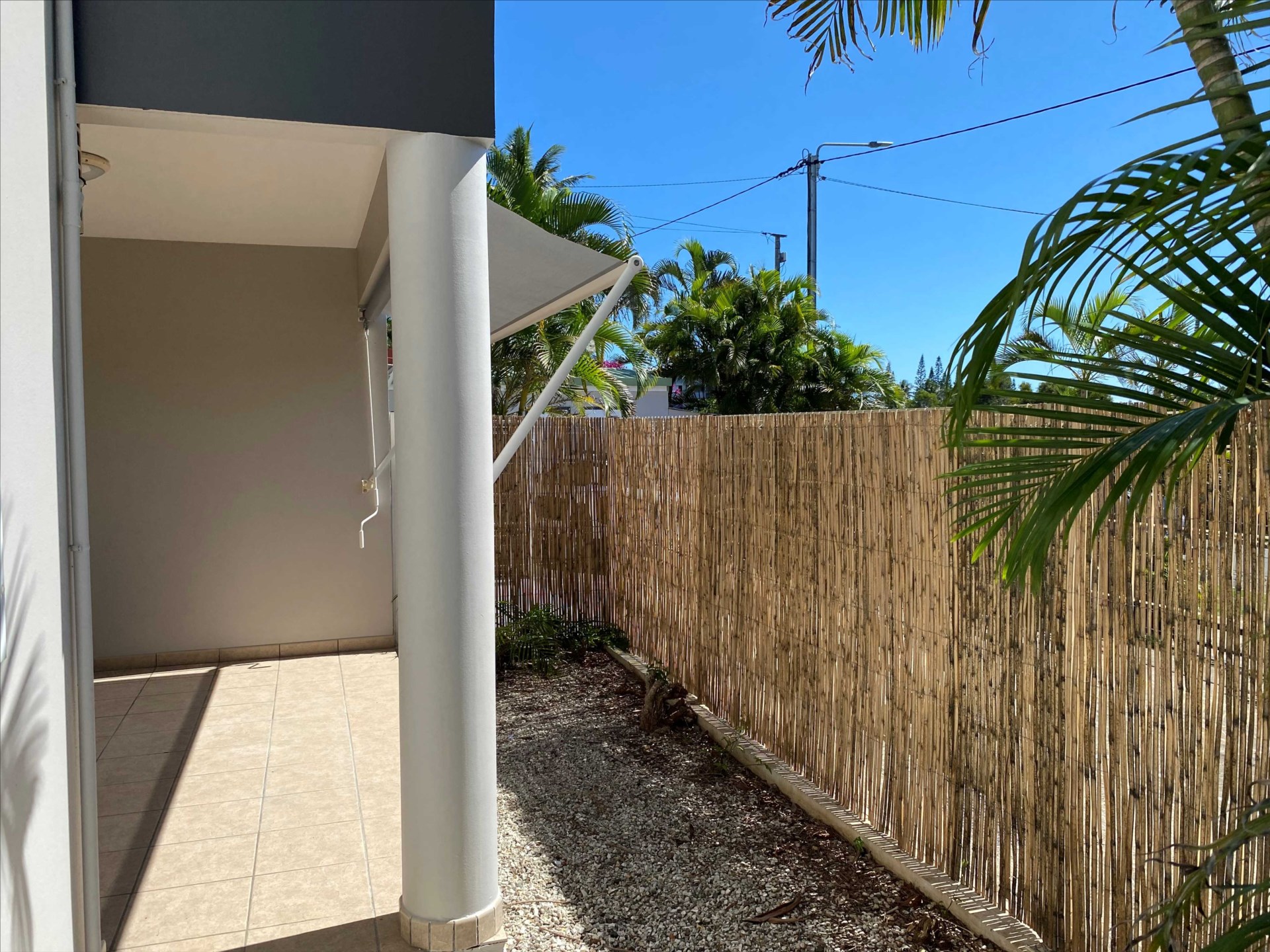 Il se compose d'une pièce principale donnant sur terrasse couverte et jardinet, d'une cuisine équipée, d'une buanderie, d'une spacieuse chambre climatisée avec placard, et d'une salle d'eau avec WC.