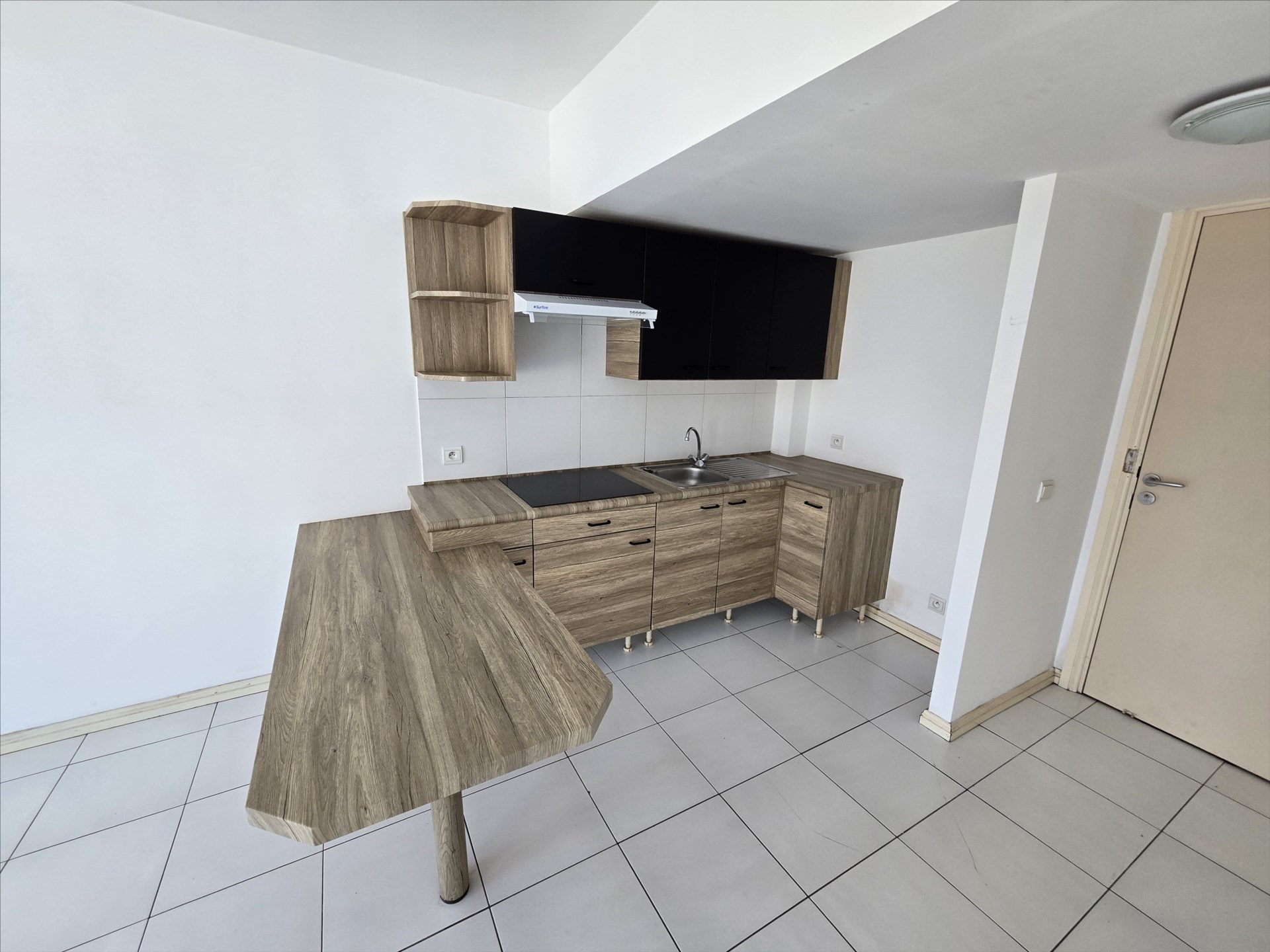 Au 4e étage avec ascenseur, F2 de 49m², séjour/cuisine, chambre climatisée, salle de bain/wc, coin buanderie. Possibilité de louer un parking, 21, rue Duquesne. Libre!