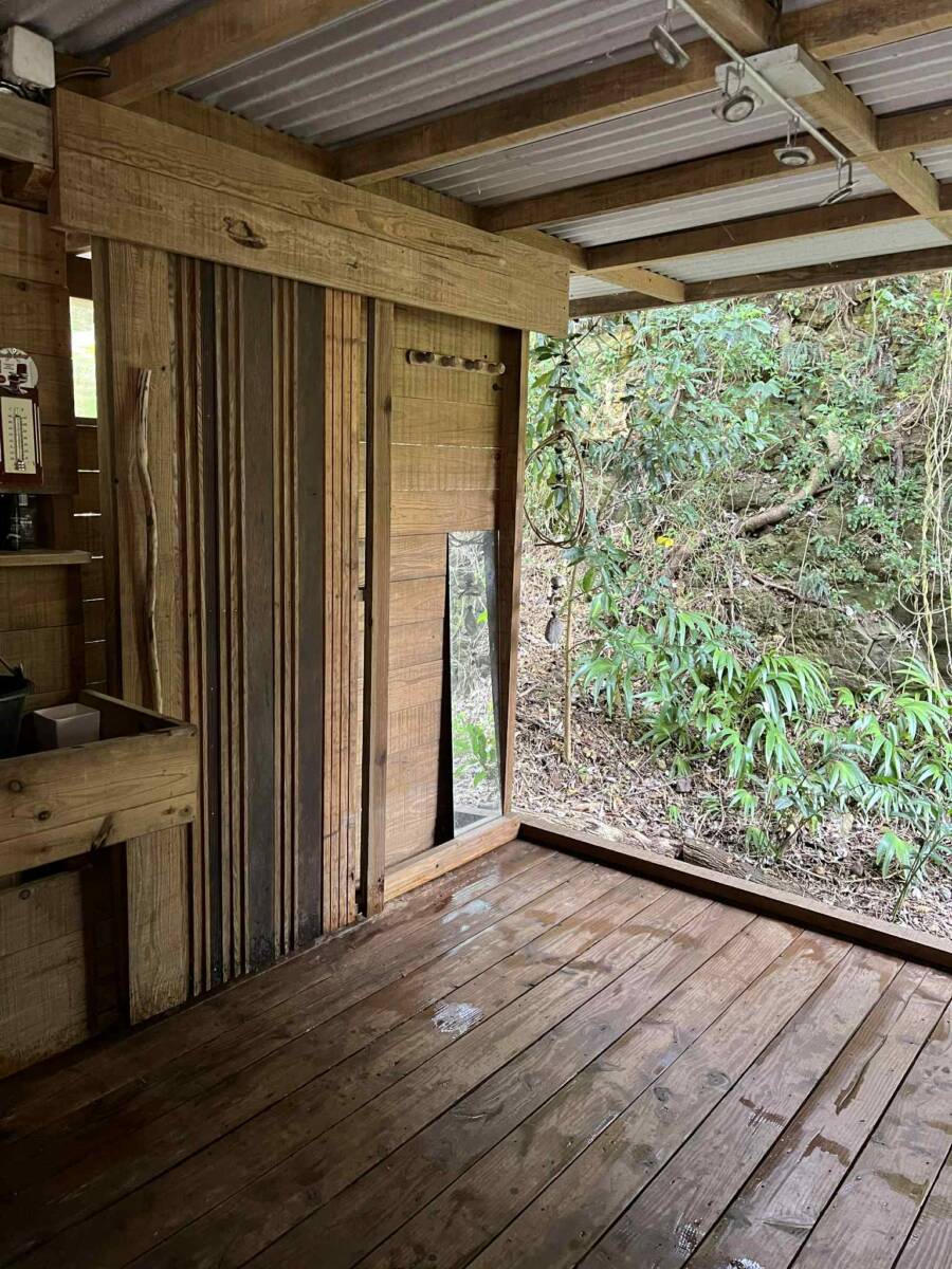 Légèrement en contrebas et proche du creek, 3 parcs à poules grillagés avec poulaillers et matériels d’élevage.
