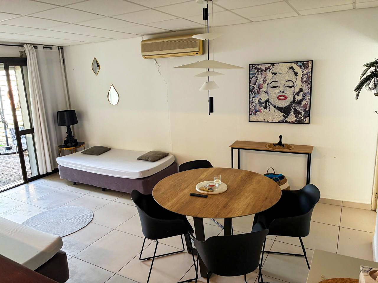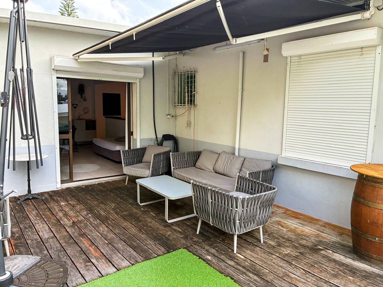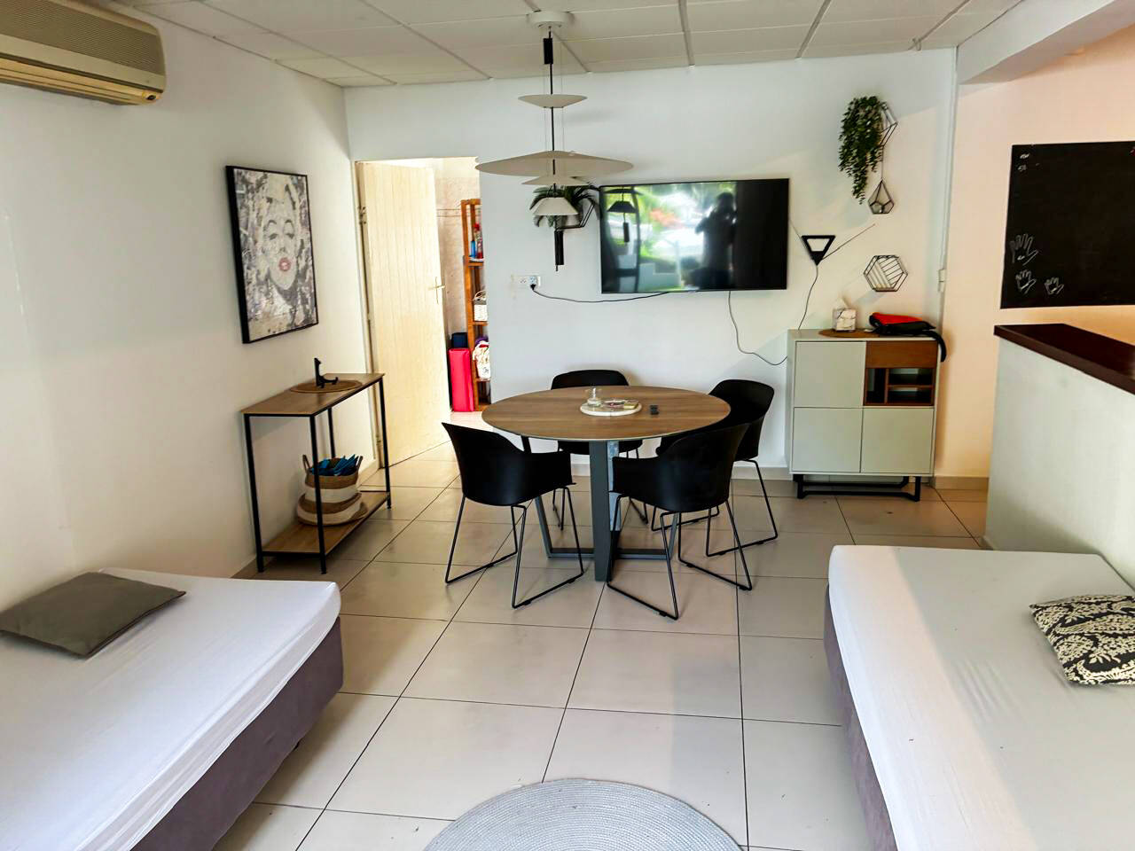 Au RDC : 1 grand studio climatisé indépendant, 1 garage fermé (actuellement aménagé en atelier.