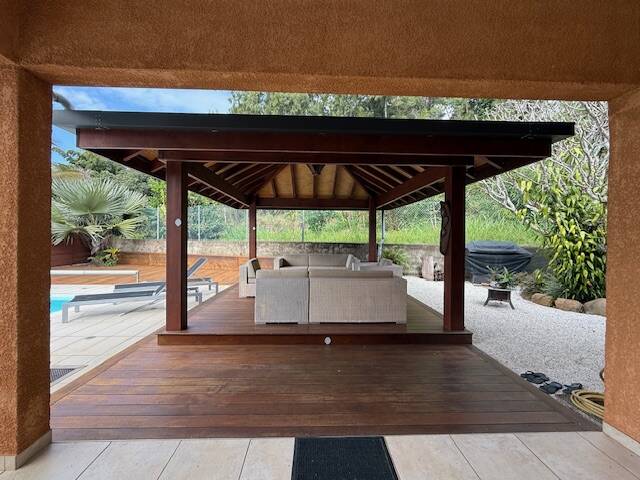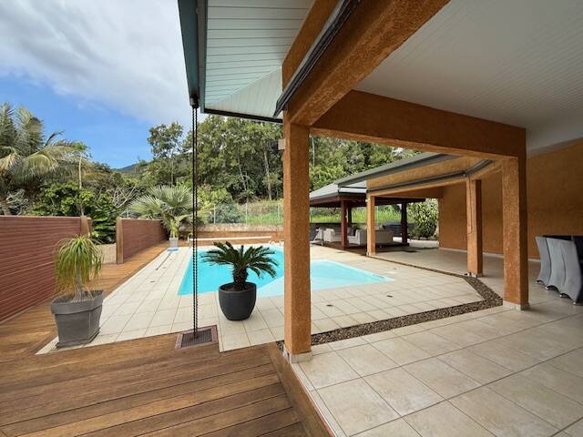 Située en impasse, sur les hauteurs de Koé, sur un terrain de 33 ares arboré et clôturé avec portail électrique, belle et spacieuse villa F4 meublée de 190 m².