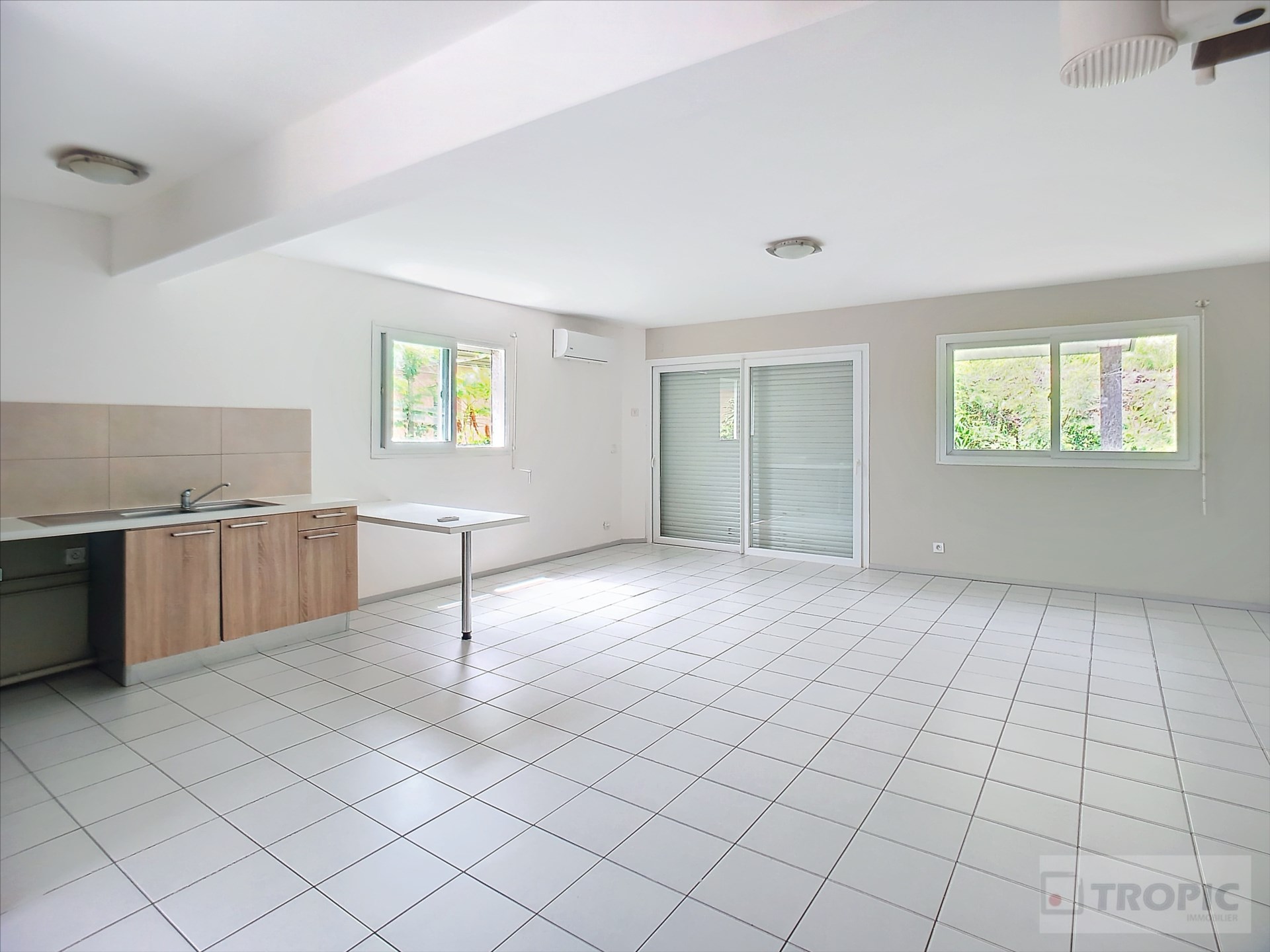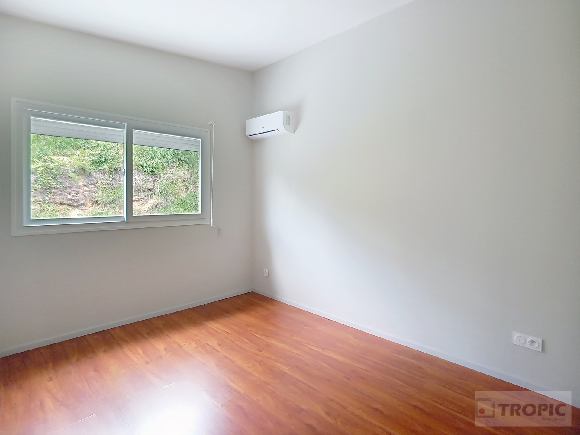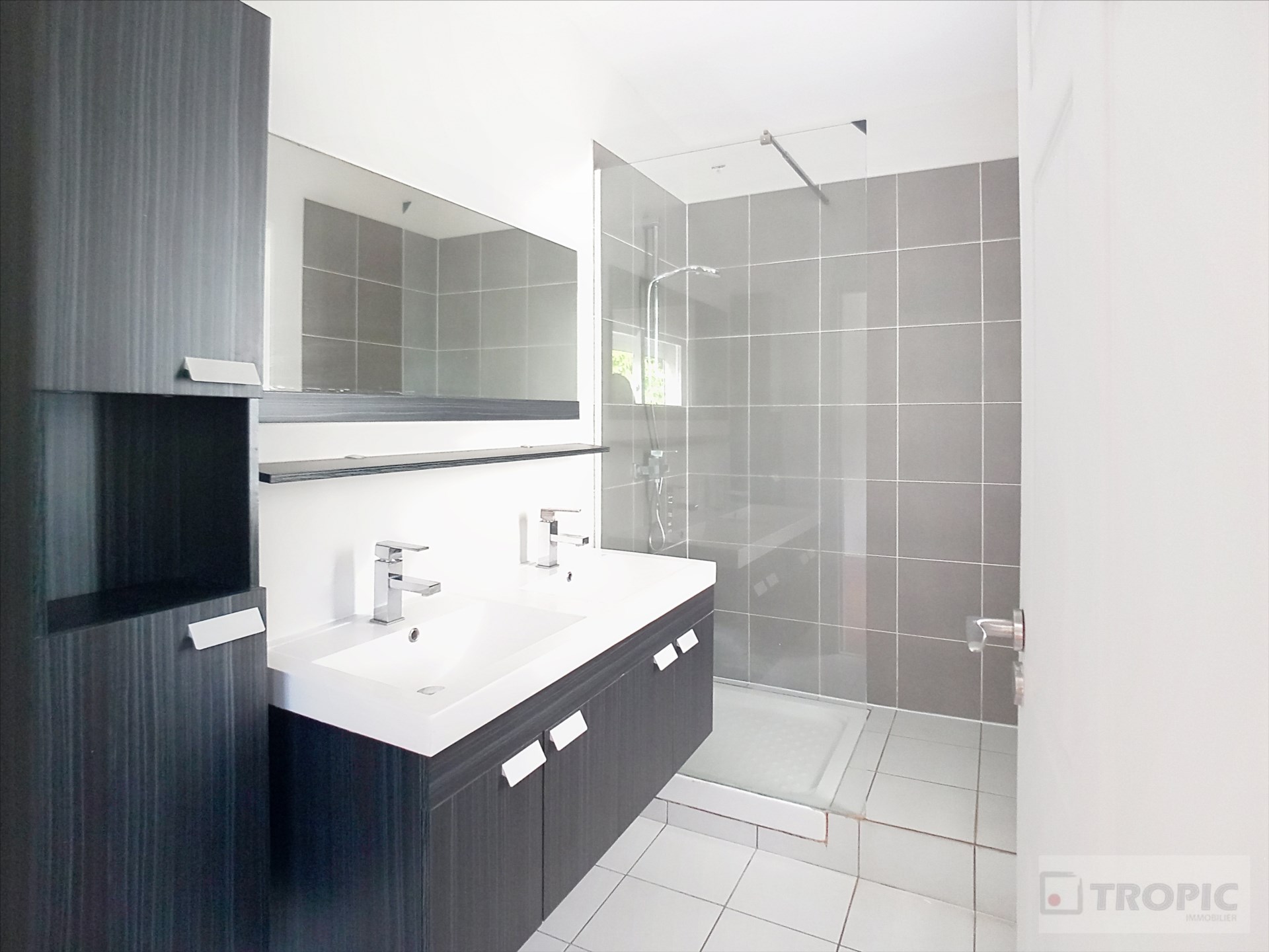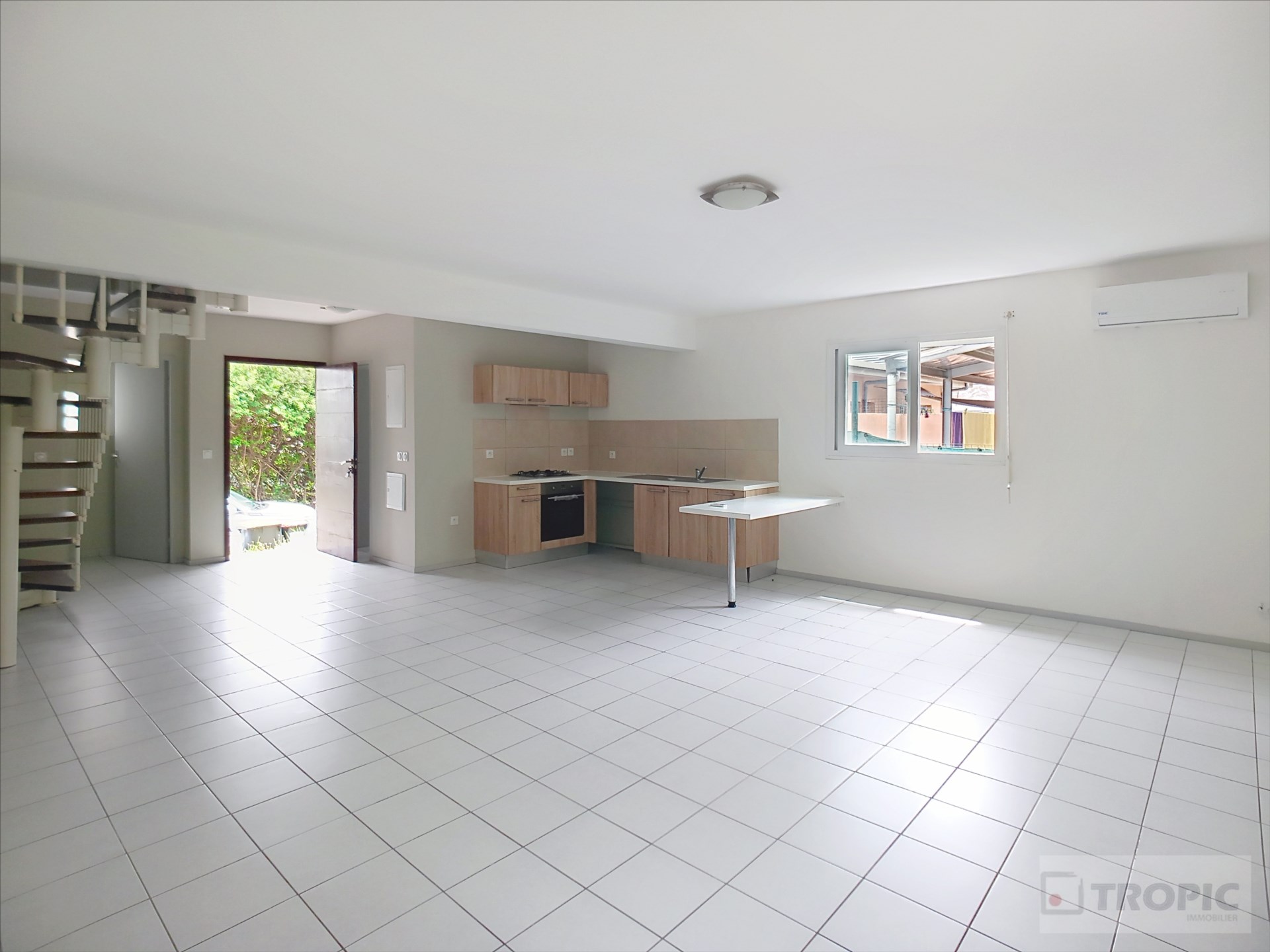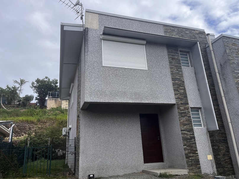 DUMBEA/MER – Villa mitoyenne récente de type F4 comprenant au RDC : un dégagement donnant sur grand séjour/salle à manger climatisé, une cuisine équipée et aménagée (plaque gaz, four et hotte électrique), une buanderie ainsi qu'un WC indépendant.