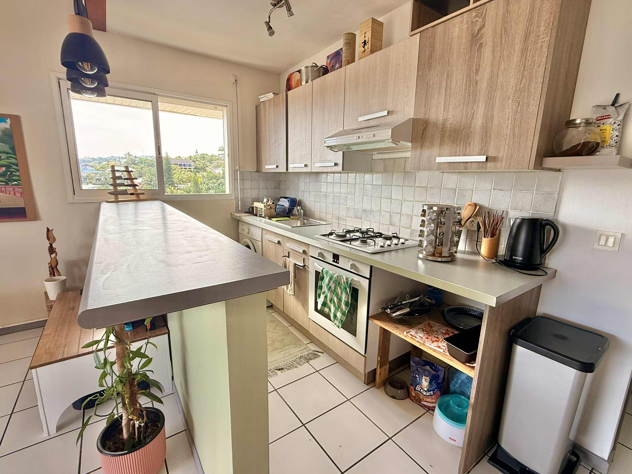 Idéal pour une personne seule, il comprend une cuisine ouverte sur le séjour, équipée d’un four, de plaques de cuisson, d’une hotte, d’un petit réfrigérateur et d’un lave-linge.