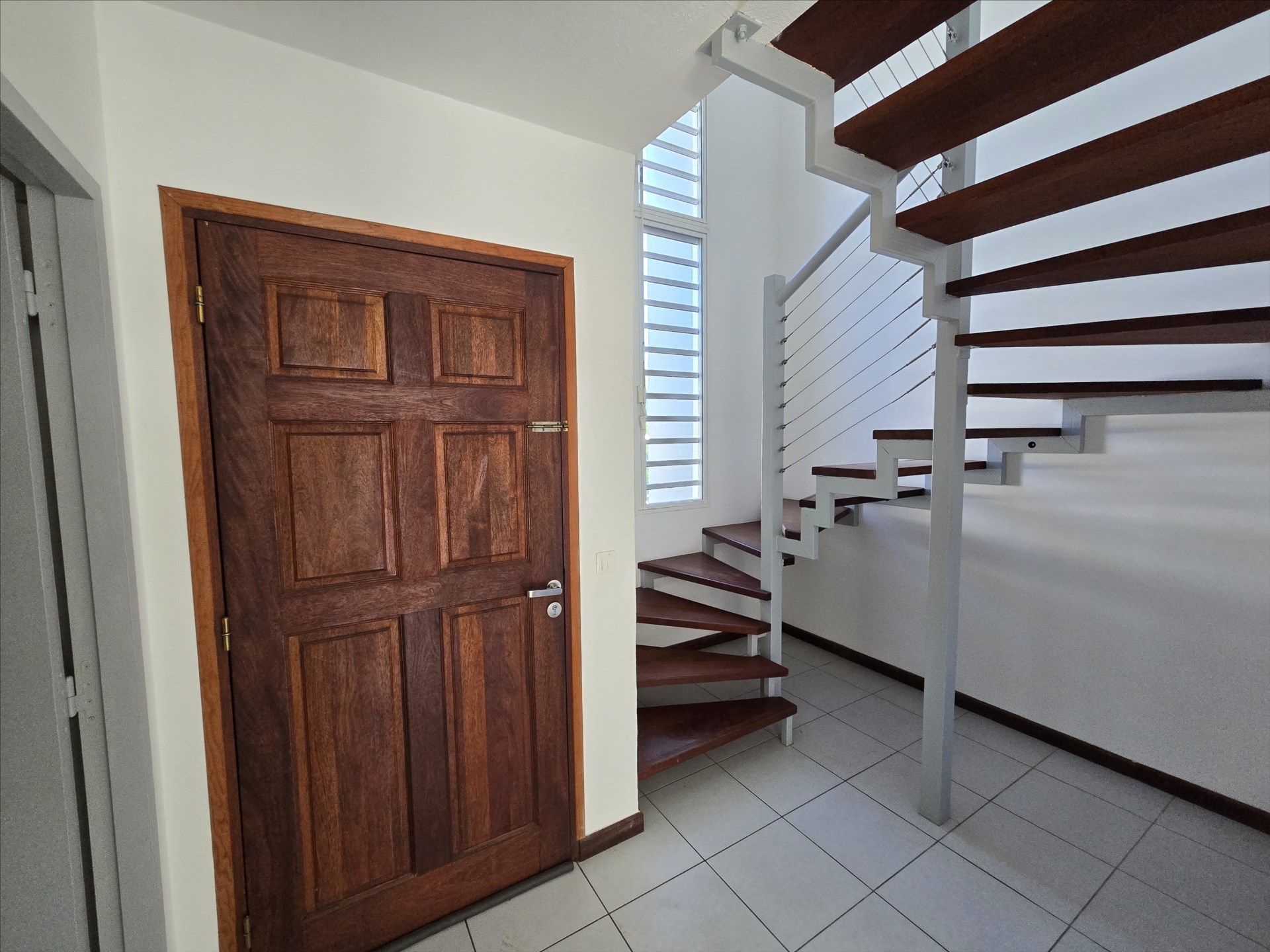 Charmante villa jumelée F5 de 113,25m² en duplex au design moderne. RDC : grand séjour avec cuisine équipée, buanderie, wc. Etage : 4 chambres avec placard dont 1 parentale avec salle d'eau, wc, salle d'eau. Belle terrasse couverte de 27,95m², jardin privatif de 160m², villa bien sécurisée, installation photovoltaïque donc pas d'électricité à payer, grand abris de jardin, 2 places de parking. Libre. A saisir!