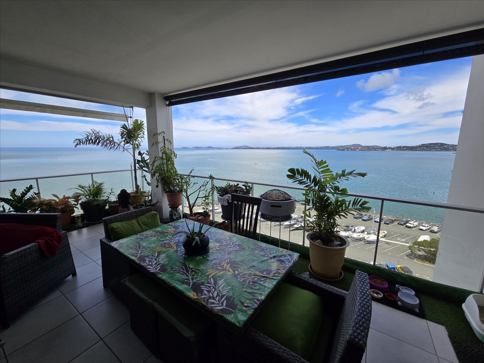 Au 9e étage, avec une vue mer époustouflante, F4 de 96,95m² + terrasse de 30m², grand séjour avec cuisine équipée, 3 chambres dont 1 parentale, 2 salles d'eau, 2 wc, buanderie, ascenseur, places de parking, 1 cellier. Actuellement loué.