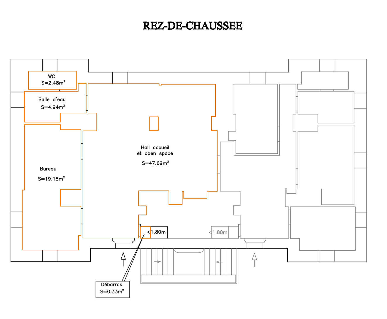– 1 bureau de 19,18 m² et un grand open-space de 47,69 m²