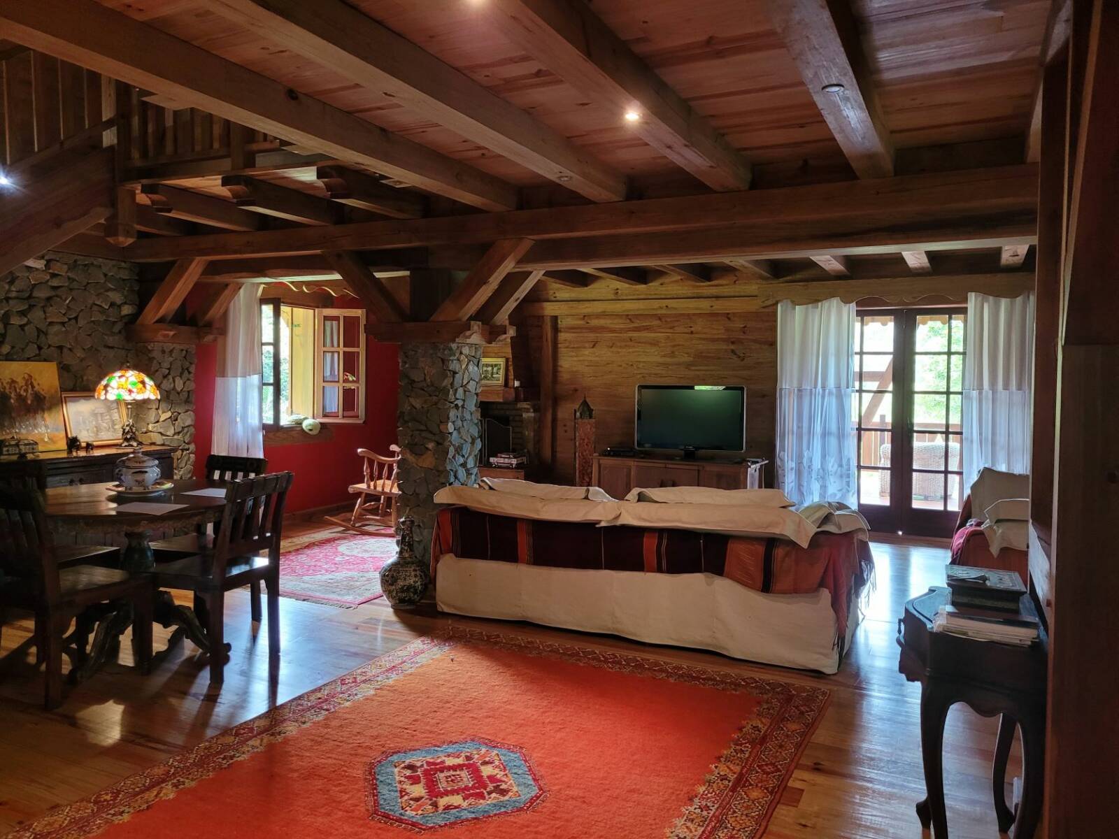 Le charme et l’authenticité de ce superbe chalet F4 revêtu de bois et de pierres sèches, de parquet en kohu, réalisé par un compagnon, se compose d’une spacieuse pièce de vie comprenant une cuisine aménagée et équipée ouverte sur le séjour avec cheminée, d’une buanderie et d’un wc séparé. Un carport attenant ouvre sur la cuisine. L’étage réservé en partie à l’espace nuit se compose d’un dégagement, d’une salle de bain, d’un wc séparé, de 2 chambres dont une de 33 m² et d’une 3ème chambre qui fait actuellement office de bureau.