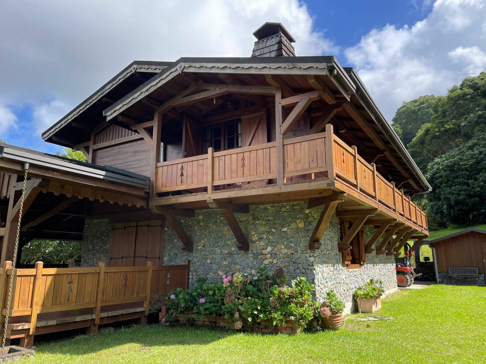 Farino, route du Parc des Grandes Fougères, sur une propriété arborée et viabilisée de 5Ha72a80ca l’allée royale vous mènera à un magnifique chalet d’une superficie de 240 m² au sol.