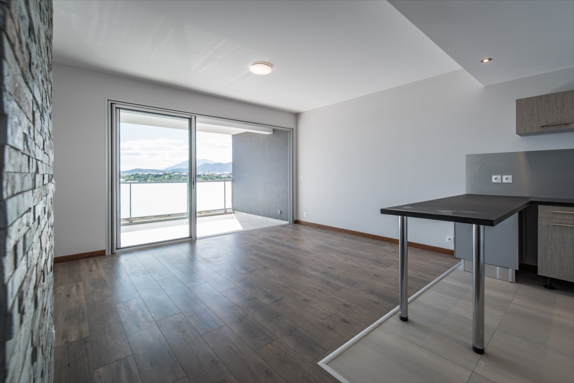 ✨ Il se compose d'une cuisine US semi-équipée (plaque vitrocéramique, four, hotte, emplacement lave-vaisselle), un séjour lumineux prolongé par une terrasse couverte avec vue dégagée sur la baie d’Apogoti. Une chambre climatisée avec dressing et salle d’eau à l’italienne, une buanderie indépendante, un WC séparé.